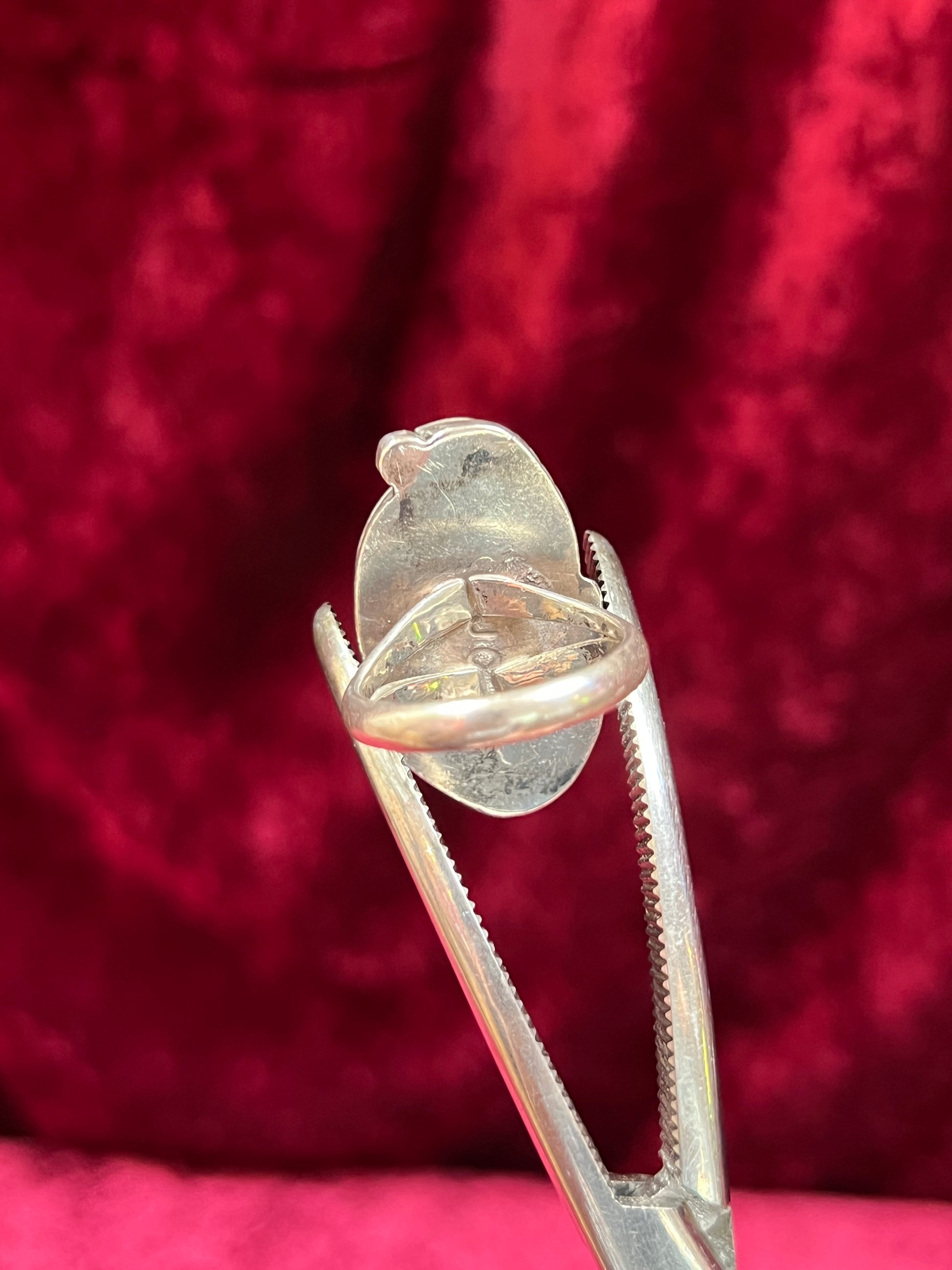 Condition: Minimal tarnishing all over. Ring is not stamped 925 or sterling but it shines up like silver does. Stamped JC on the back. See pictures.
