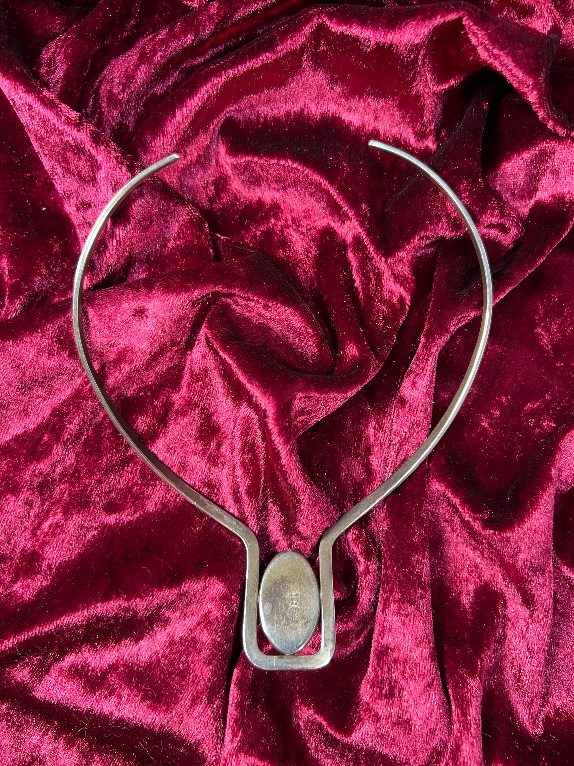 Vintage Jewelry - Modernist Collar Necklace - Sterling Silver - Black Onyx - JPA