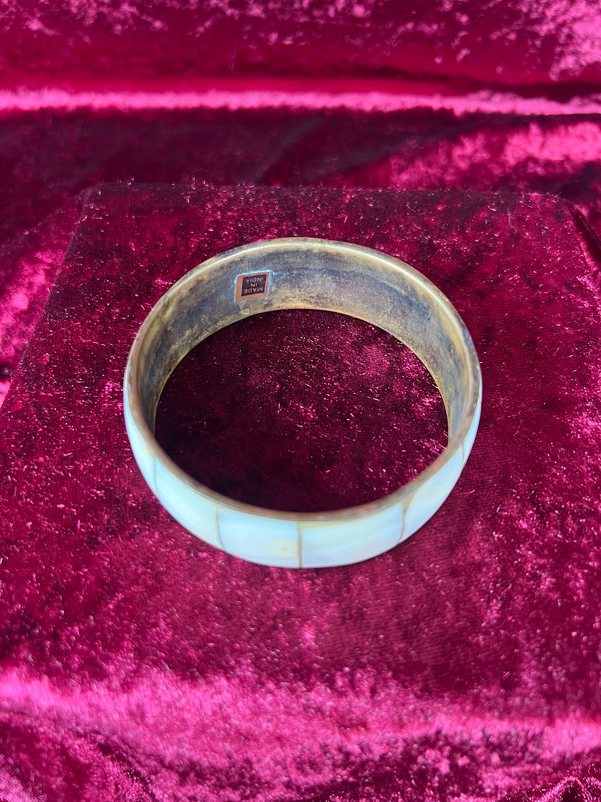 Vintage Jewelry - Cuff Bracelet - Brass - Oyster Shell Inlay - Made In India