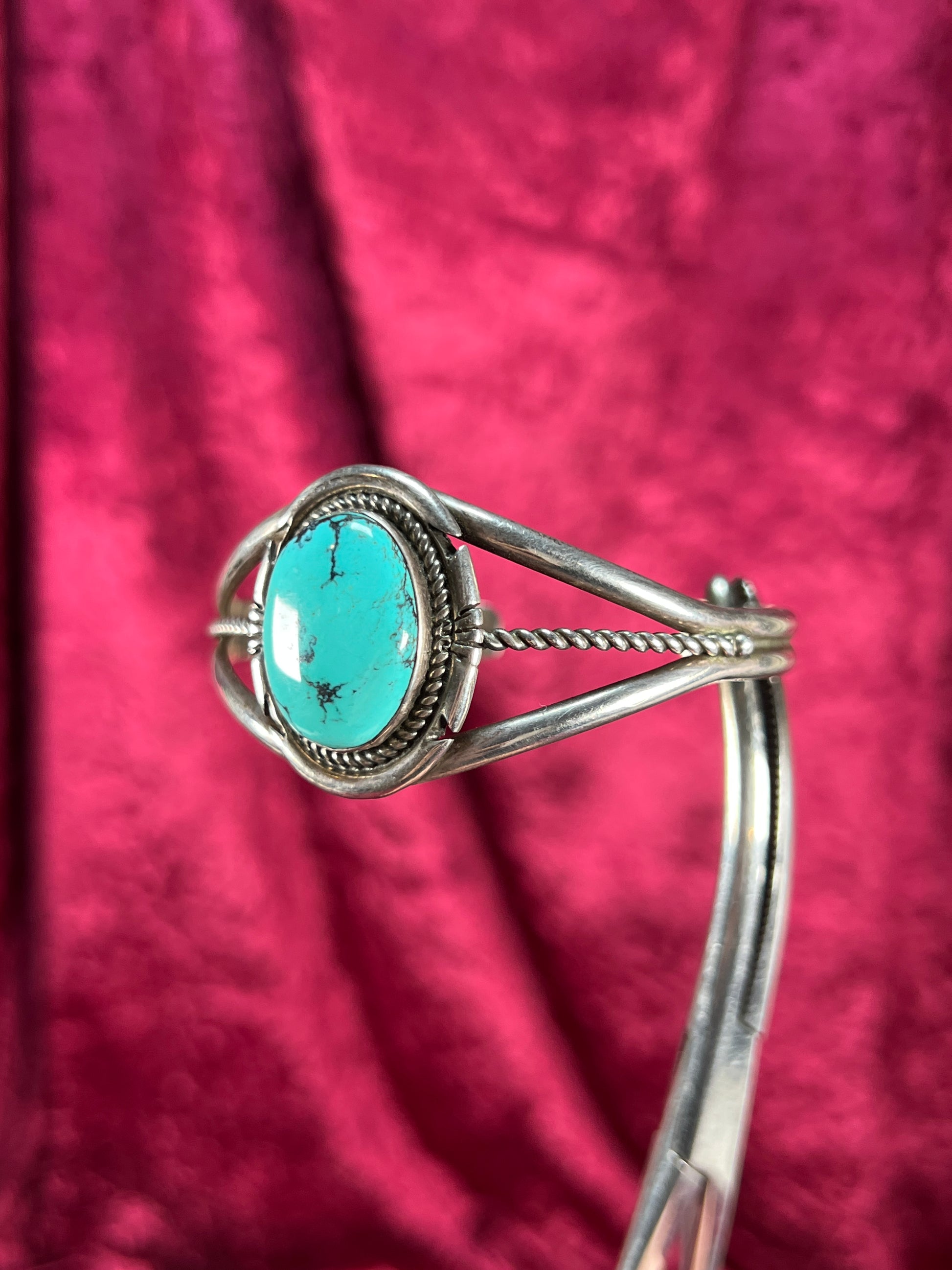 Vintage Jewelry - Cuff Bracelet - Sterling Silver - Number 8 Turquoise Center