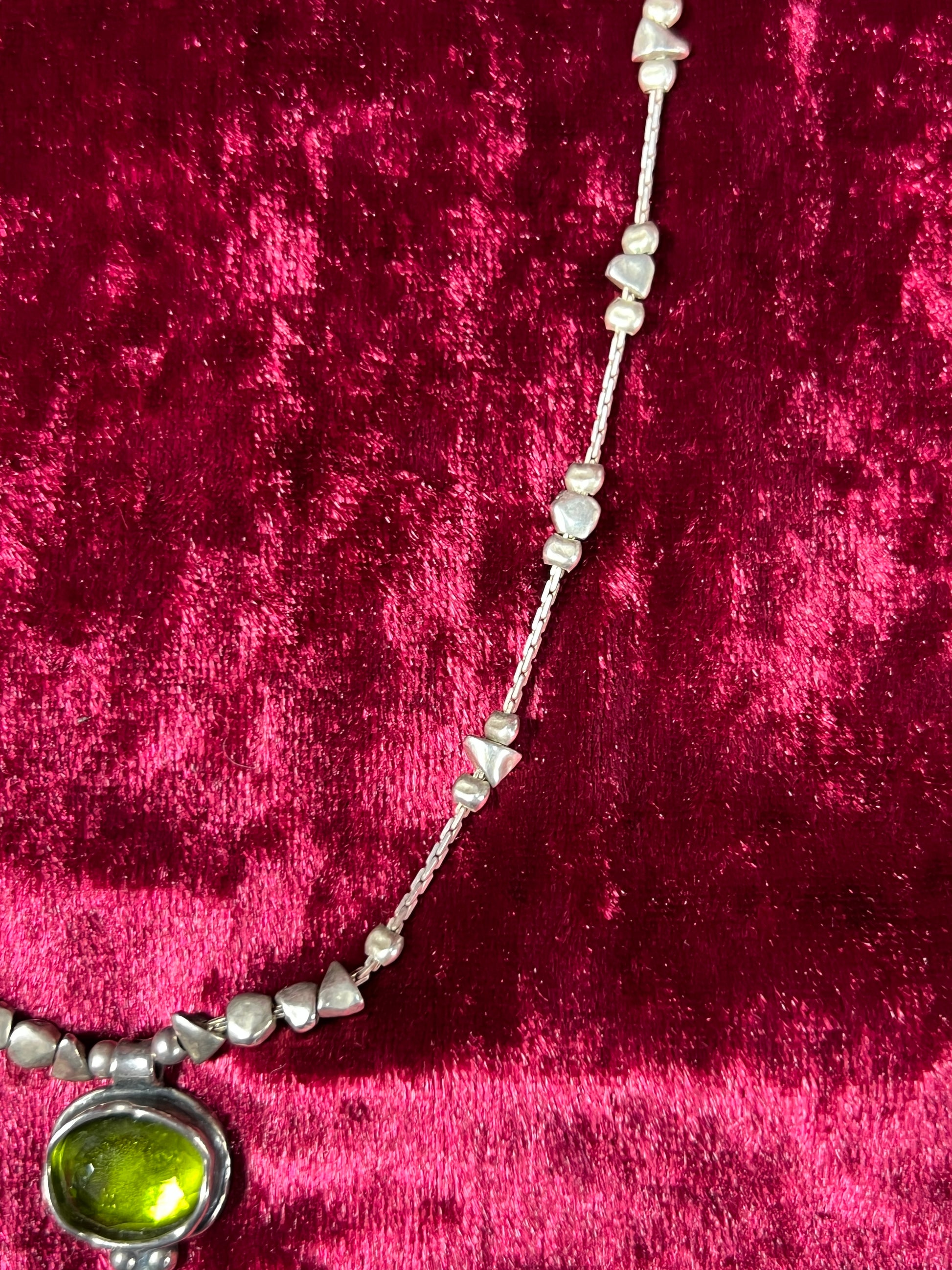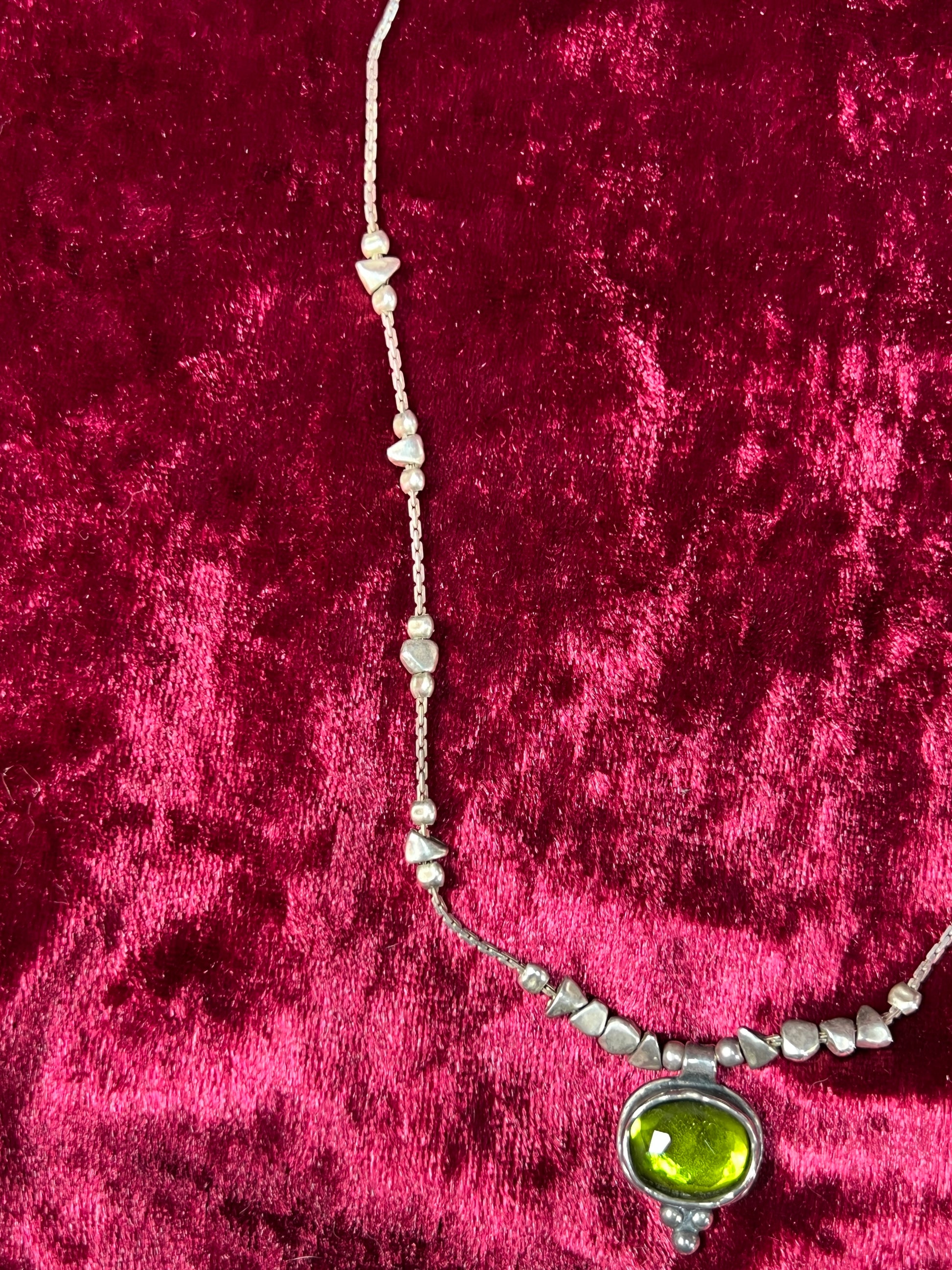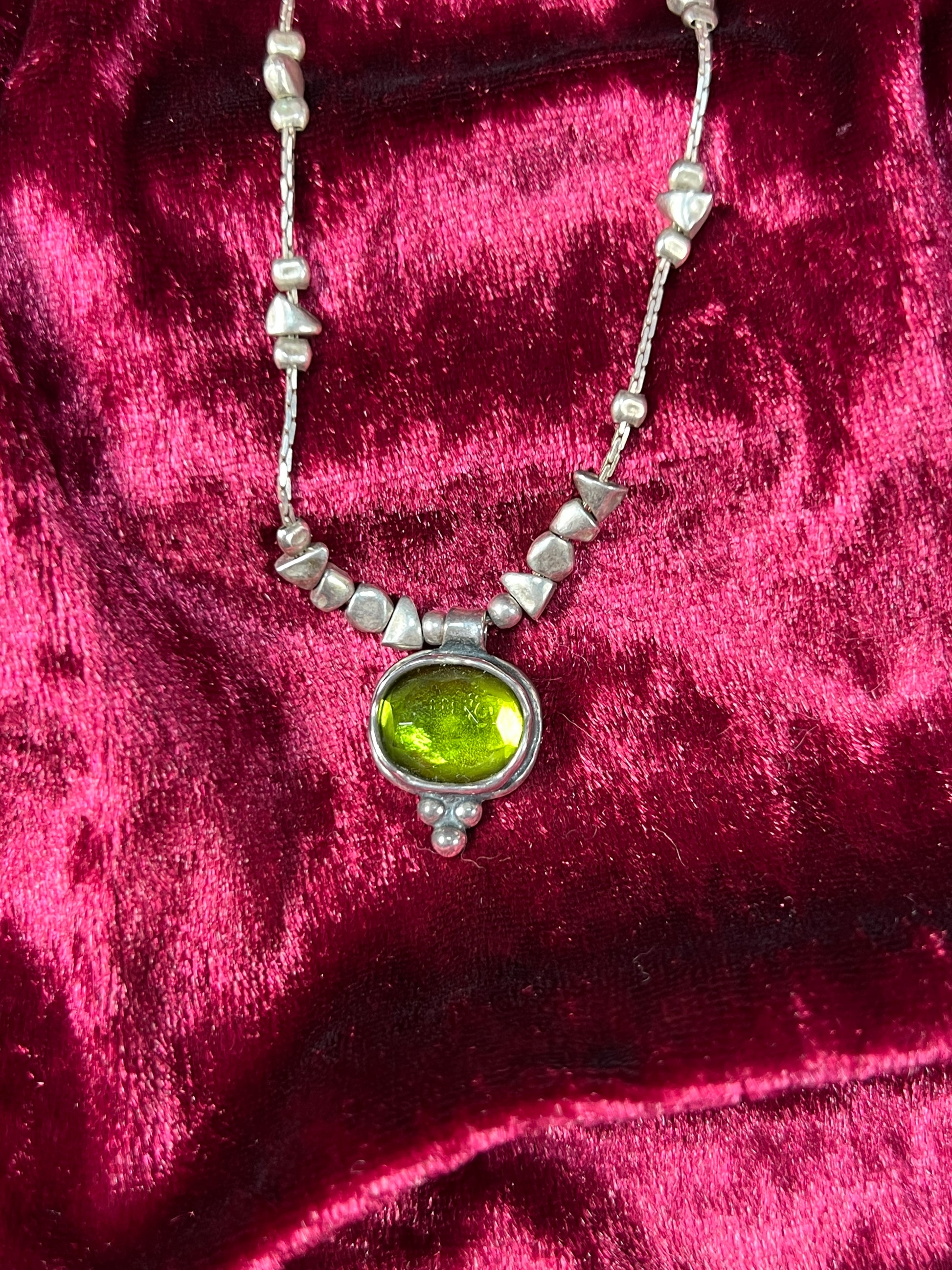 Vintage Jewelry - Dainty Necklace - 925 Silver - Cut Green Glass Pendant - Silpada