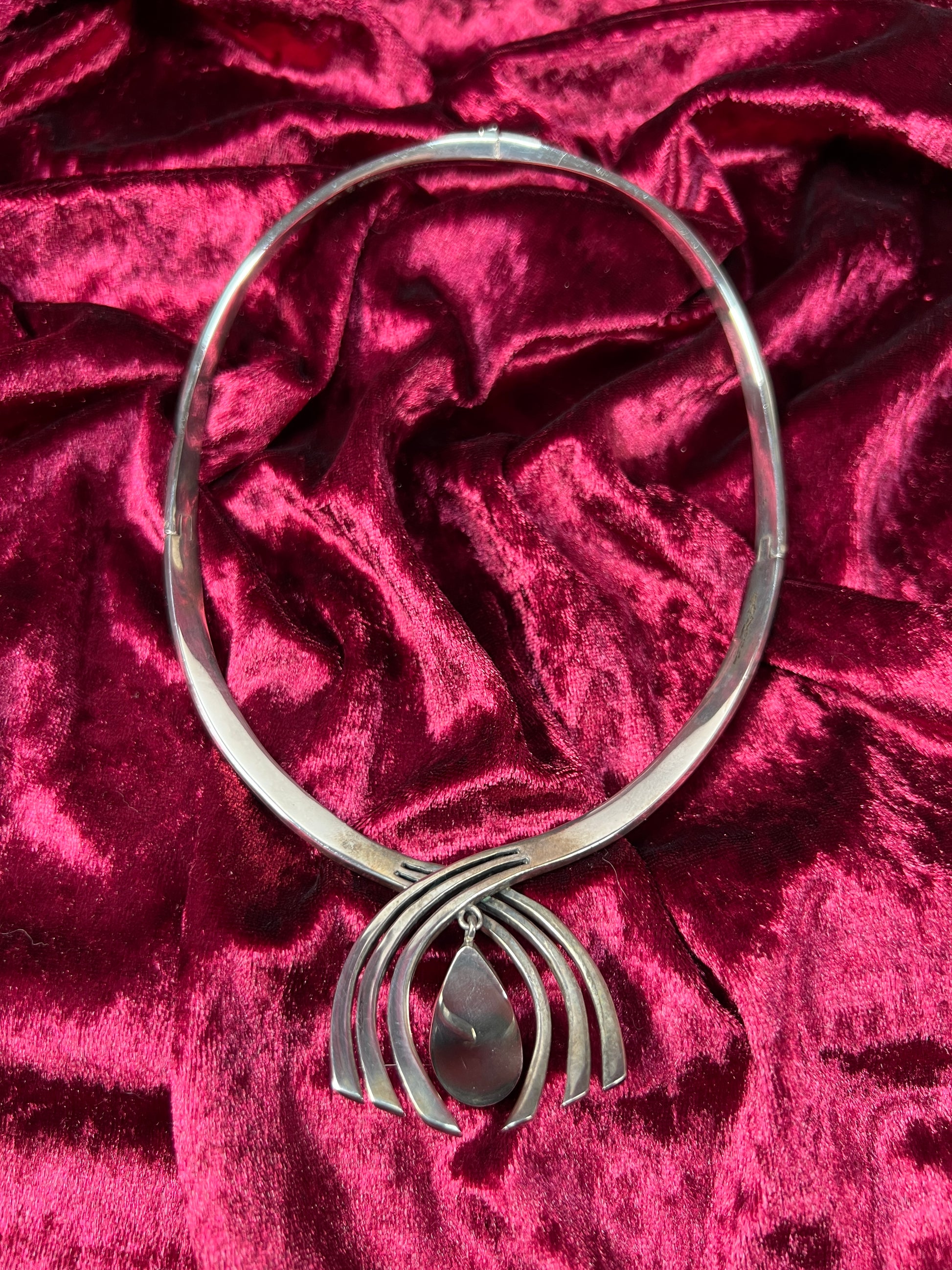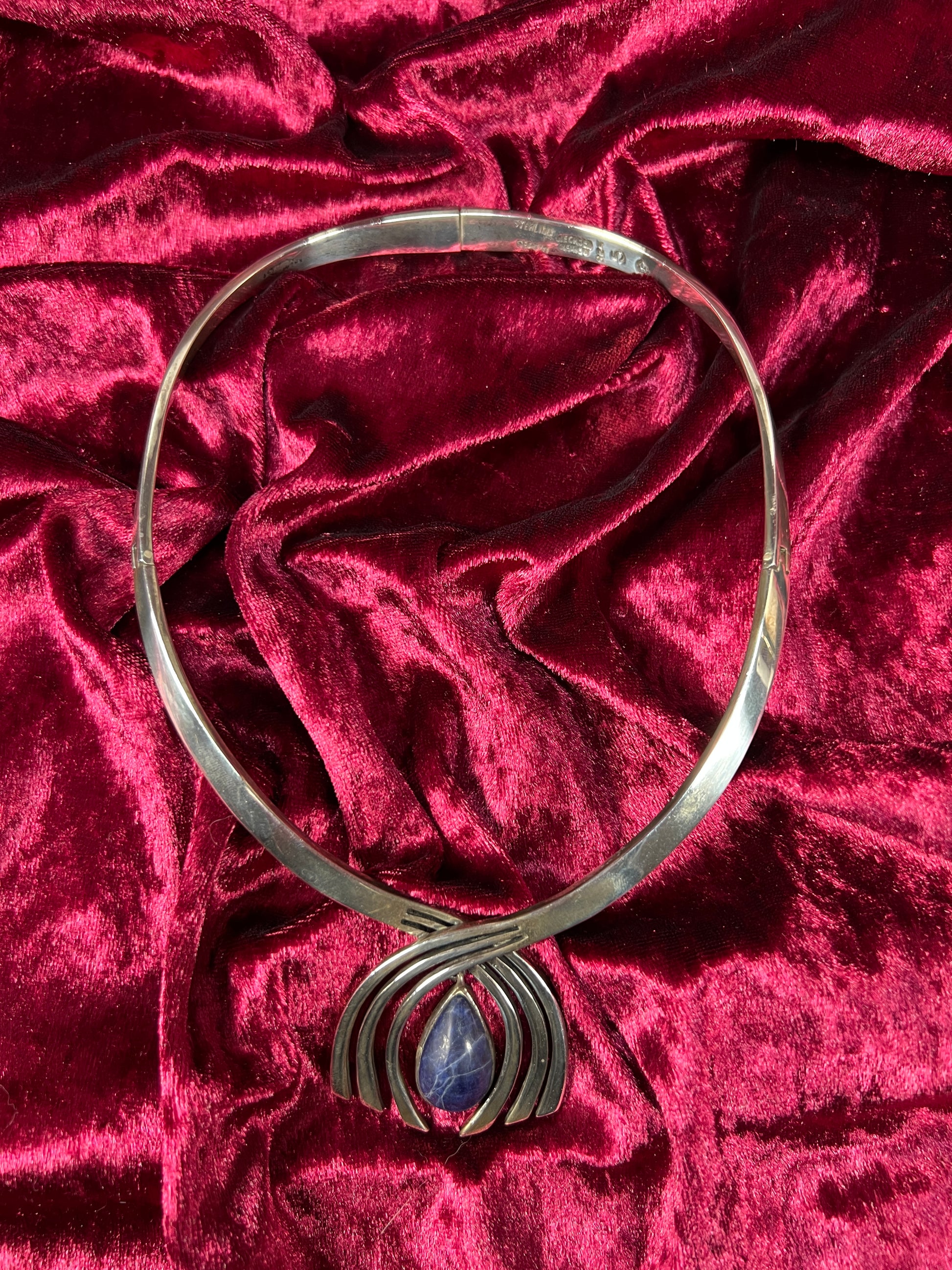 Vintage Jewelry - Modernist Collar Necklace - Sterling Silver - Sodalite Pendant - Taxco - Mexico