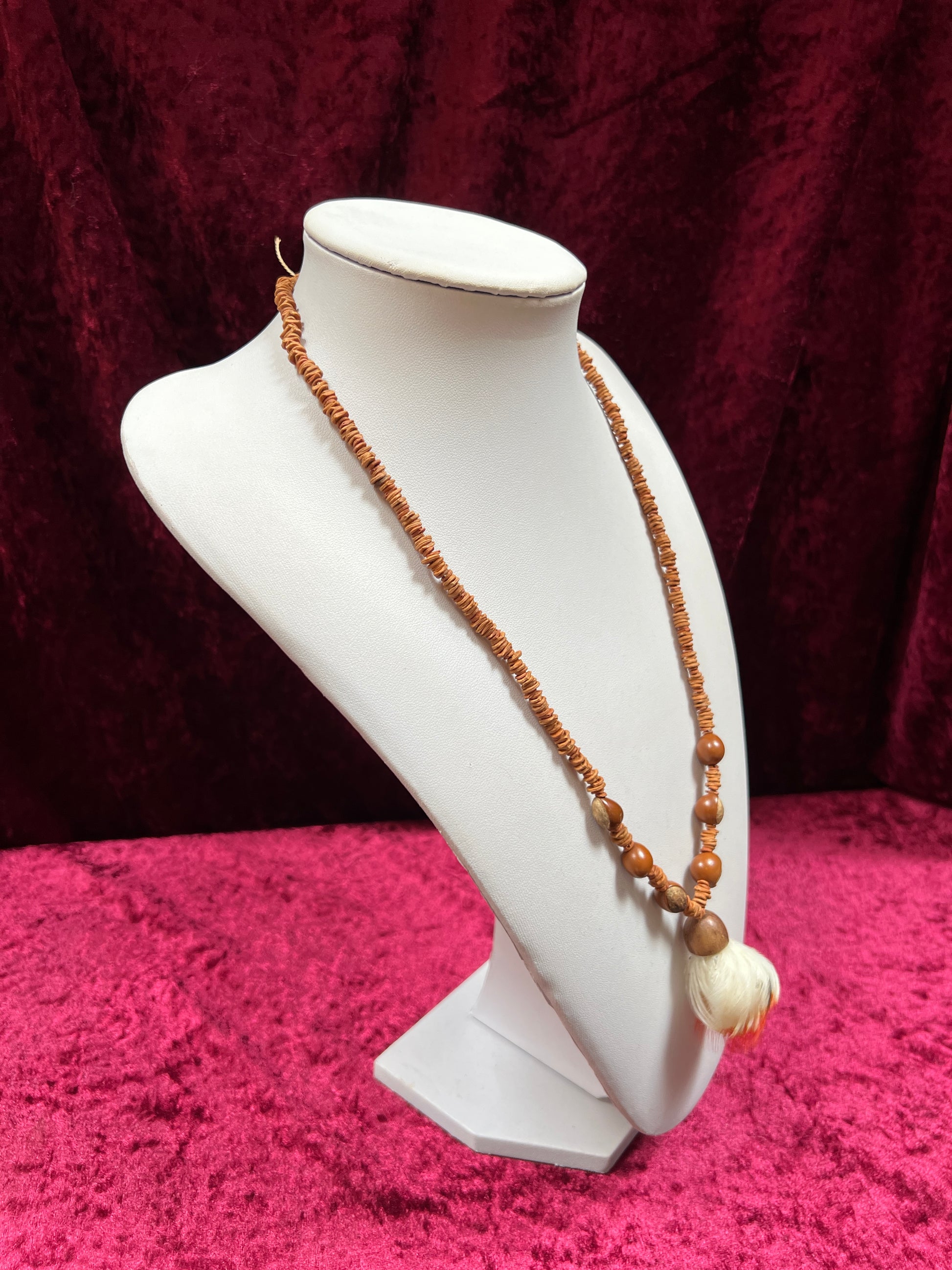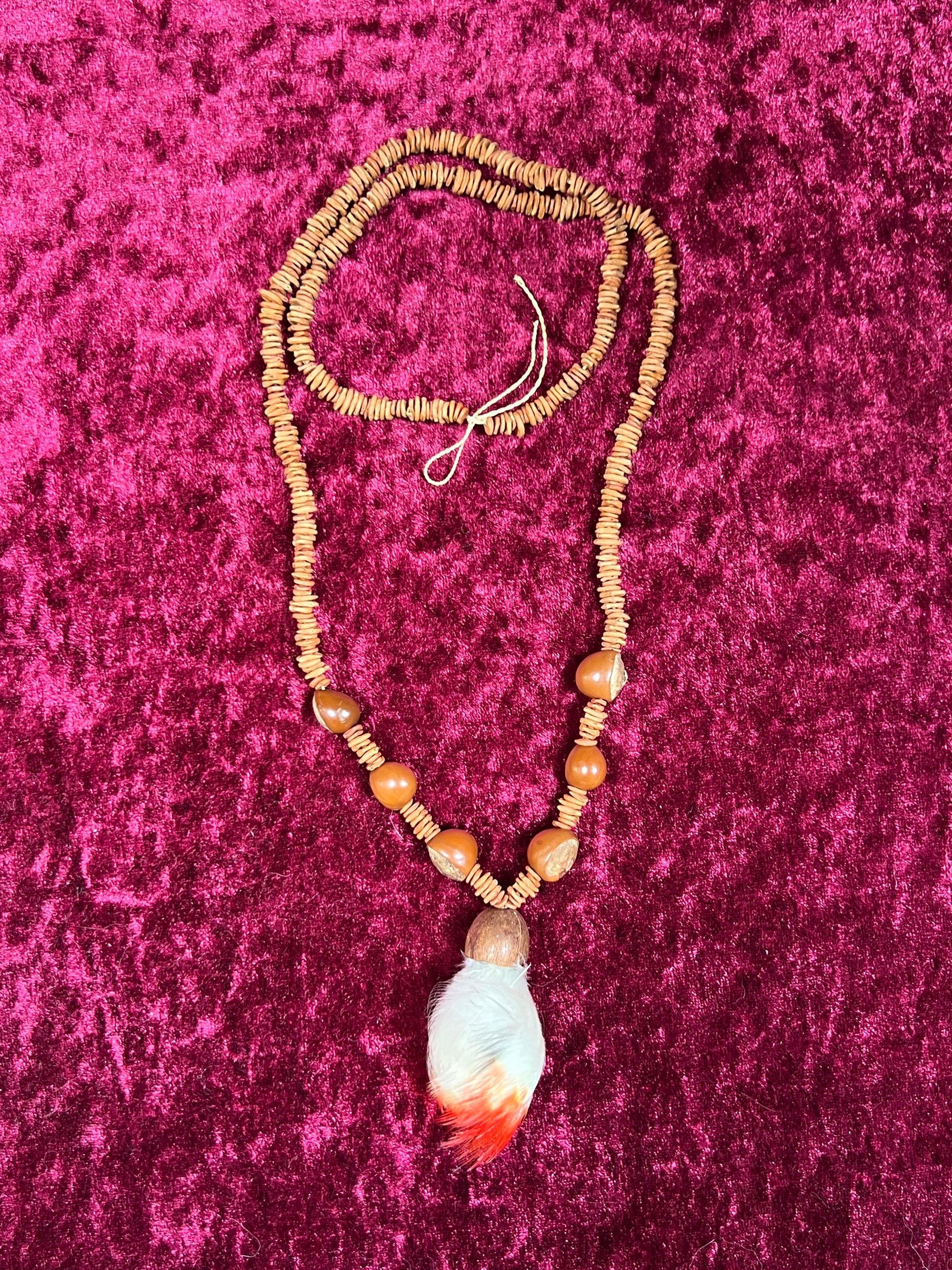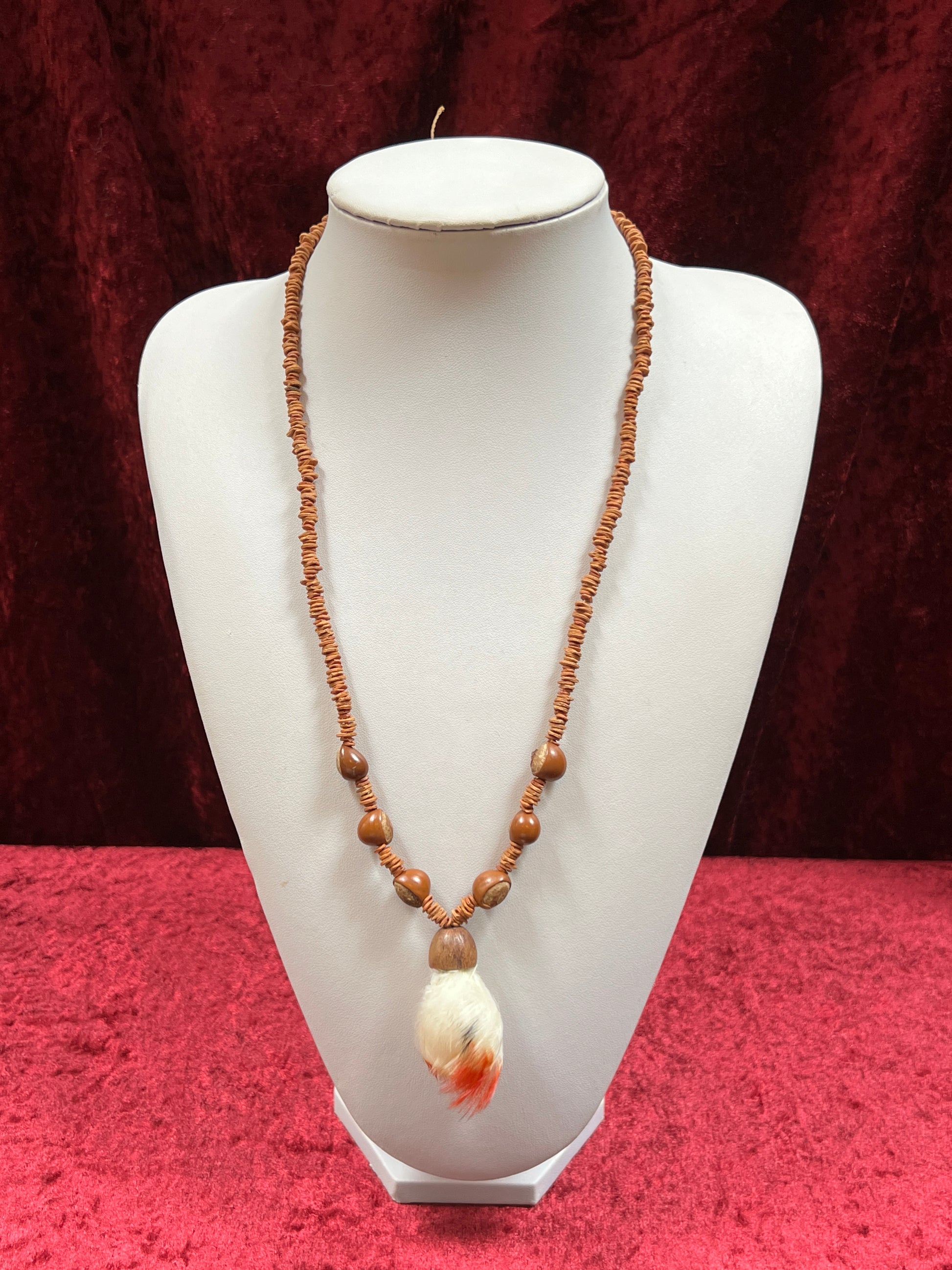 Vintage Jewelry - Necklace - Beaded Seeds - Feather Pendant - 14.5”