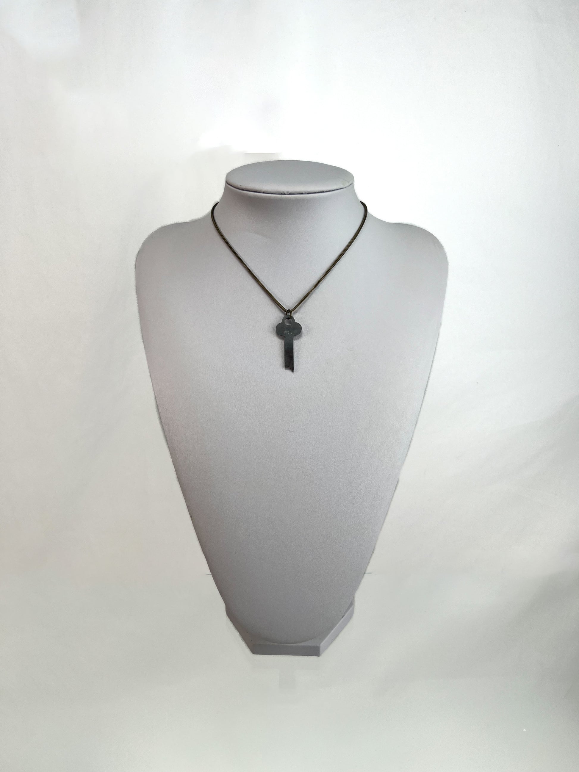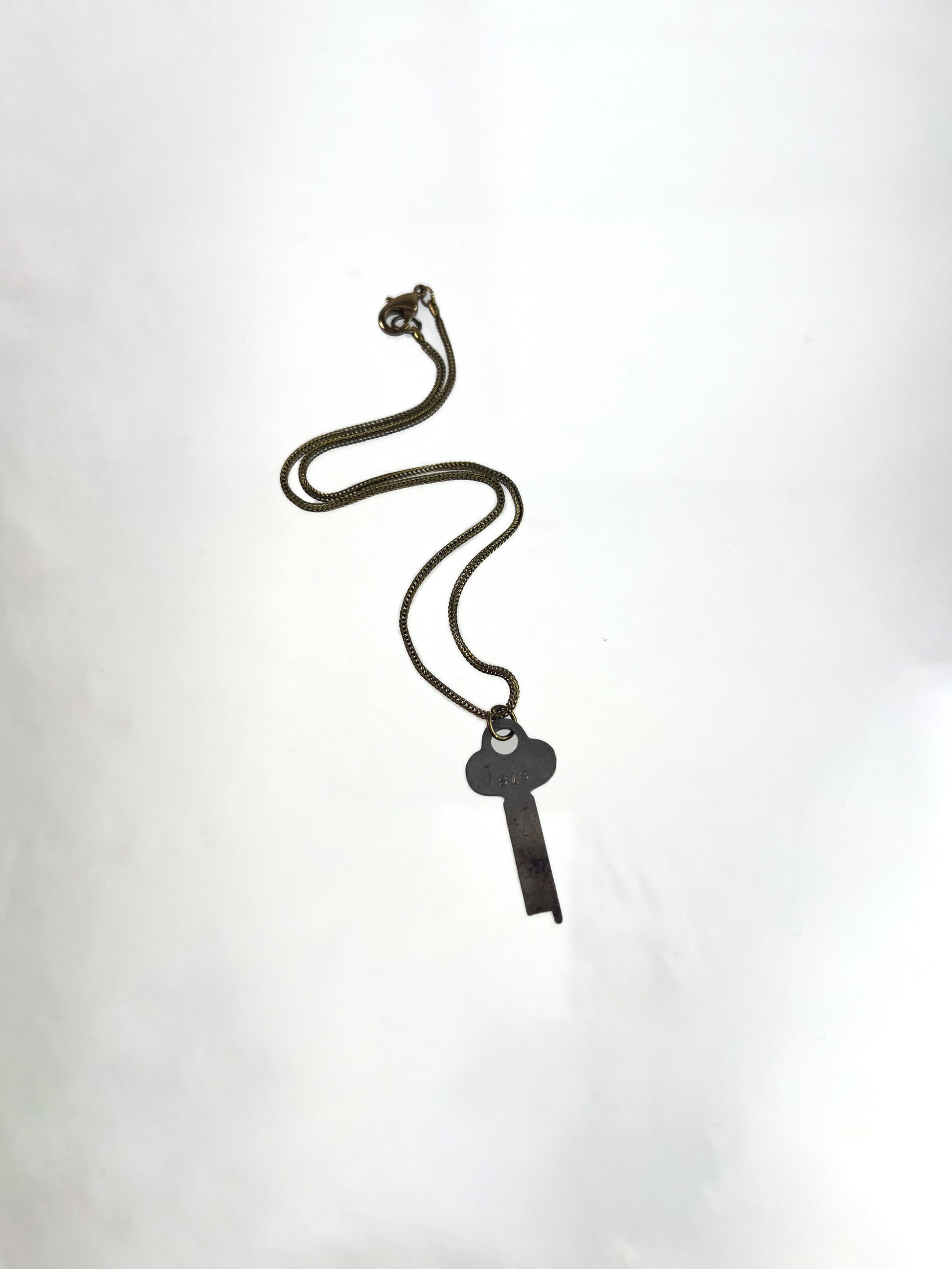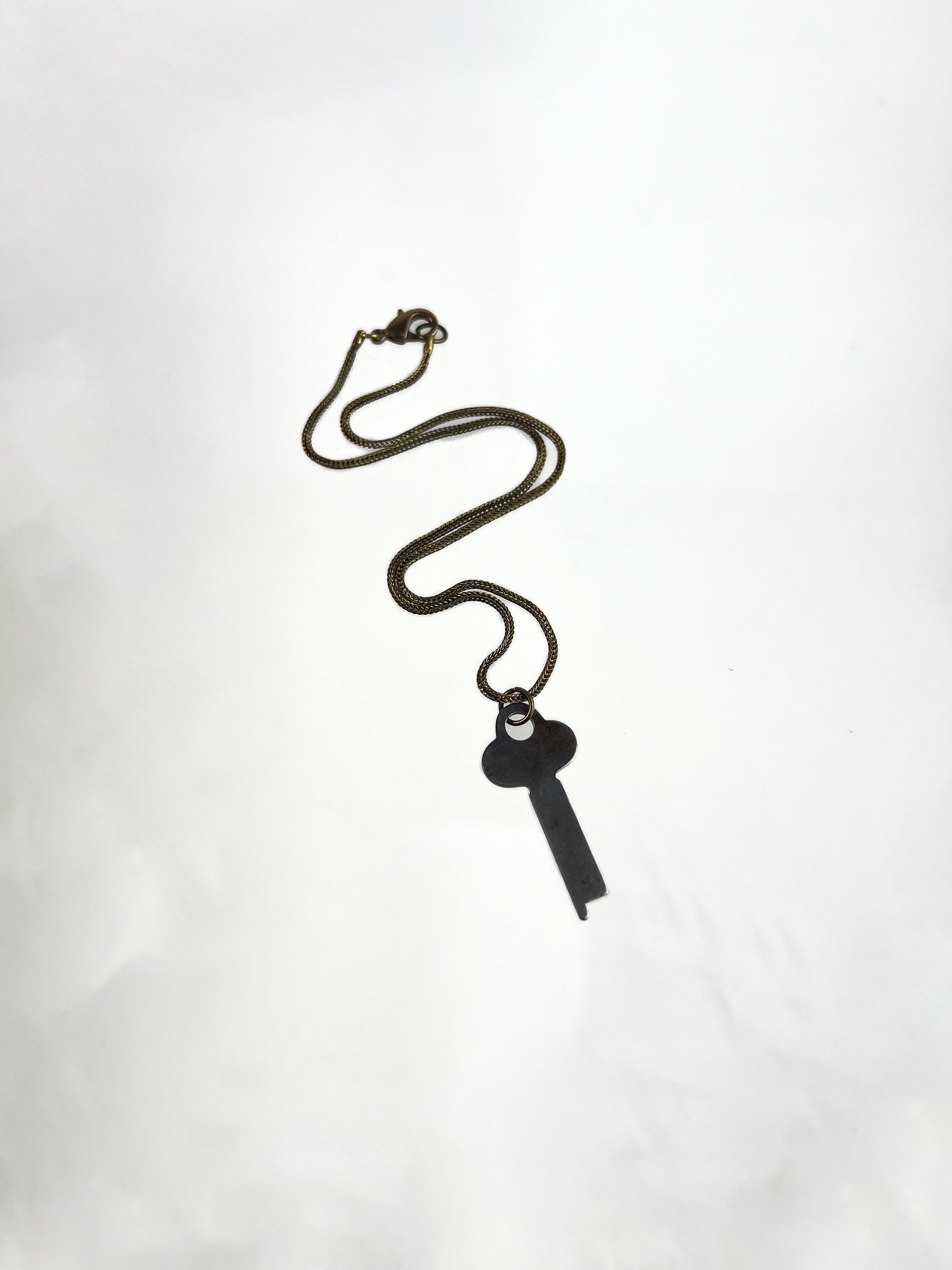 Measures: Total chain length end to end is 15 1/2". The key is 1 1/2"long. Pendant hangs just below the collarbone, measurement dependent.