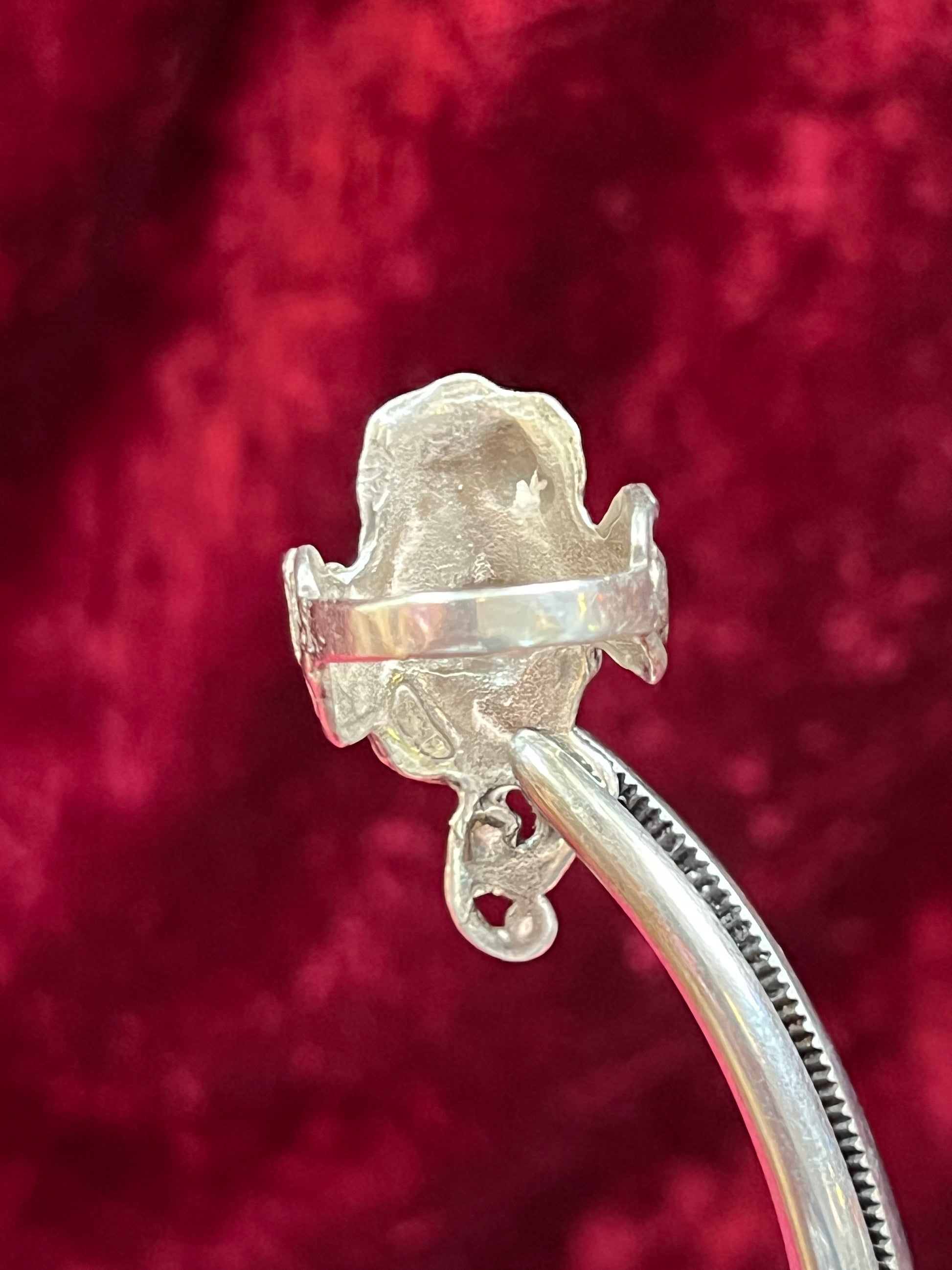 Condition: Ring is not stamped. Polishes up like silver. Some dents on the ring band. See pictures.