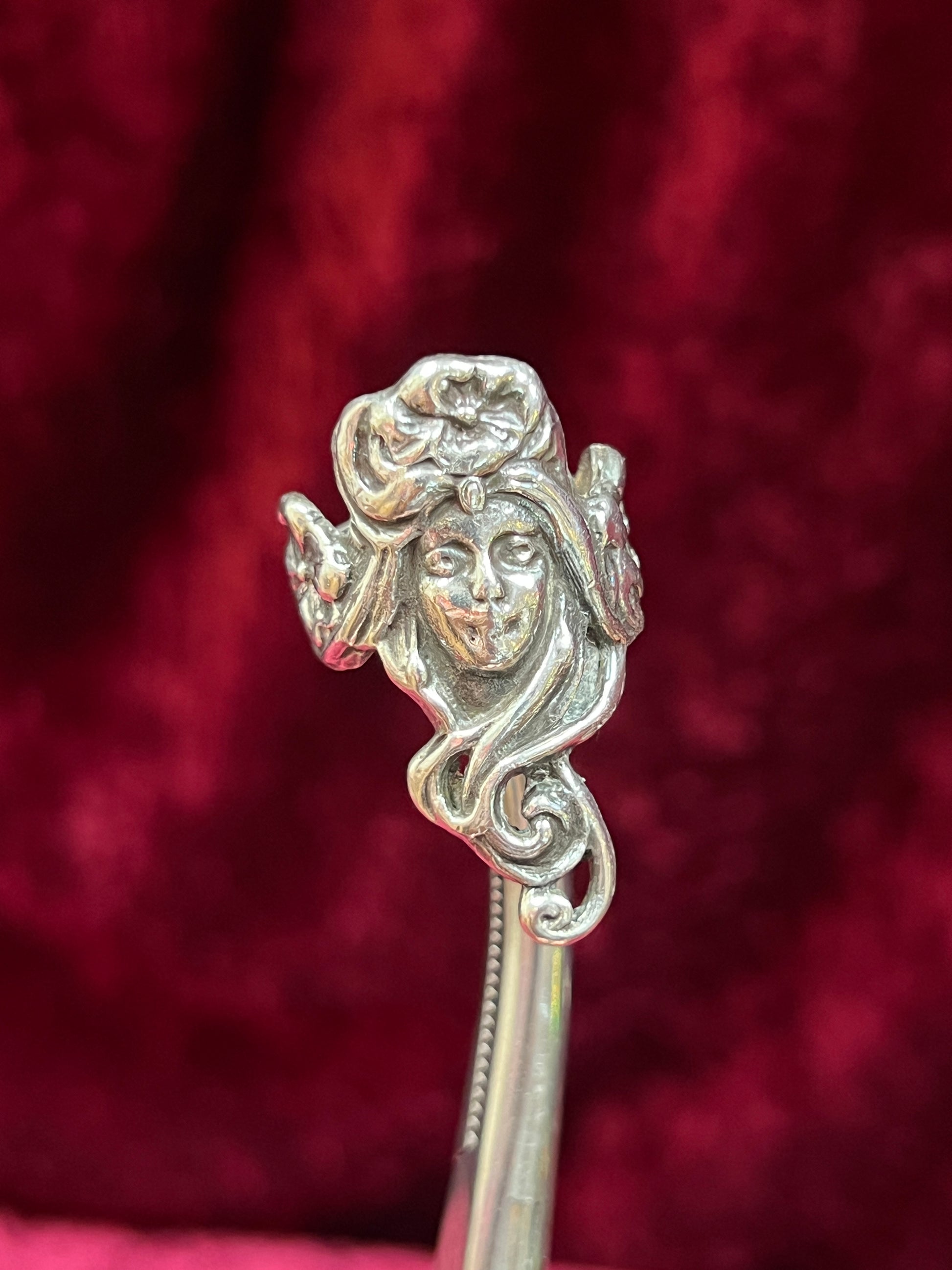 Vintage Jewelry - Ring - Sterling Silver - Art Nouveau Flower Goddess Face - 8