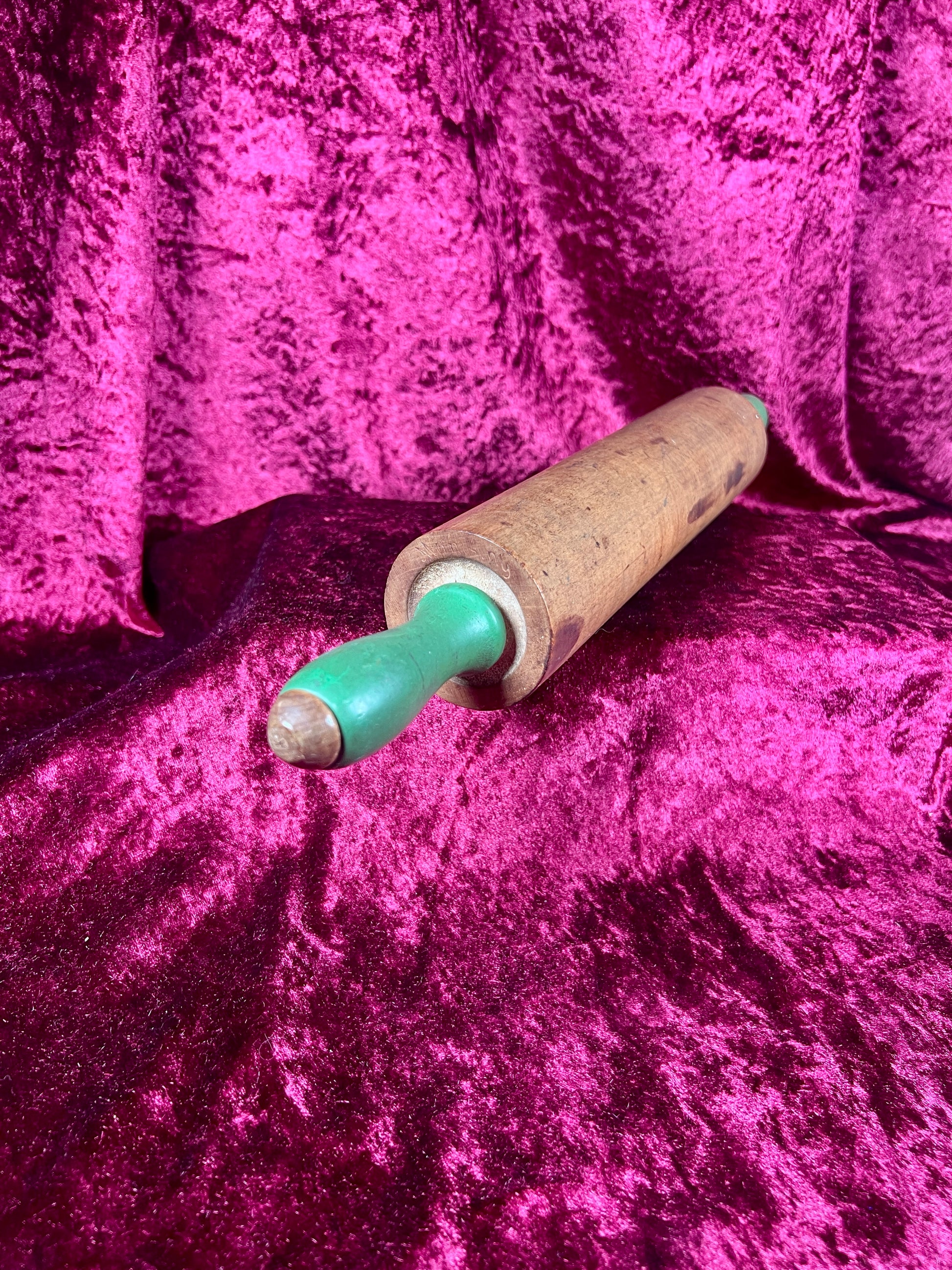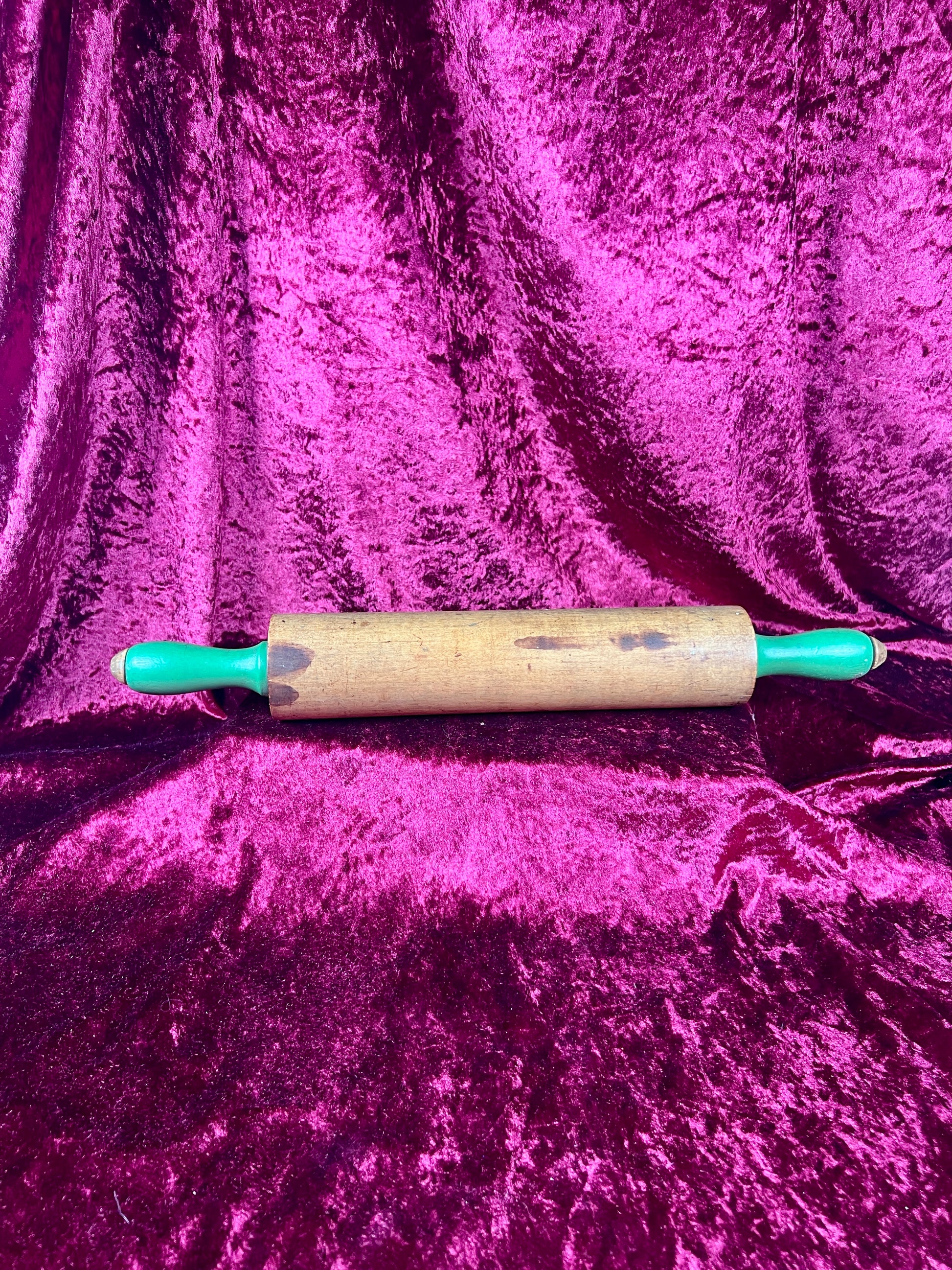 Vintage Kitchen - Wood Rolling Pin with Green Handles - Munising