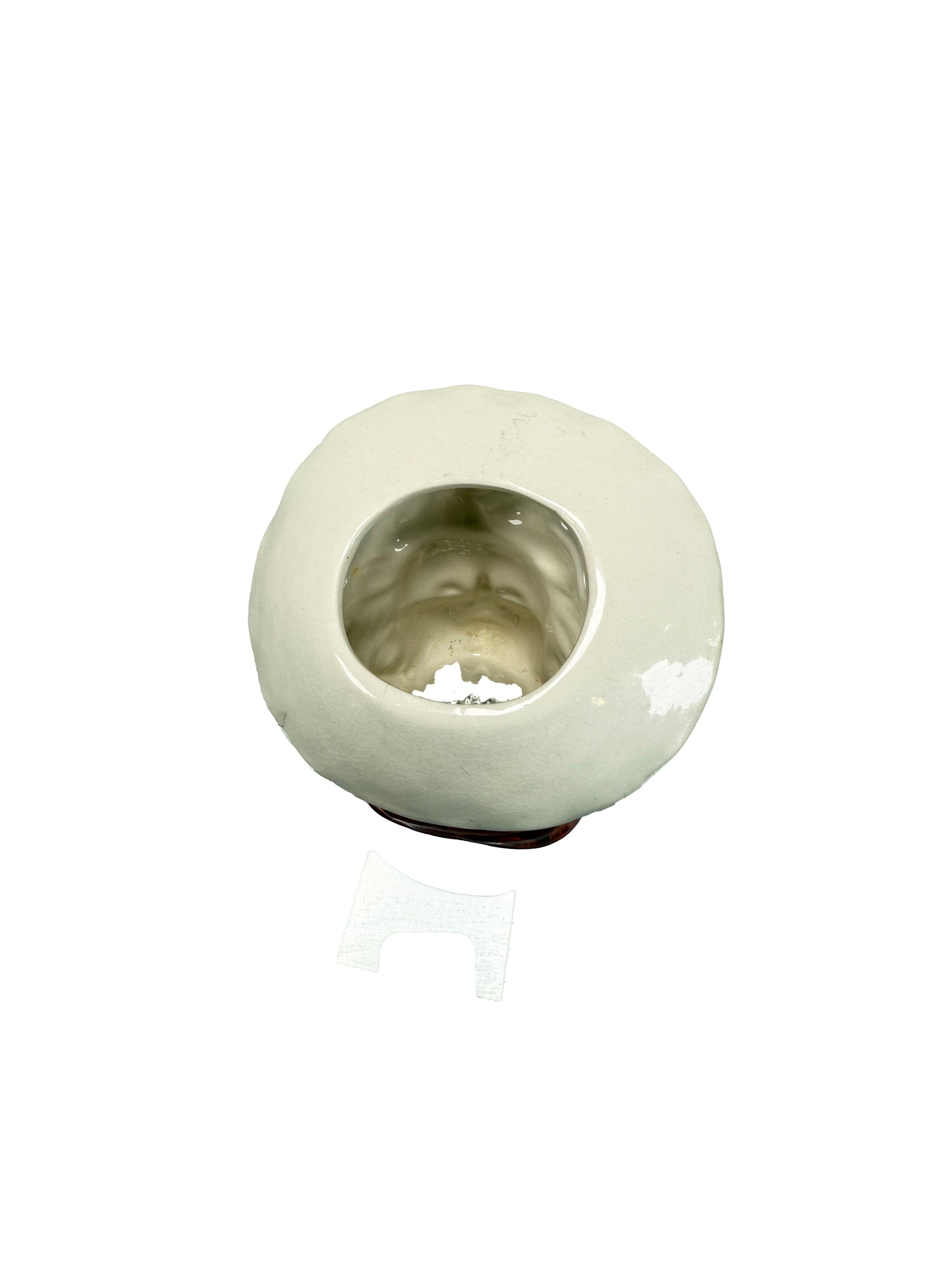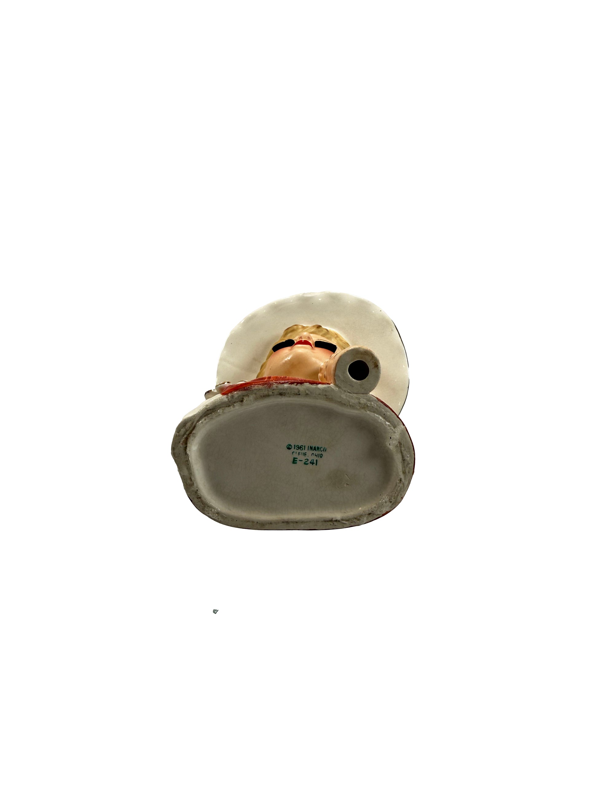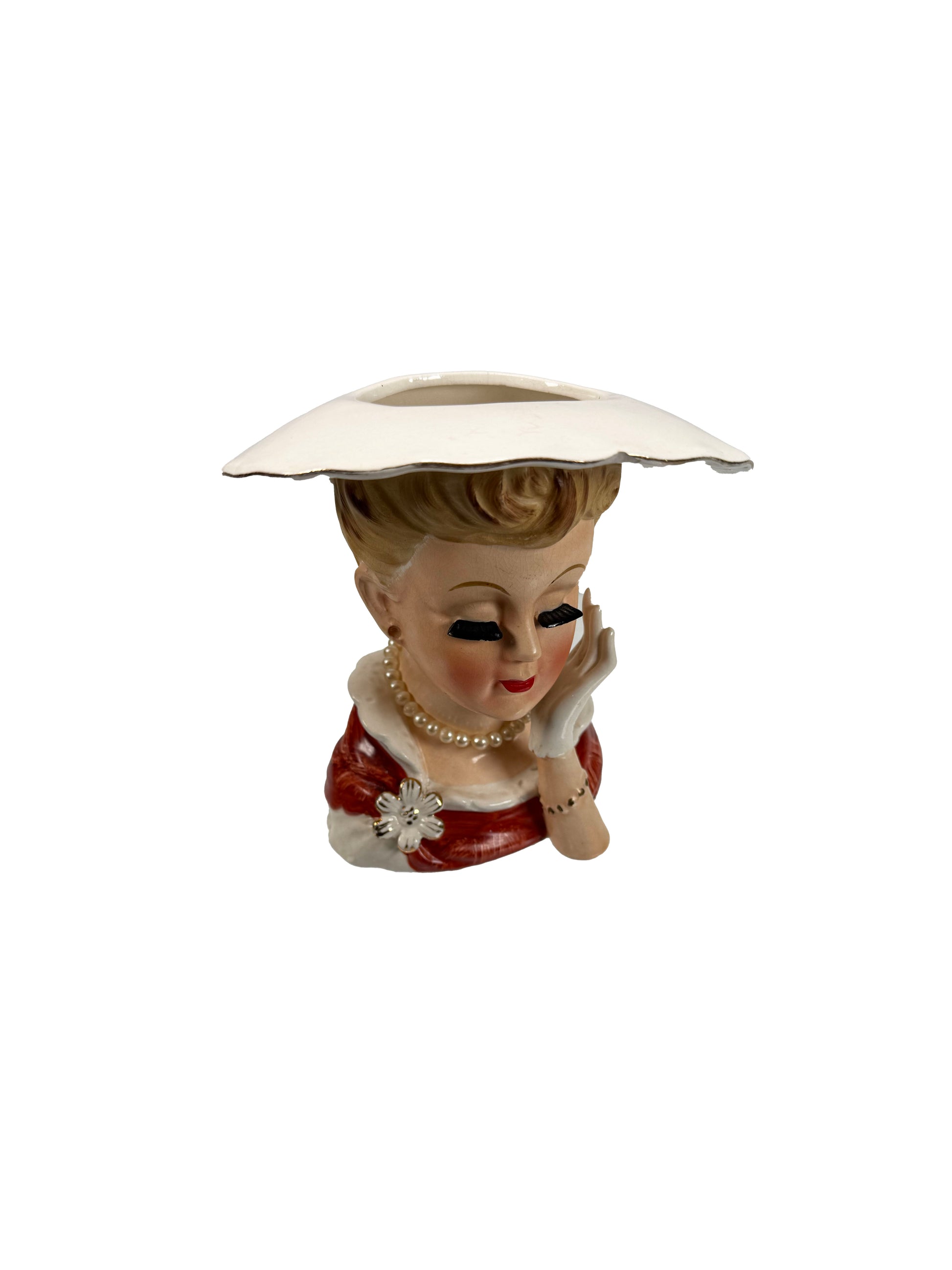 Condition: Missing her pearl earrings. One half inch chip on the brim of her hat.