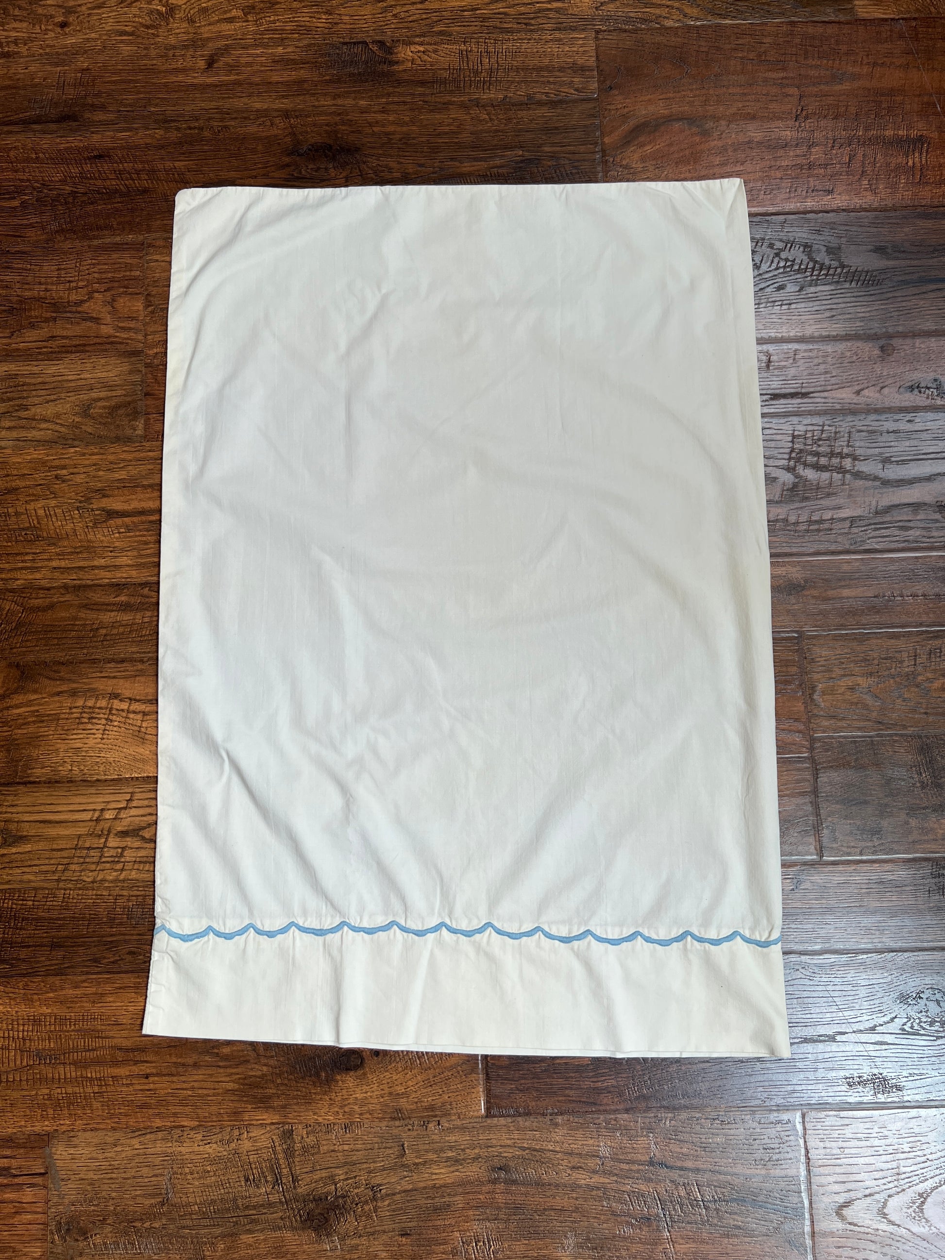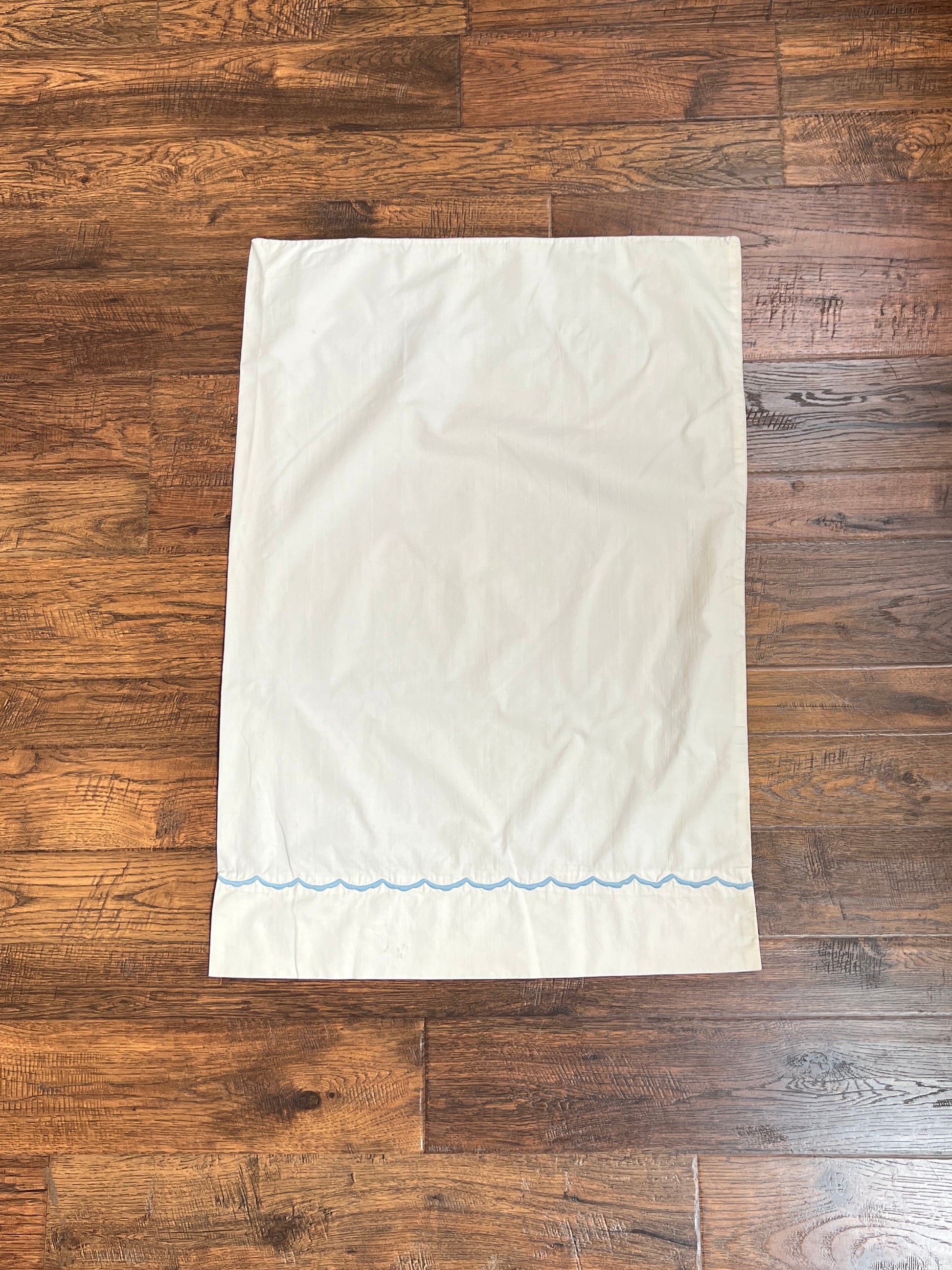 Vintage Linens - Single Embroidered Pillowcase - Baby Blue Scalloped Edge