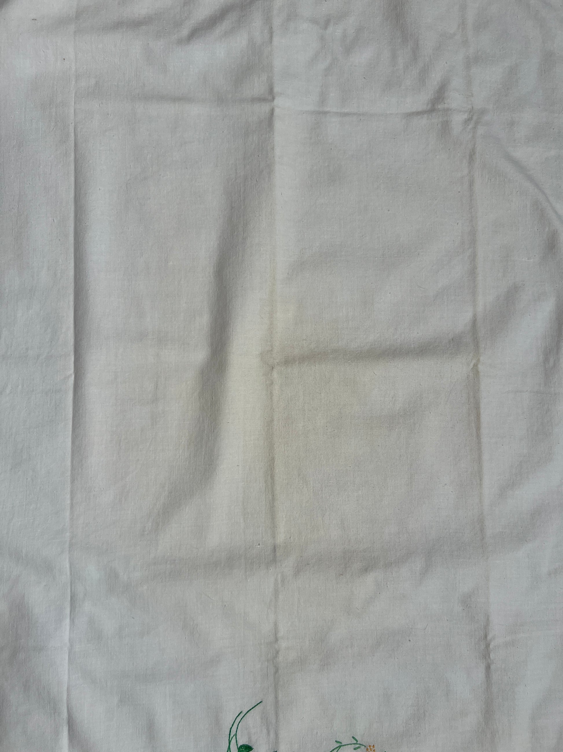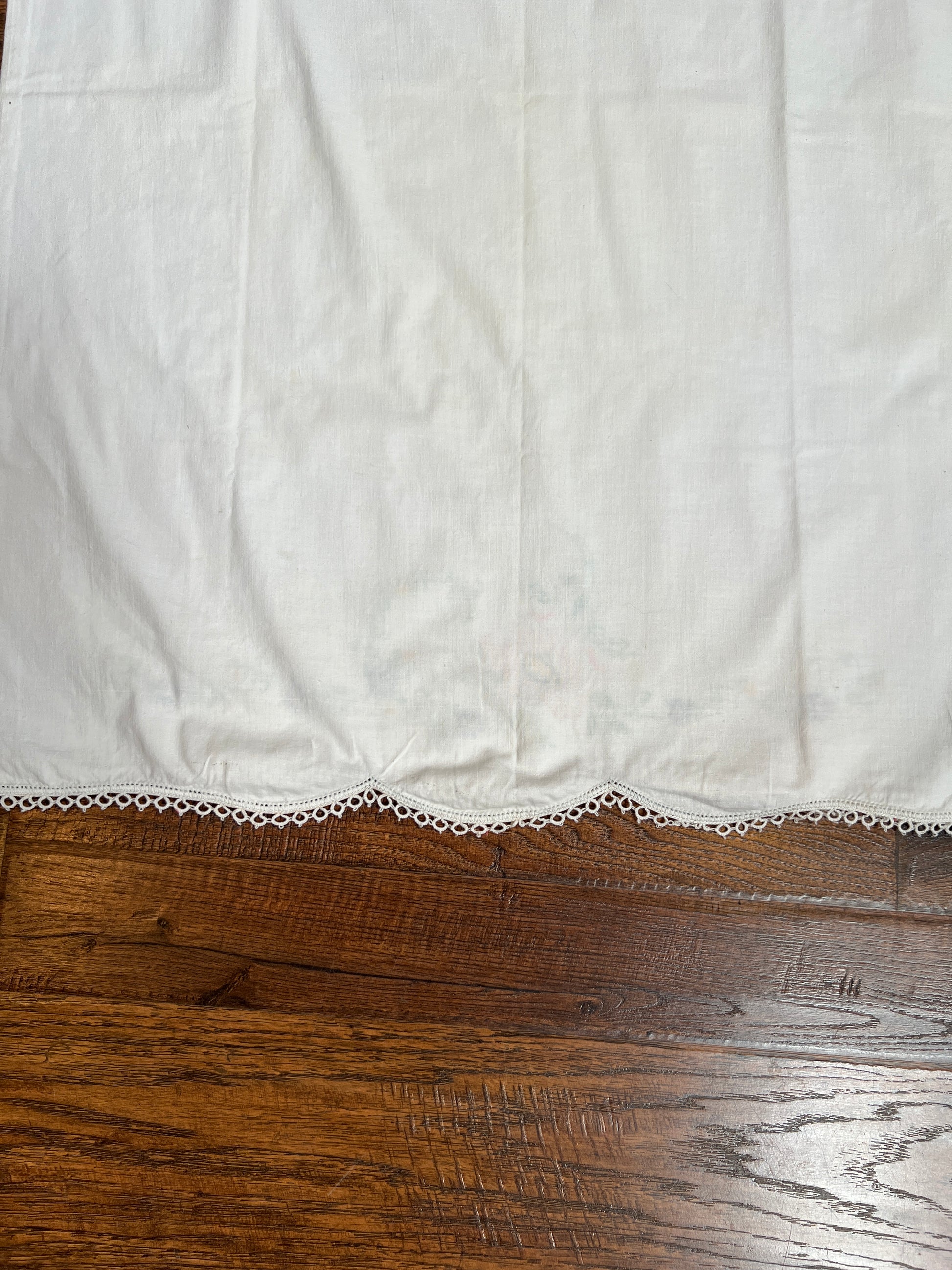 Vintage Linens - Single Embroidered Pillowcase - Blossoming Pink Flower On A Vine