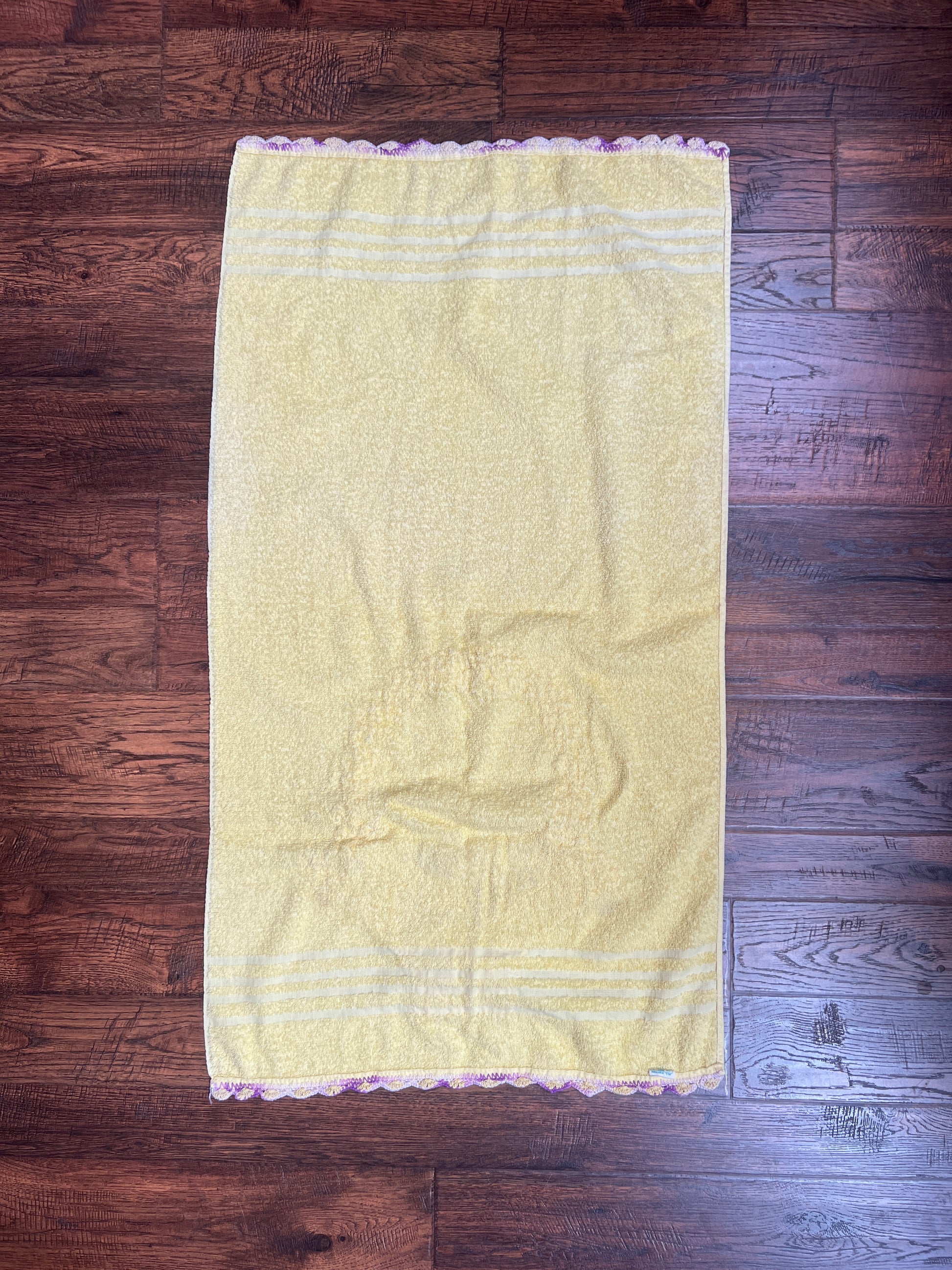 Vintage Linens - Terry Cloth Bath Towel - Purple Crochet Basket - Cannon