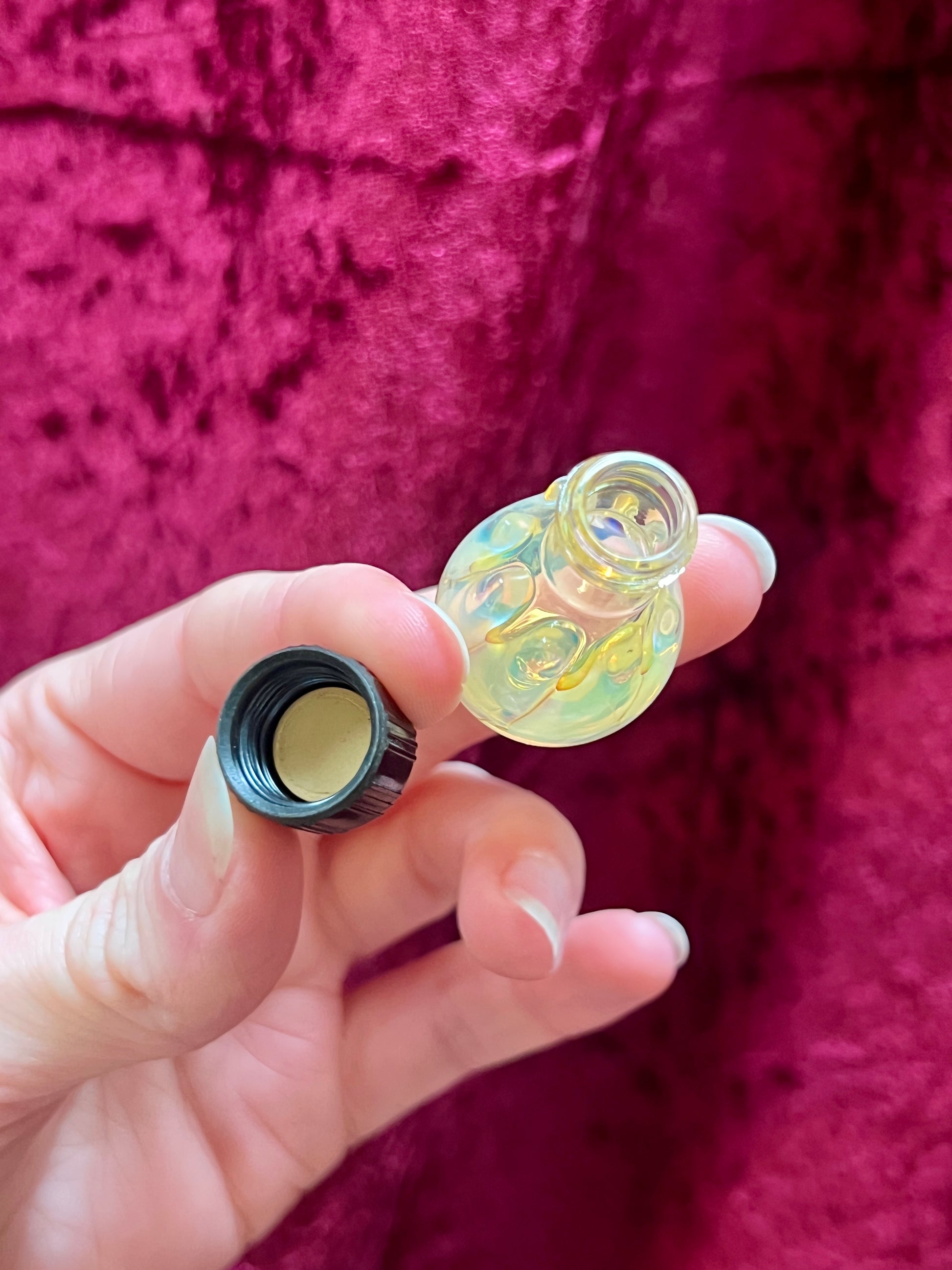 Vintage Miniature Glass Bottle - Handblown - Iridescent Blue and Green - 1.5”