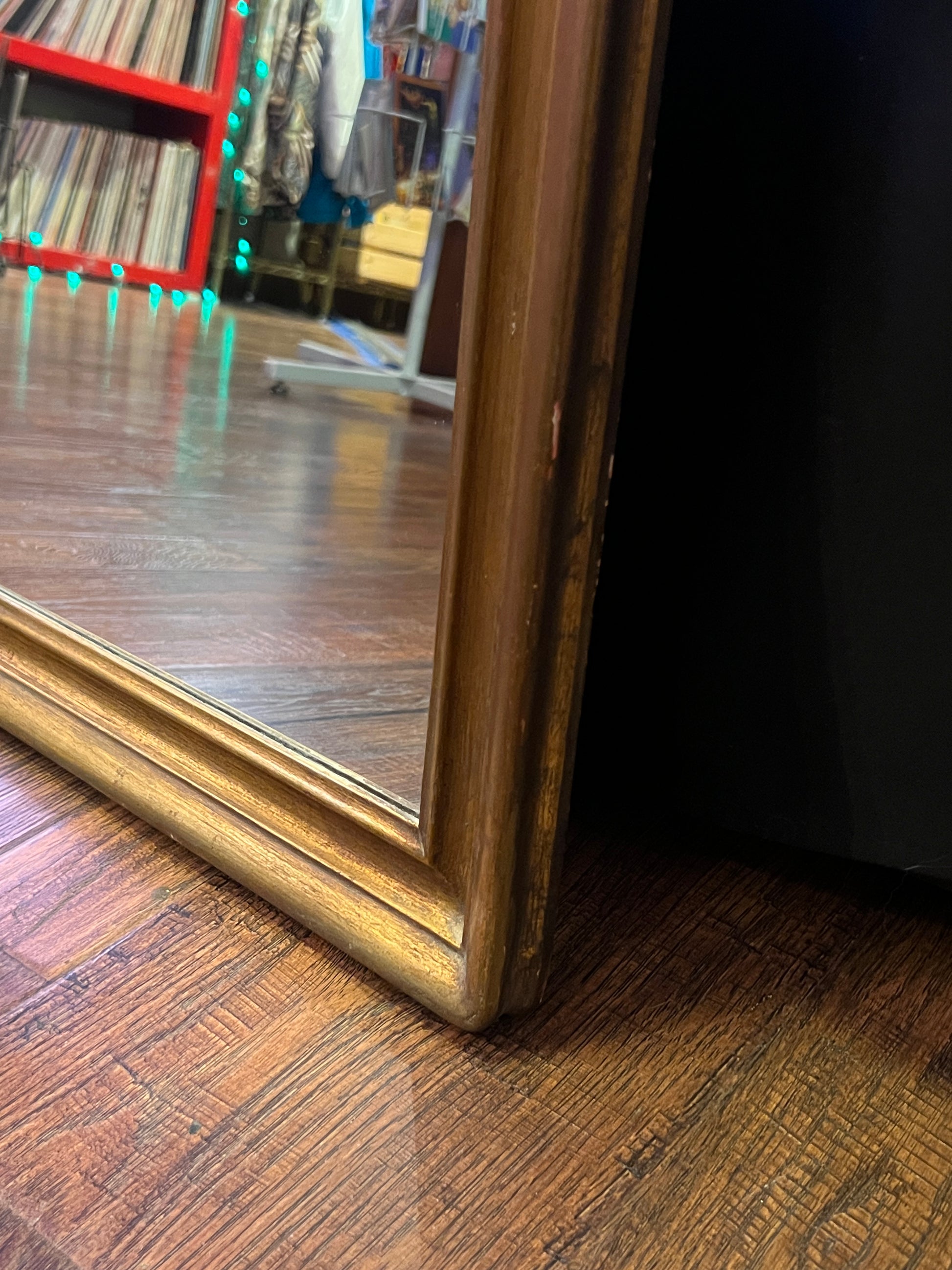 Simple yet beautiful, this gold gilded mirror would fit wonderfully in a hallway, bathroom, or bedroom.