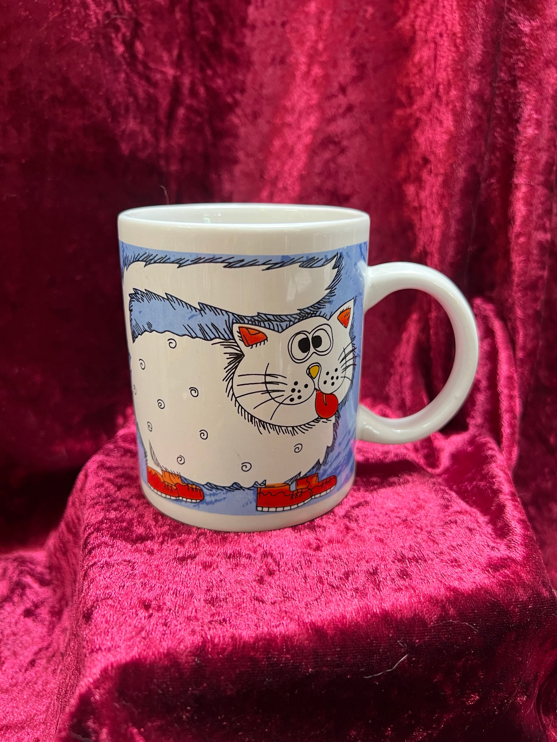 Vintage Mug - Novelty Coffee Cup - Funky 90s Cartoon Cats - Orange and White - Allied Design