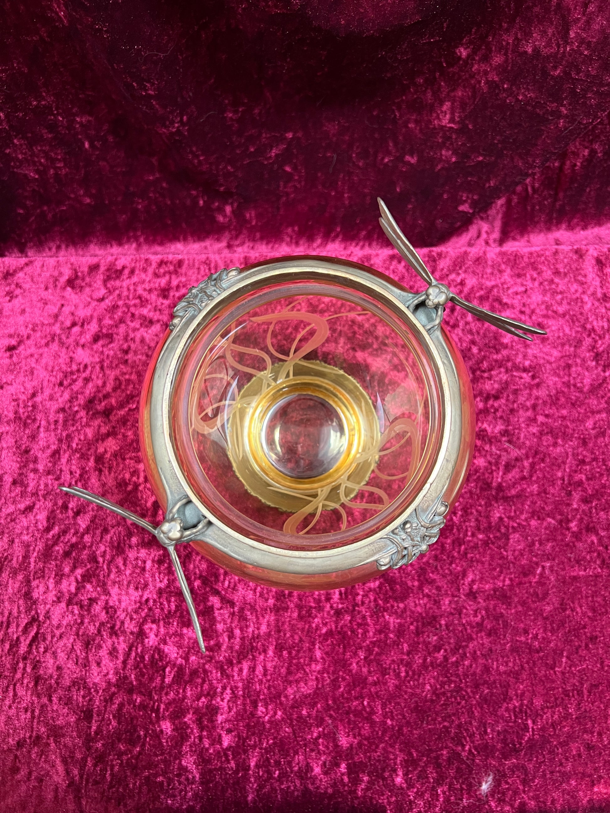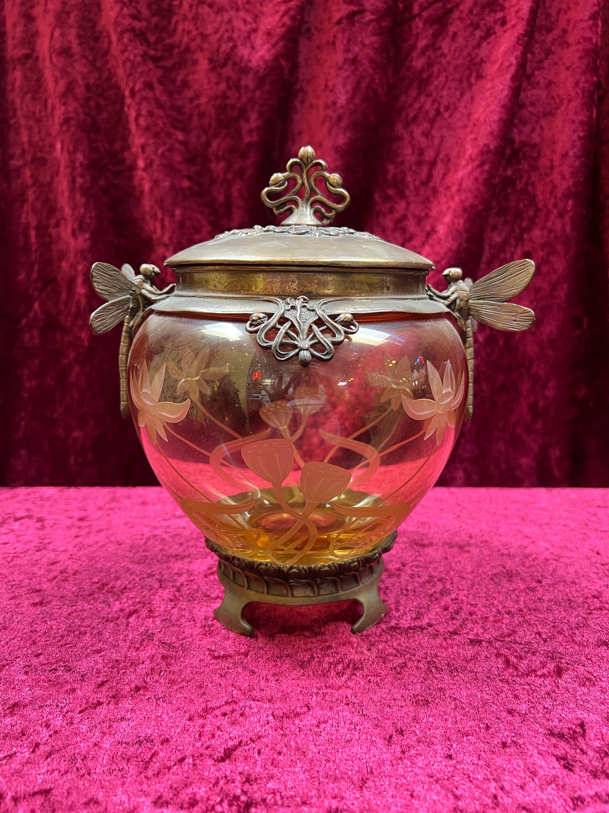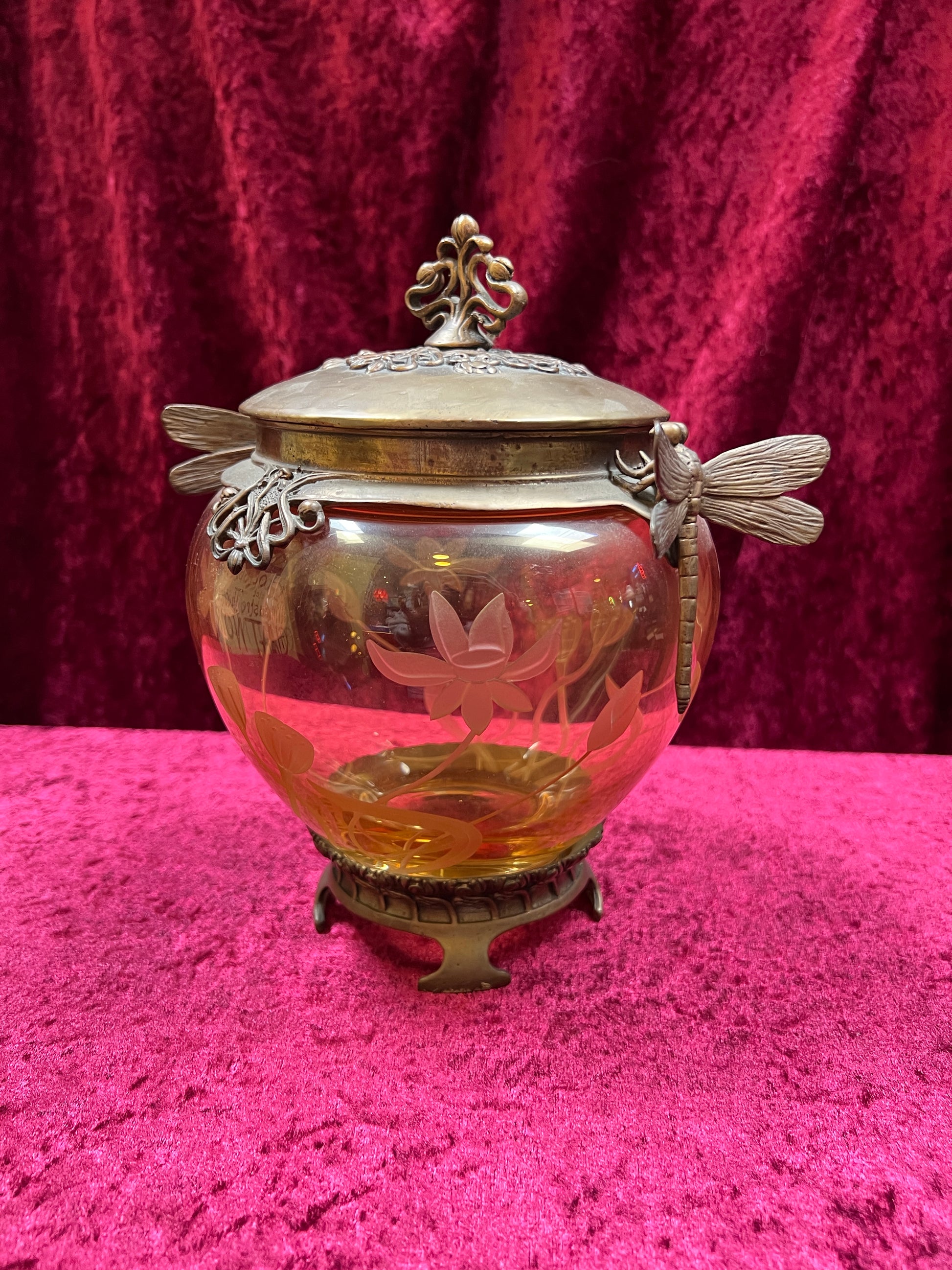 Vintage Oddities - Antique Art Nouveau Opium Jar - Etched Amber Glass - Castilian Poland