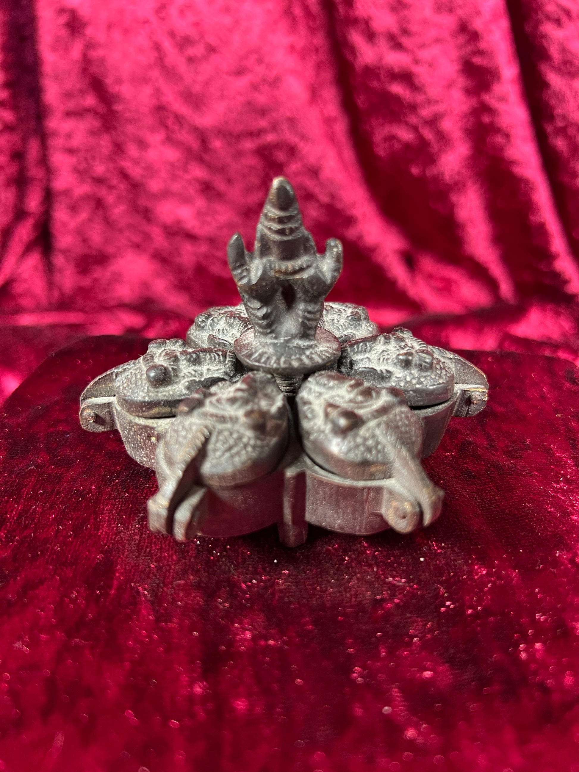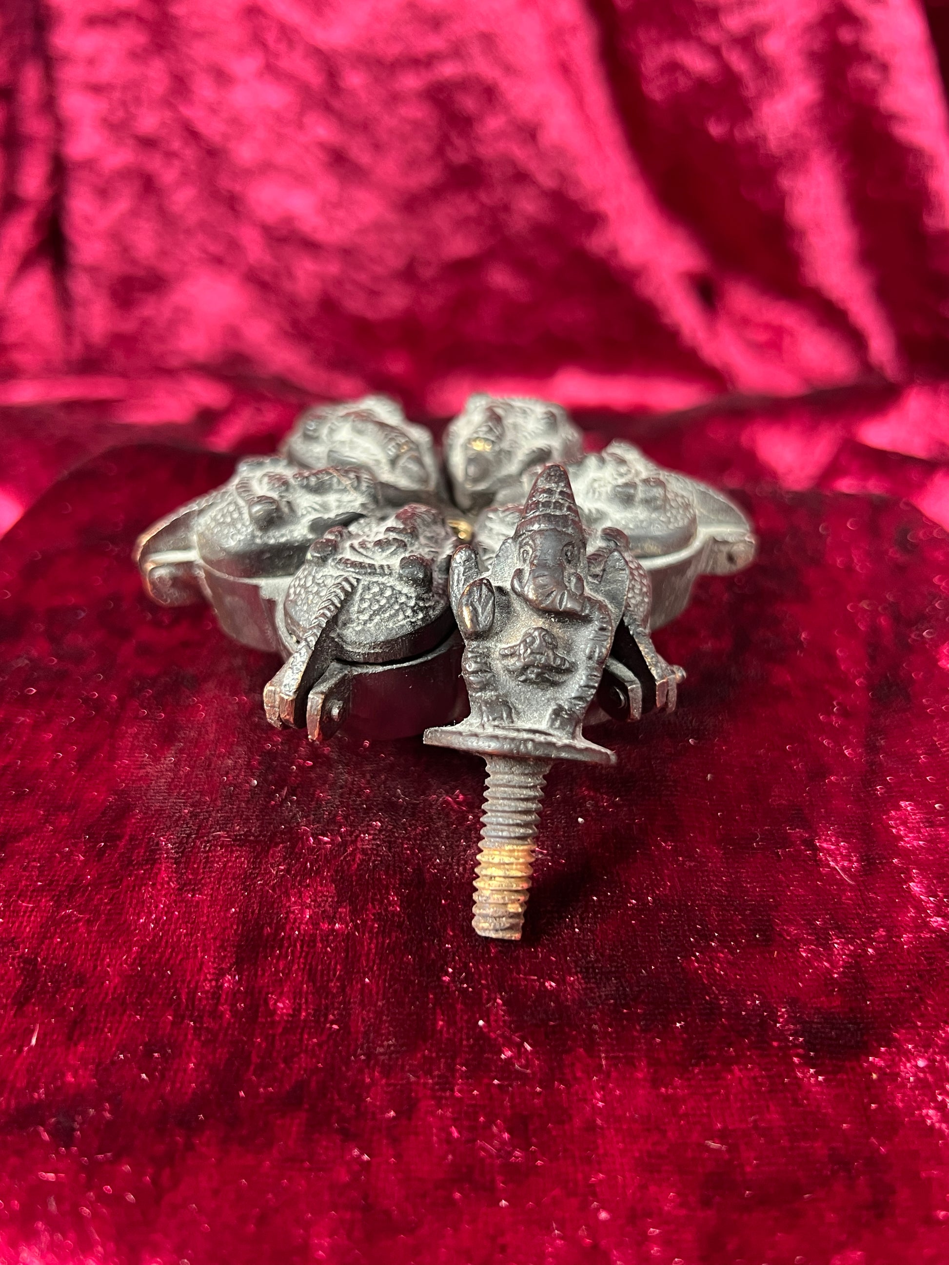 Vintage Oddities - Locking Brass Sindoor Box - Six Compartments - Ganesha