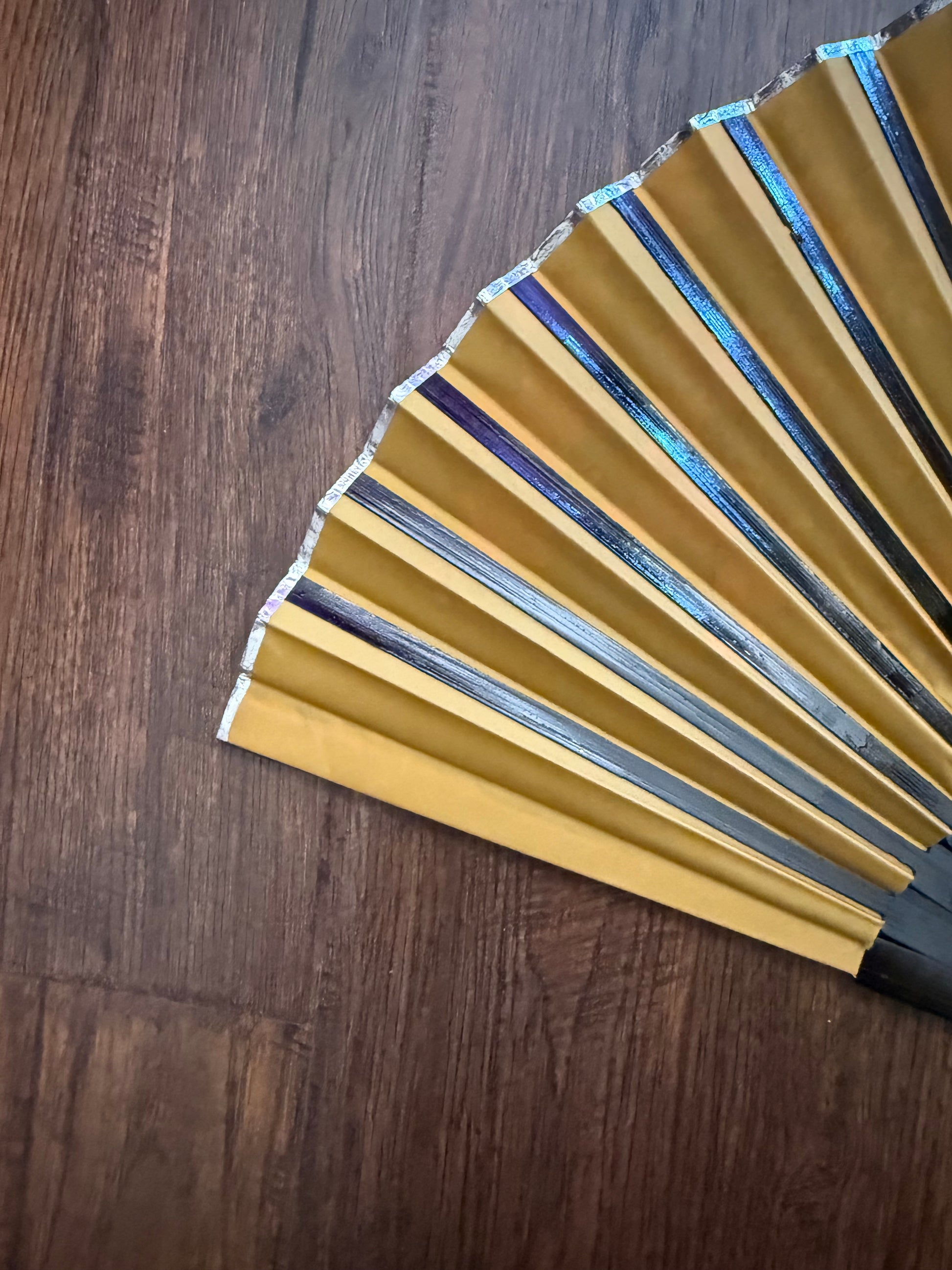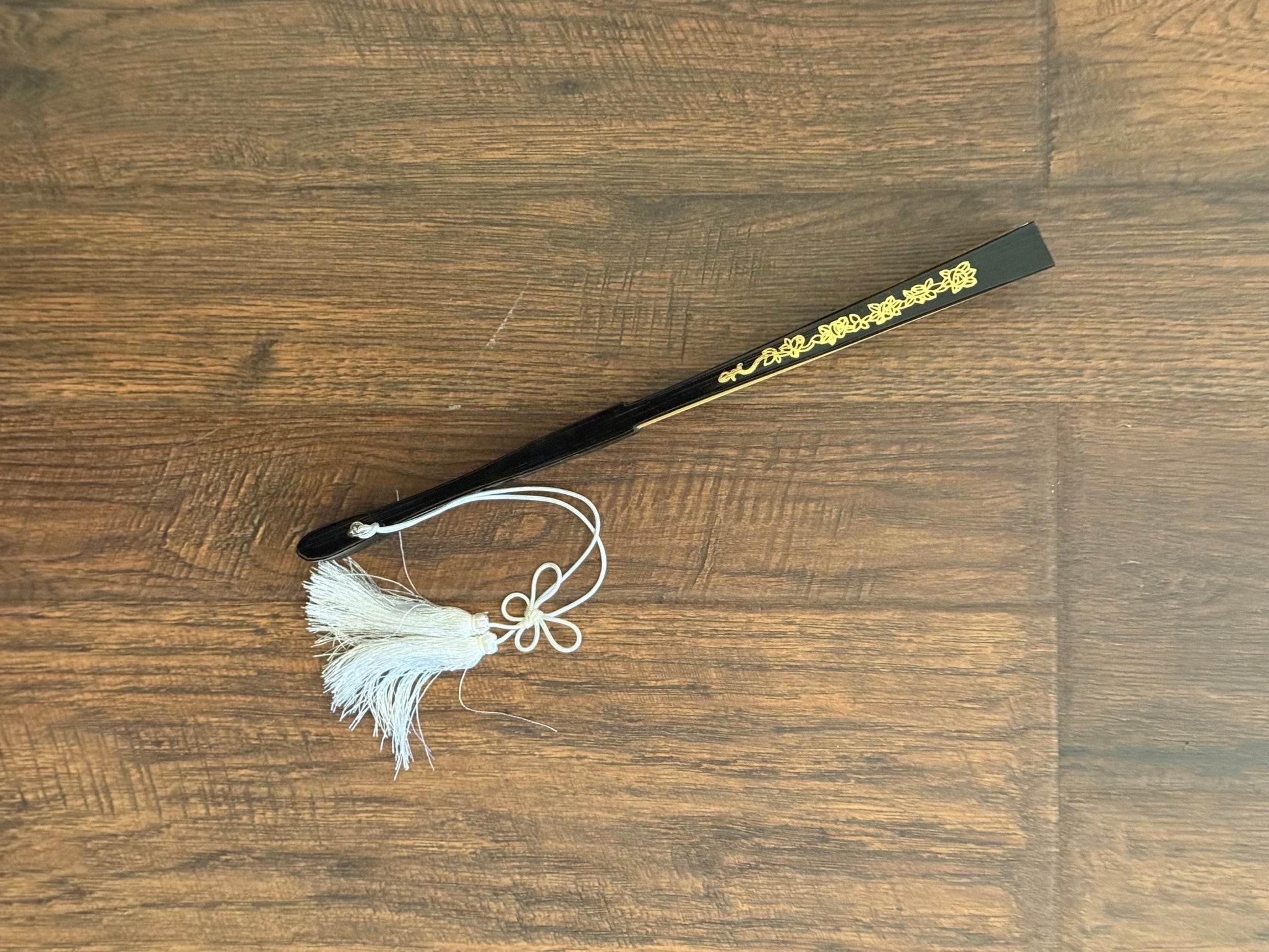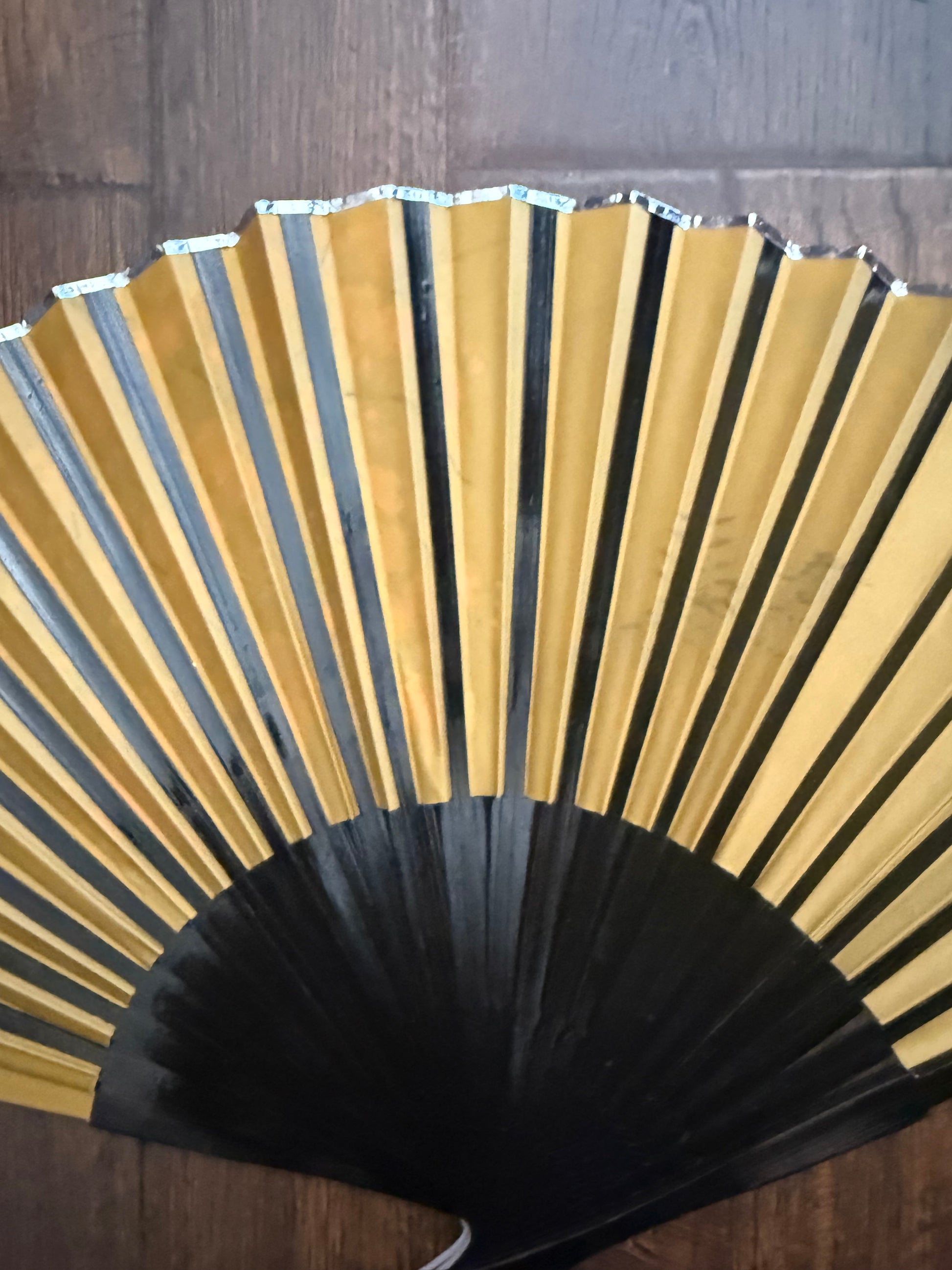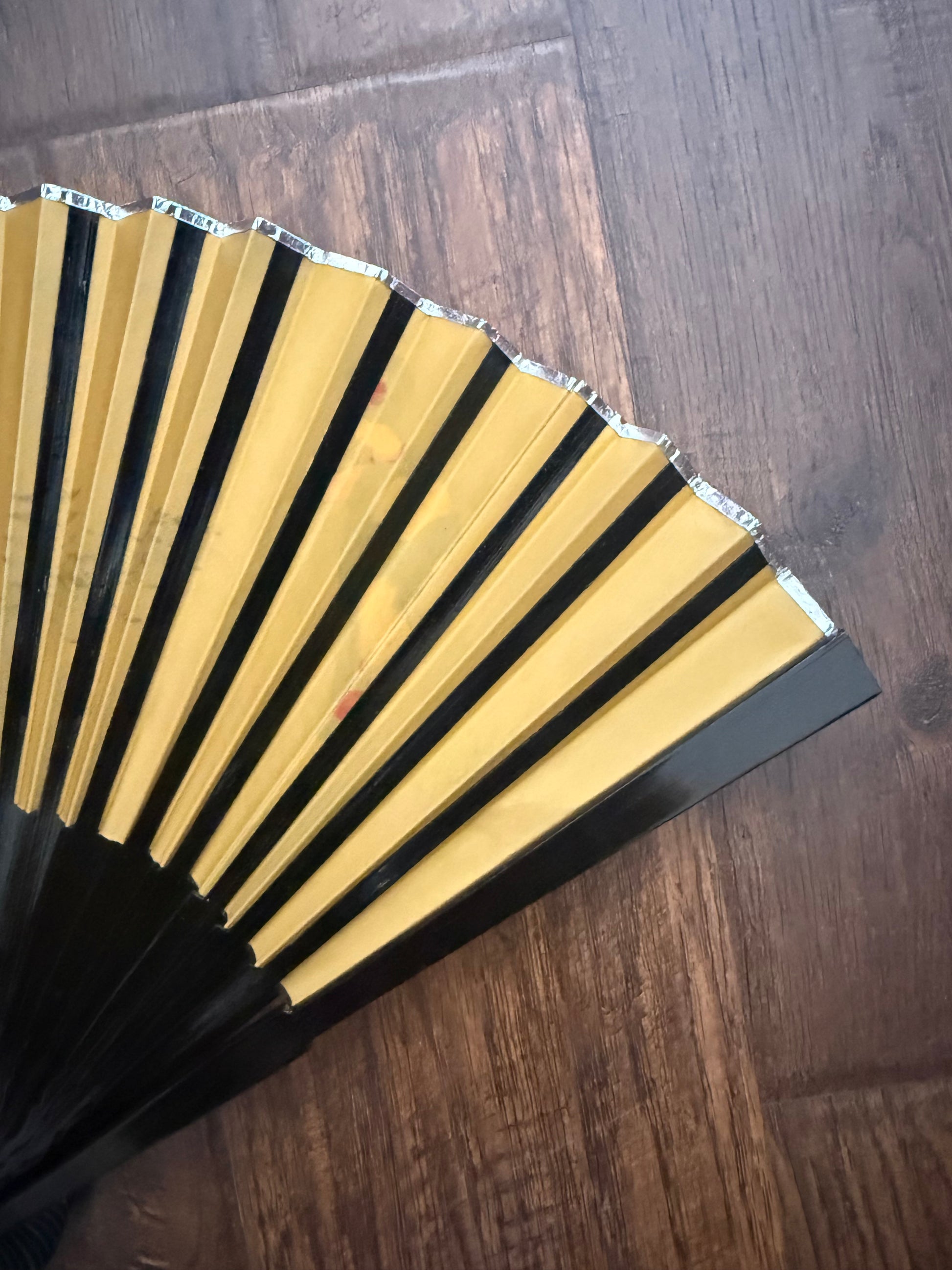 Vintage Paper Fan - Gold Paper Japanese Sakura Blossoms with Geisha