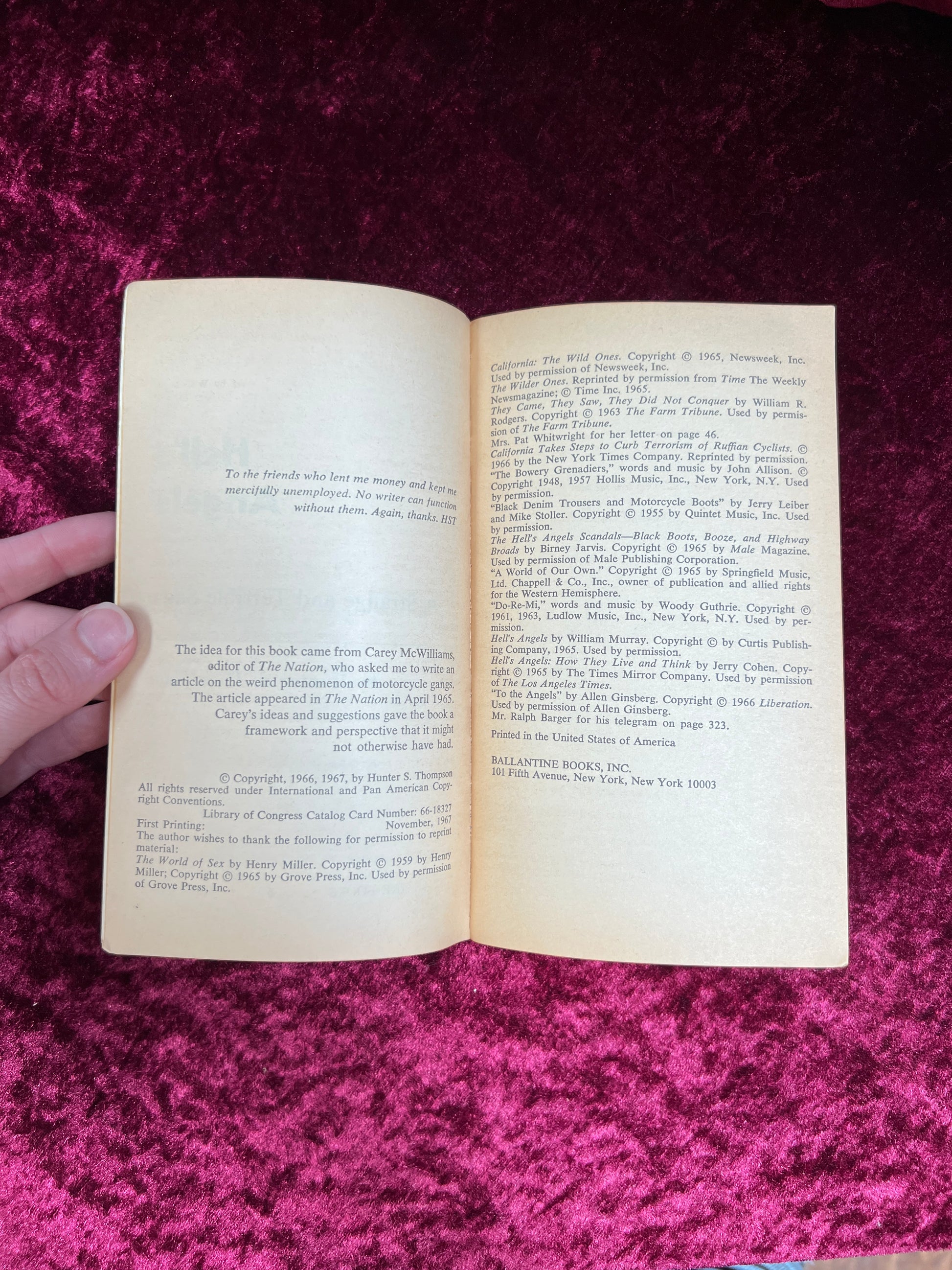 Vintage Paperback Book - Hell's Angels - Hunter S. Thompson - Ballantine Books 1967