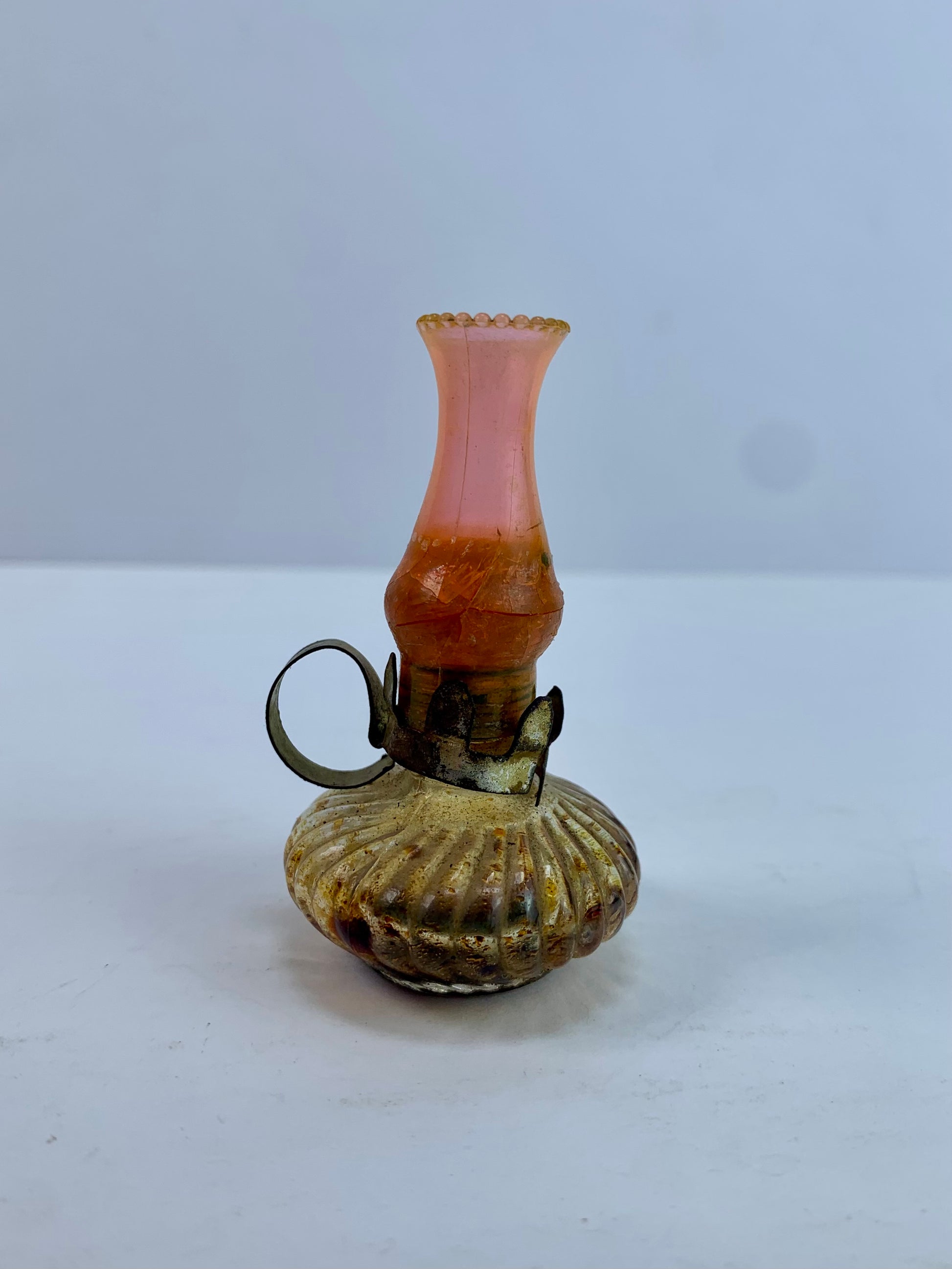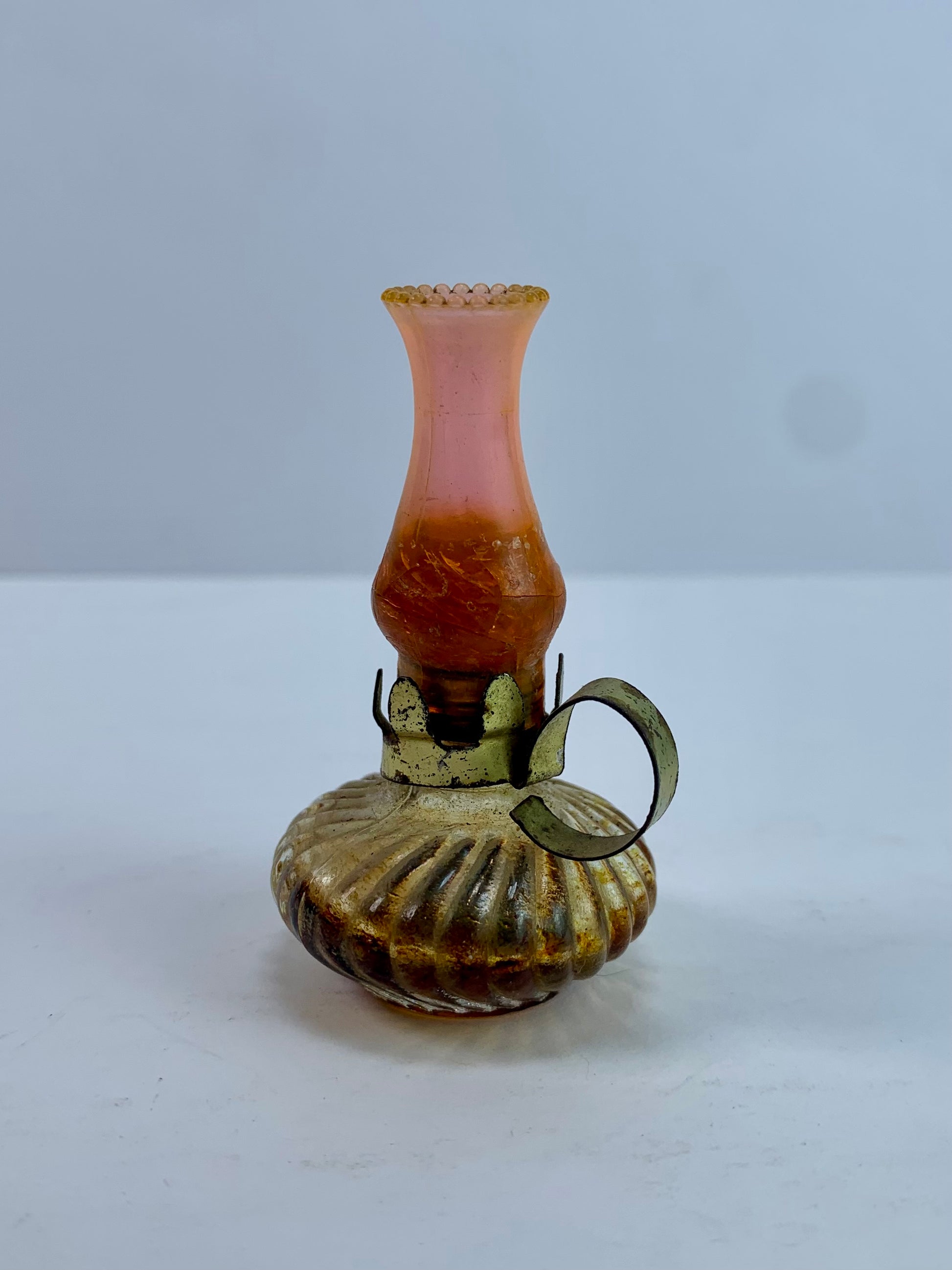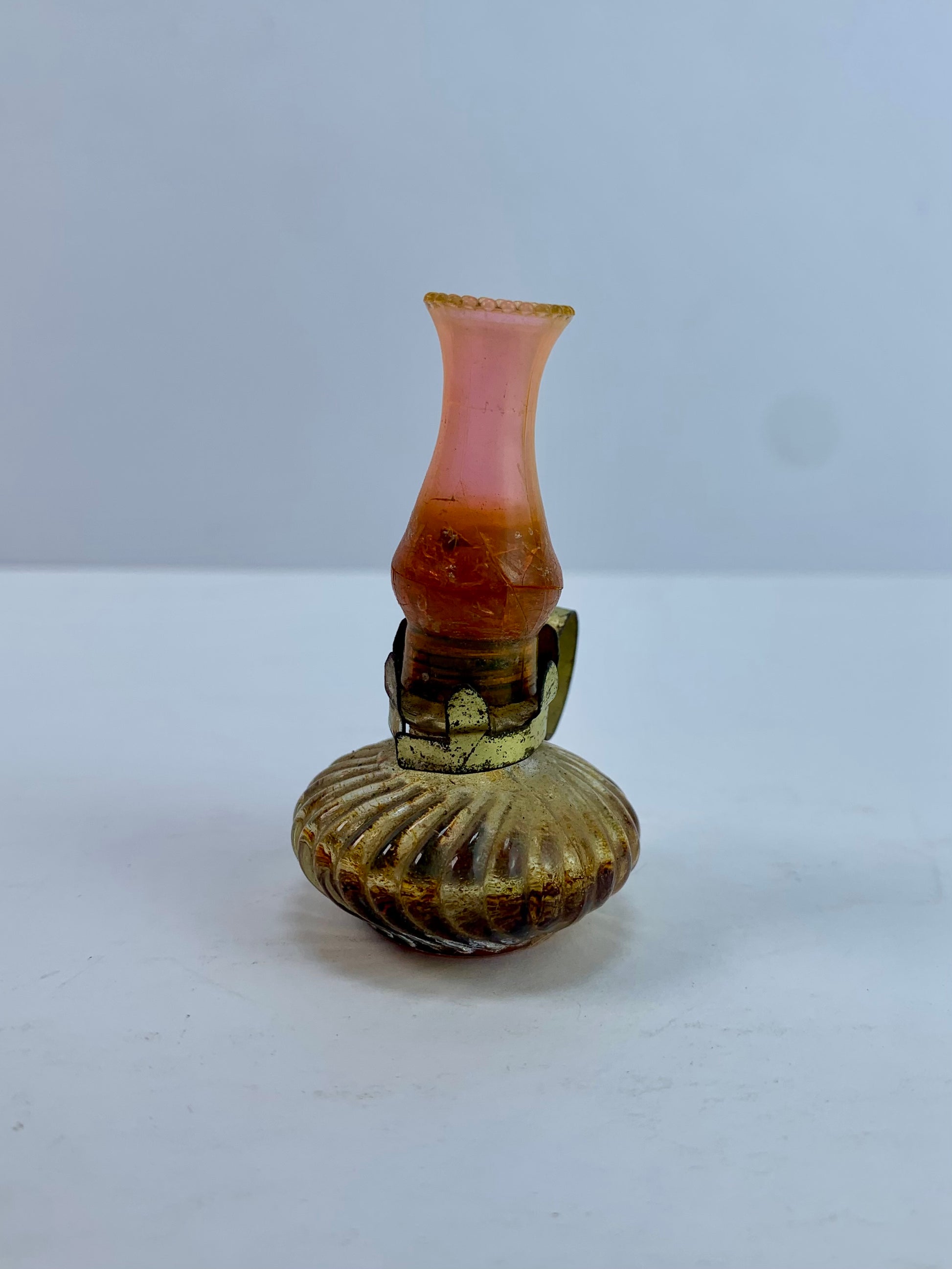 Vintage Perfume Bottle - Miniature Oil Lamp - Amber Glass - 2 1/2"
