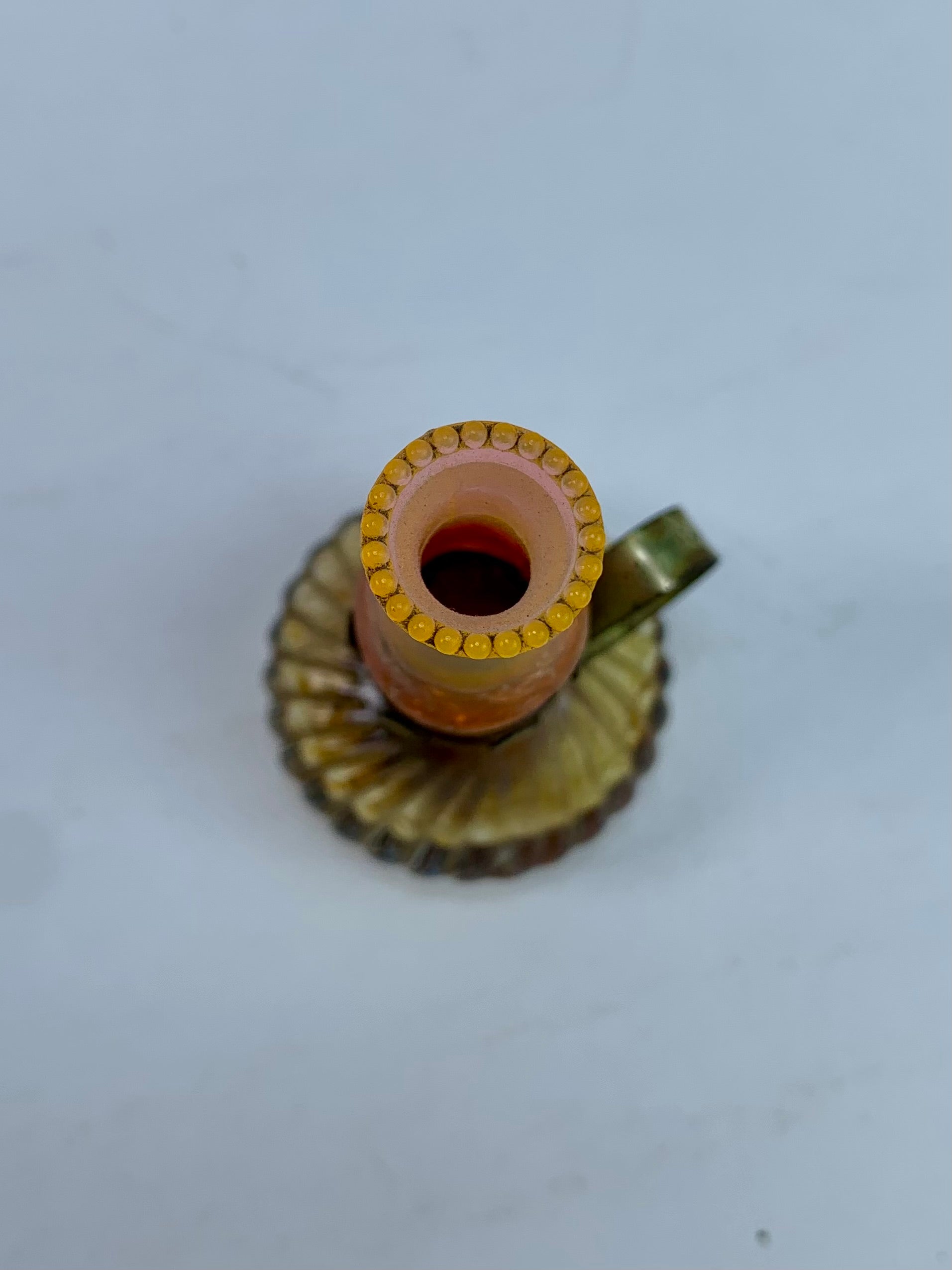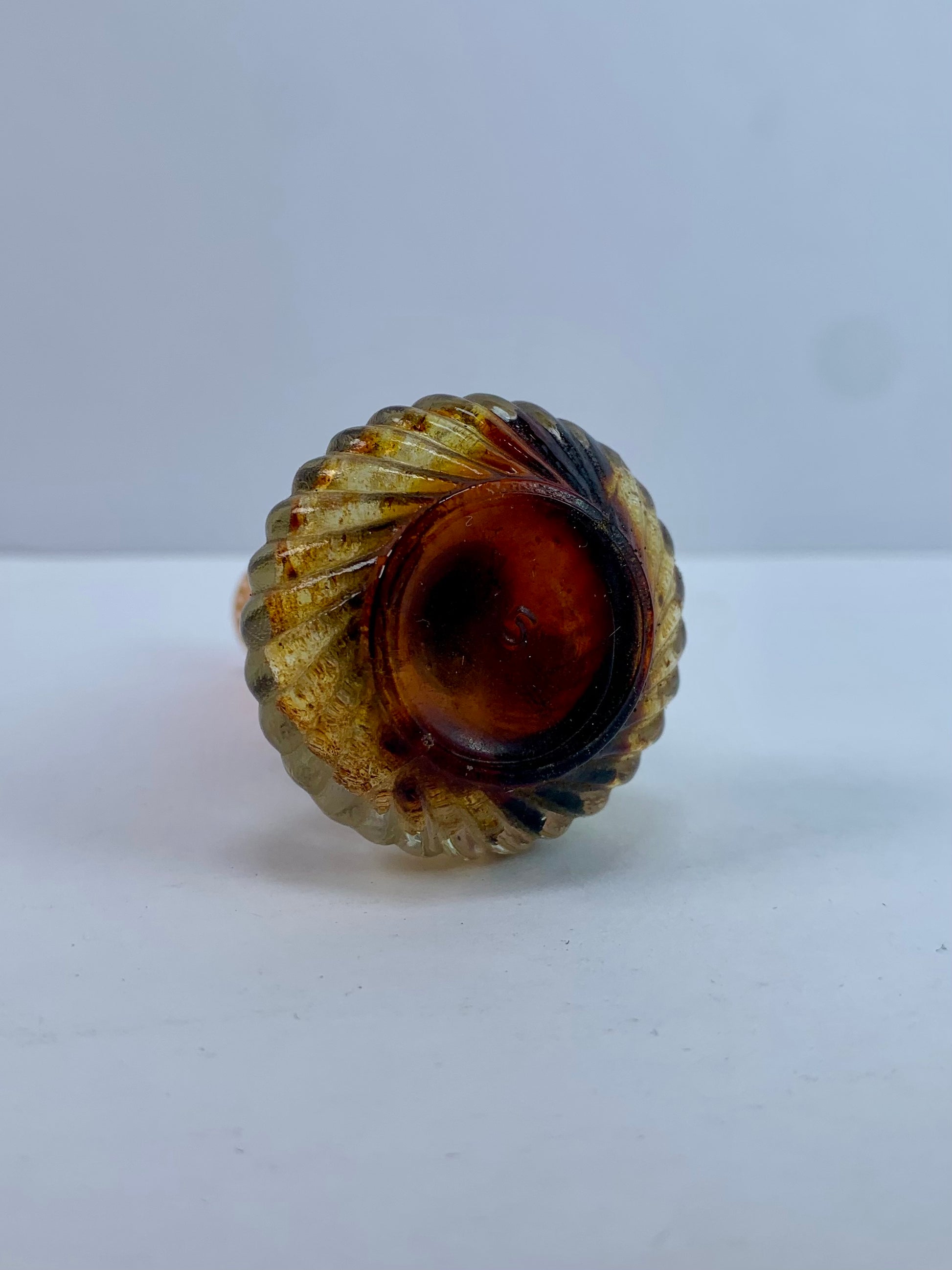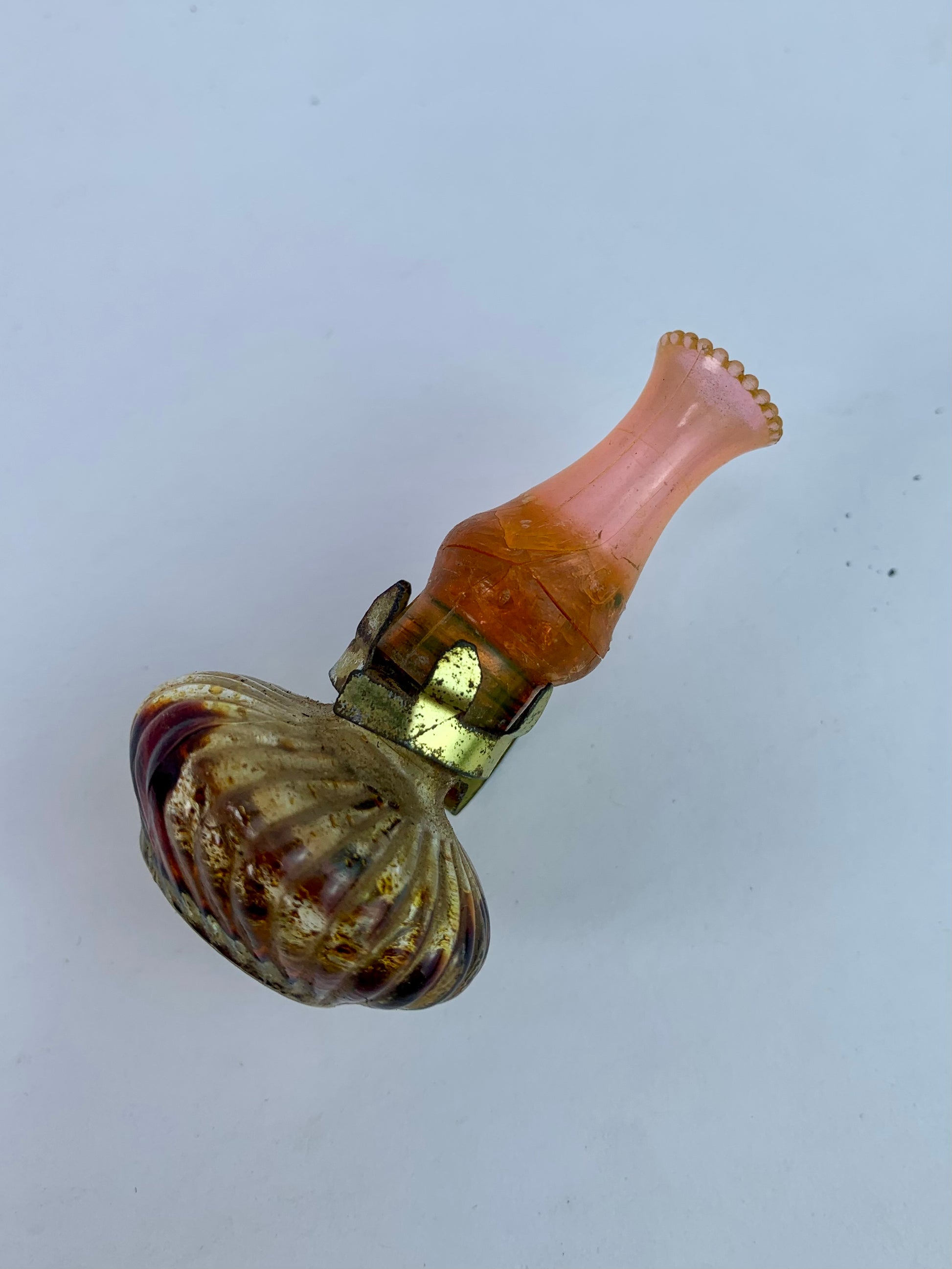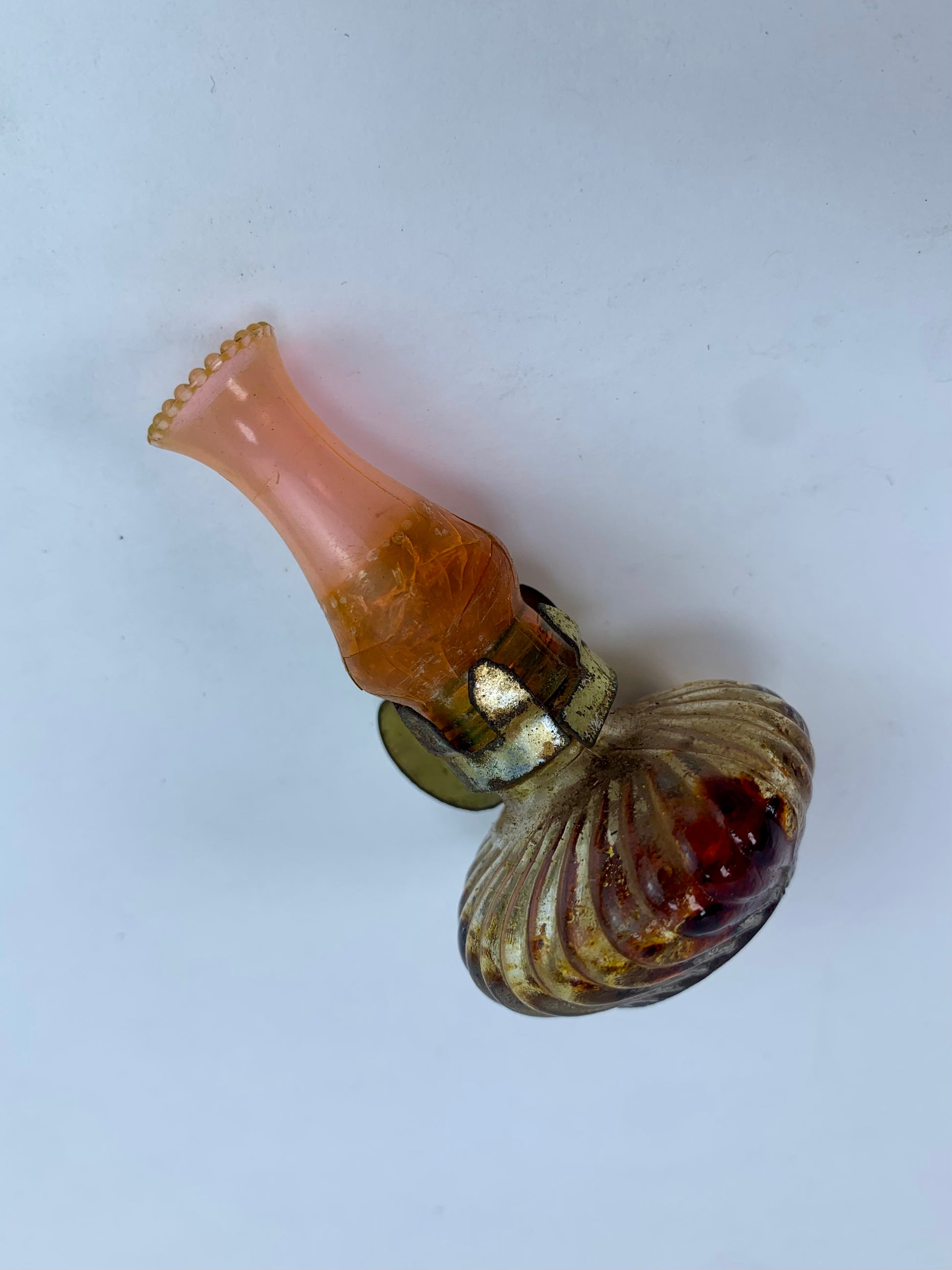 Vintage Perfume Bottle - Miniature Oil Lamp - Amber Glass - 2 1/2"