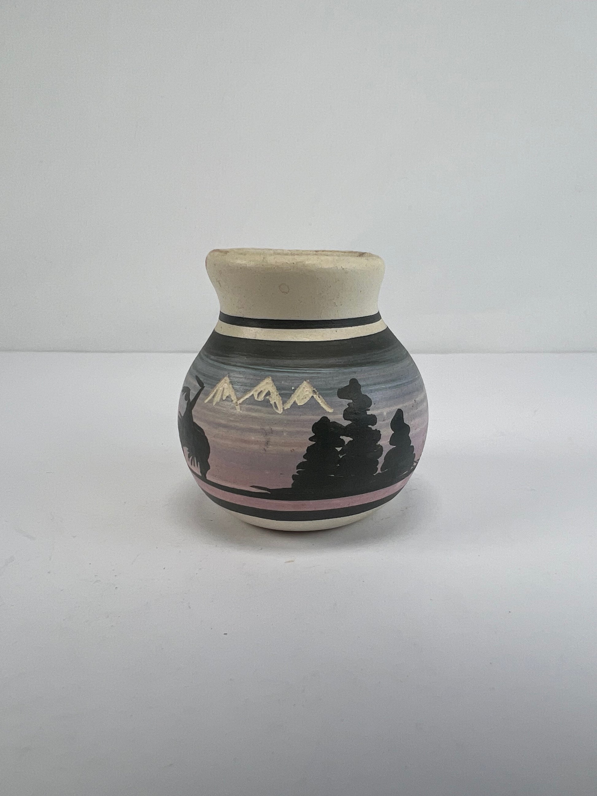 Vintage Pottery - Painted Miniature Vase - Signed Navajo - 1987