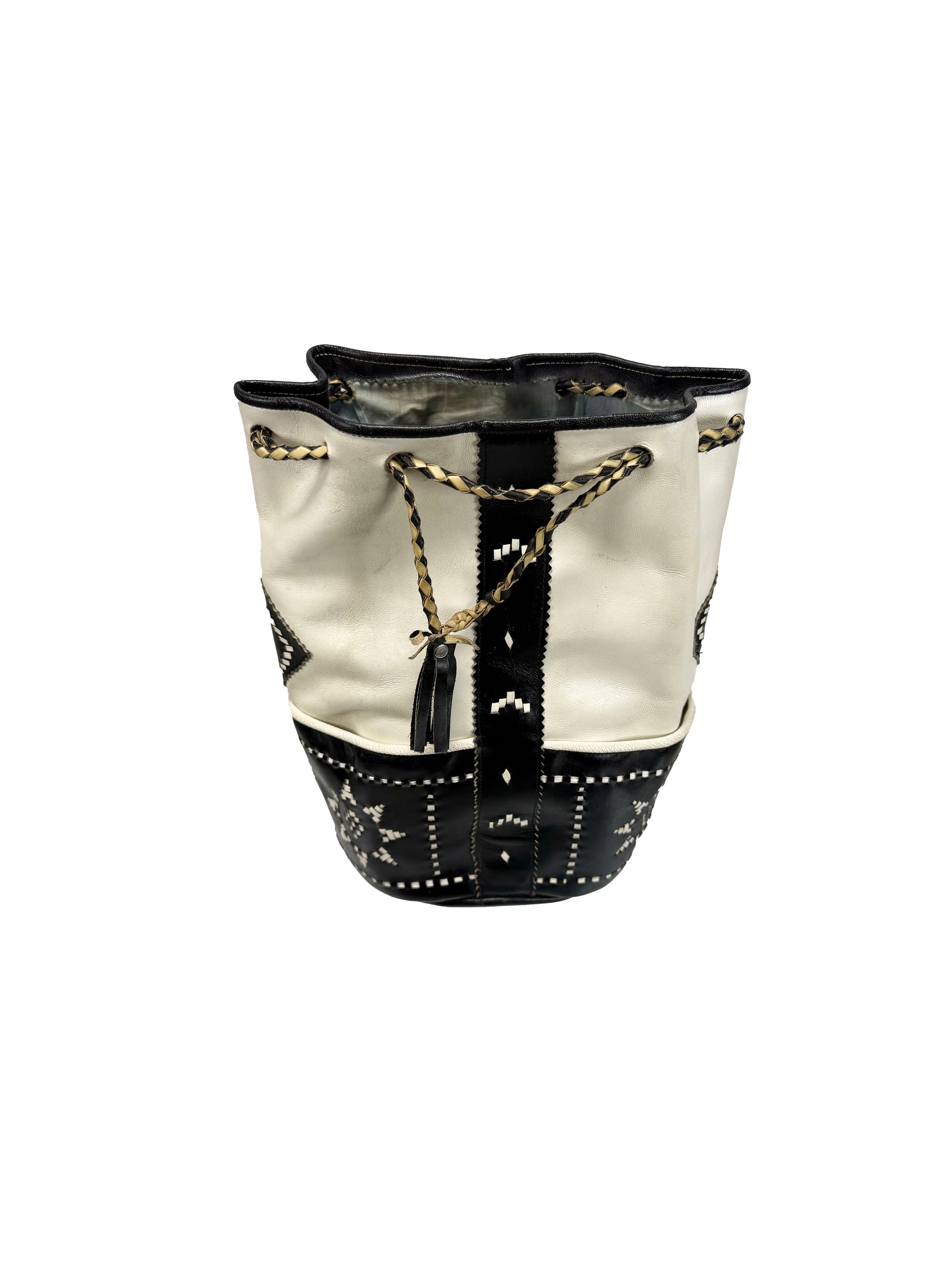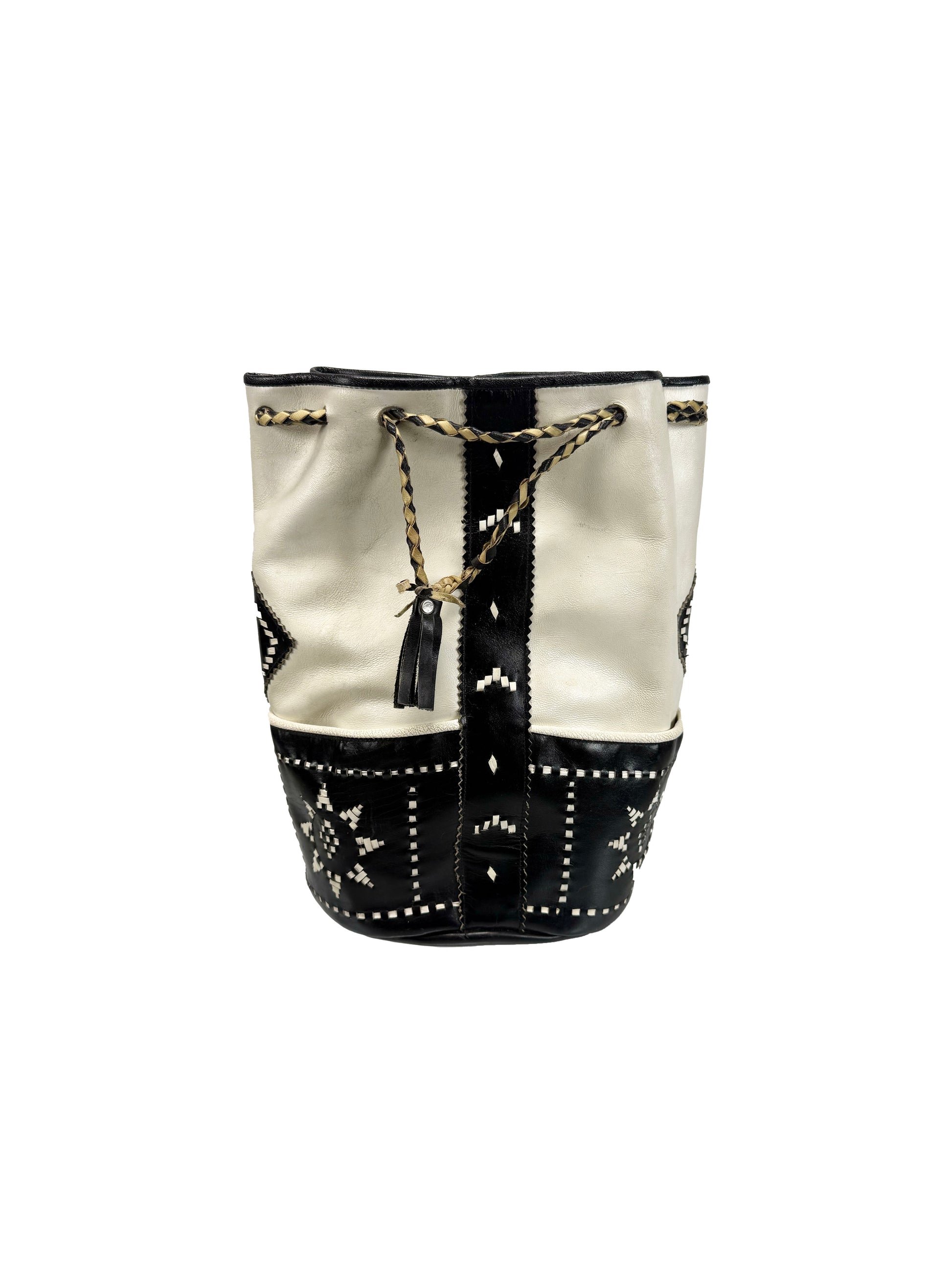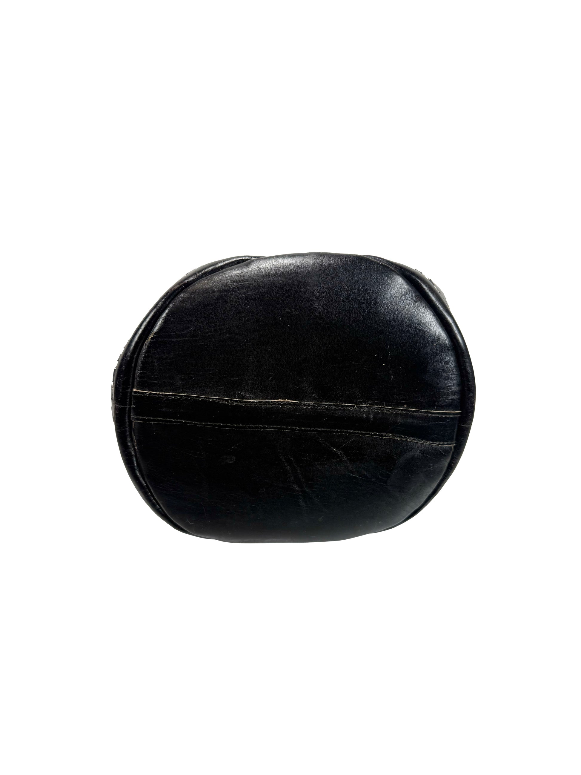 Vintage Purse - Black and White Leather Bucket Bag - Large