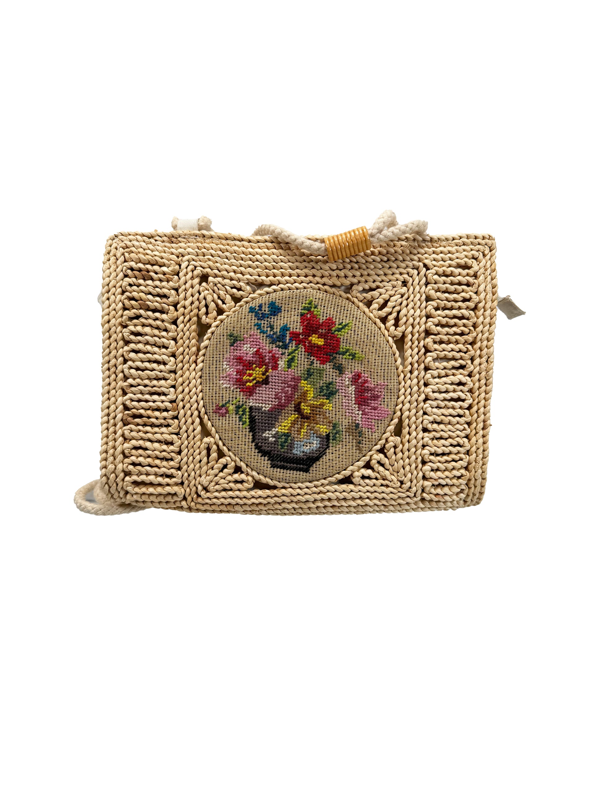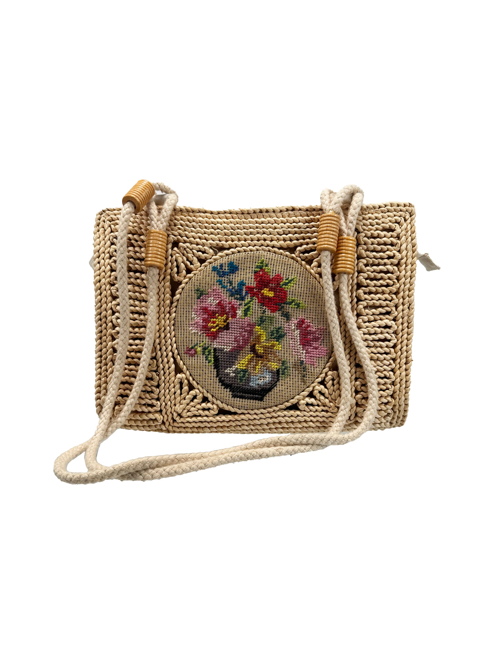 Vintage Purse - Handmade Needlepoint Floral Shoulder Bag