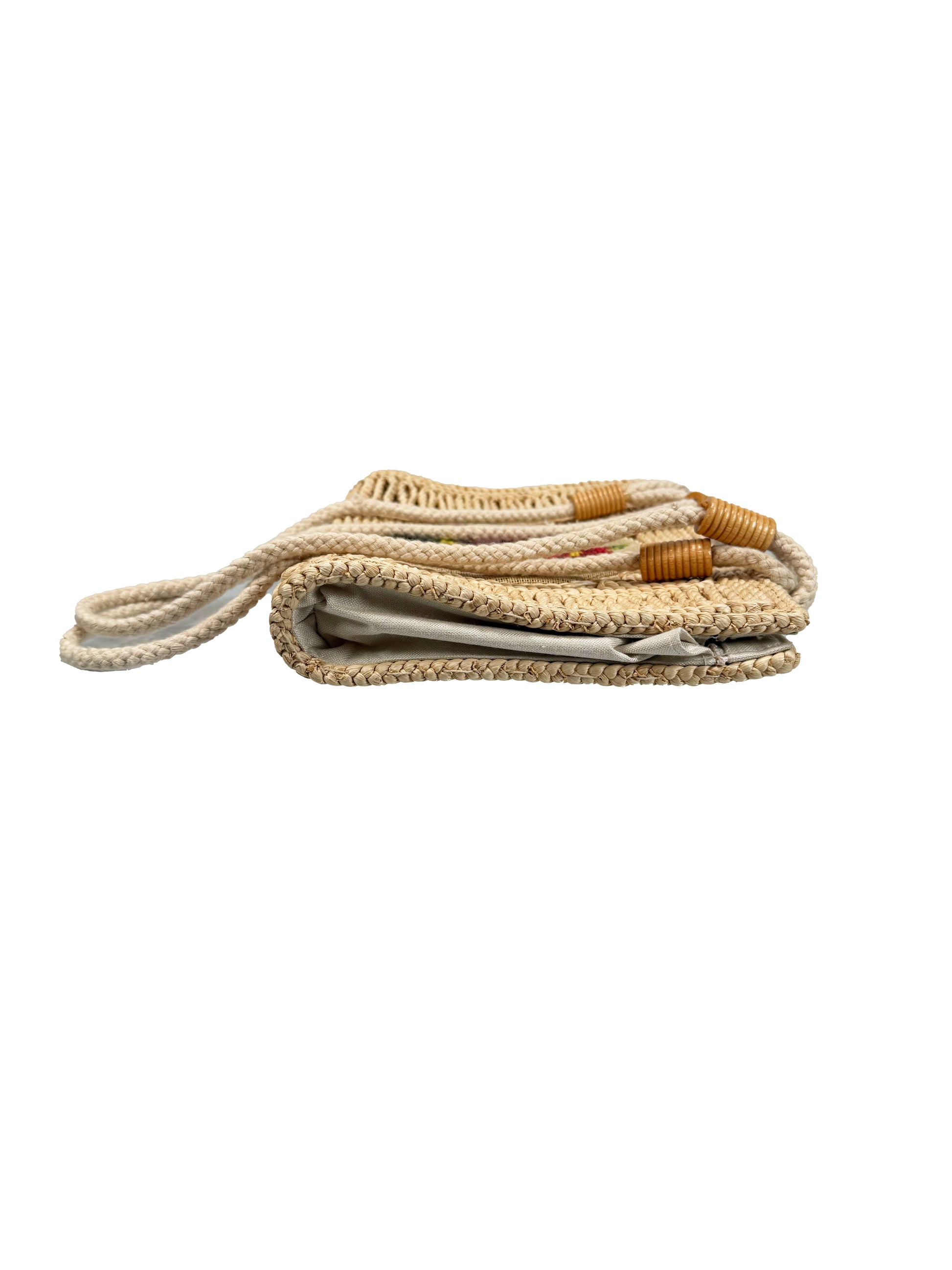 The perfect summer bag for your outdoor adventures! Such a cute and whimsical design, this artisan made bag features a floral needlepoint on both sides. Zipper closure, and inner pocket.
