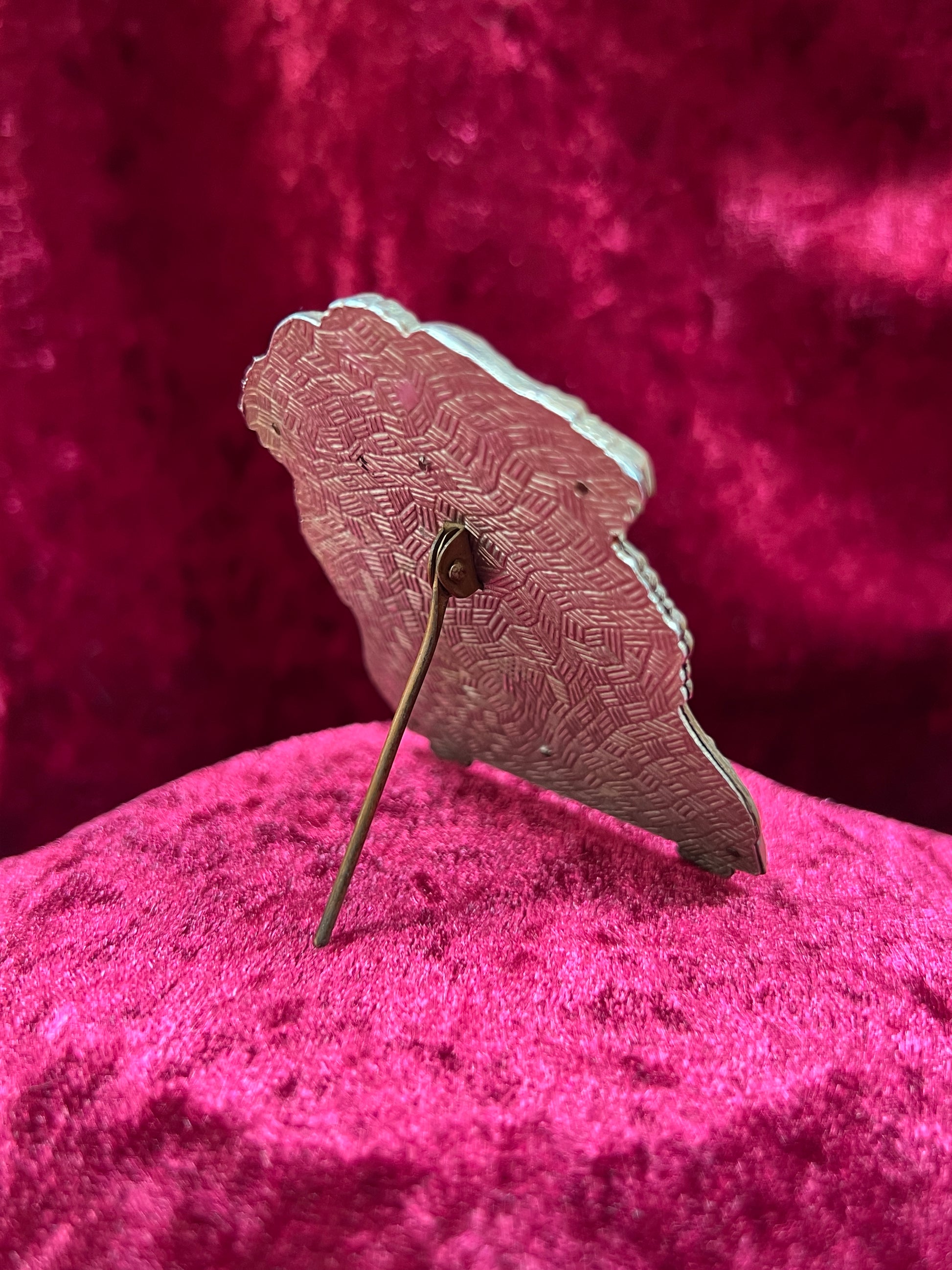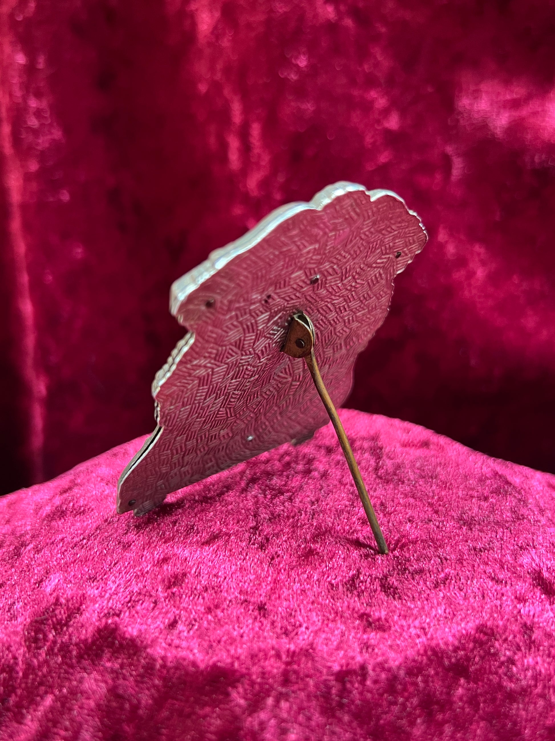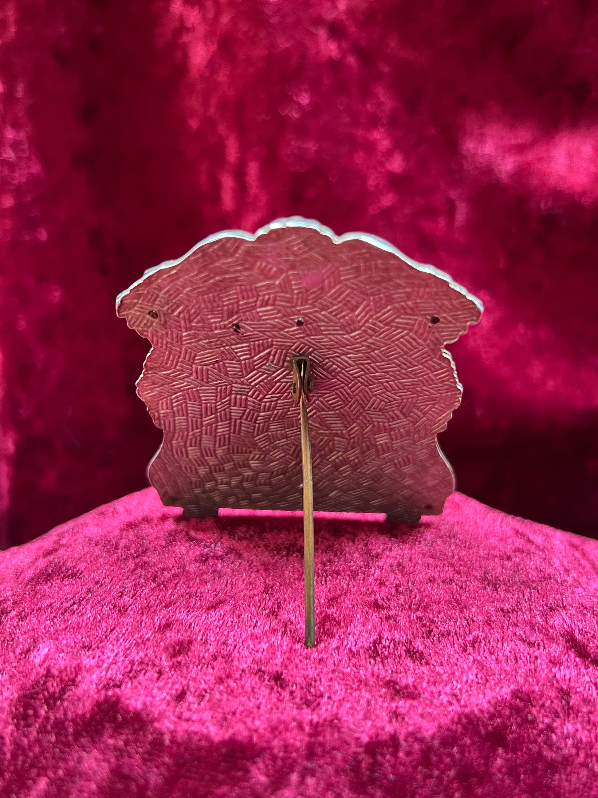 Vintage Religio - Framed Icon on Red Celluloid - Virgin Mary as Queen - 2.5" X 2"