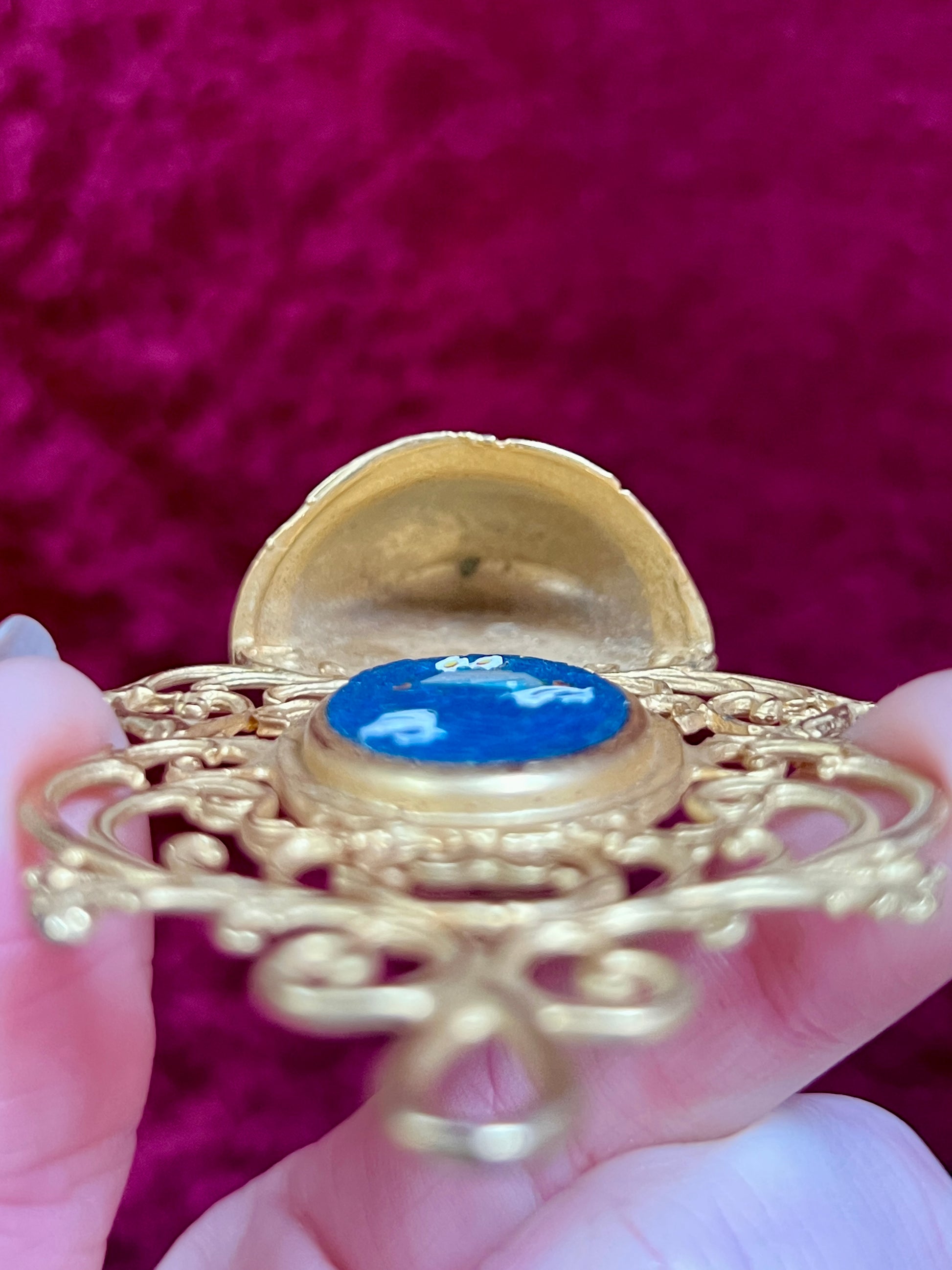 Vintage Religio - Miniature Holy Water Font - Millefiori Micro Mosaic of Two Doves - Italy