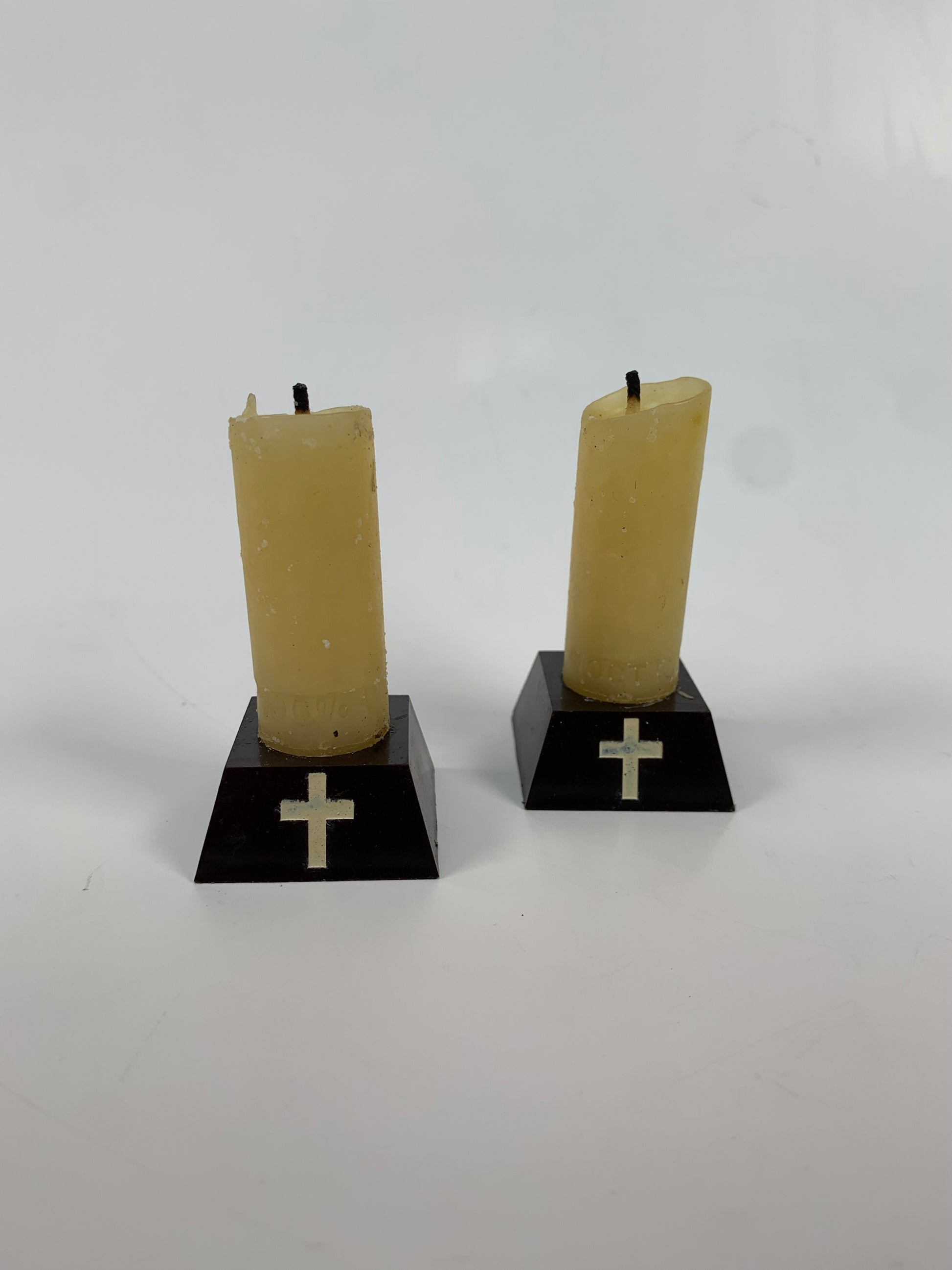 Condition: In good overall condition, there are no pieces missing. The two altar candles are burned halfway down.