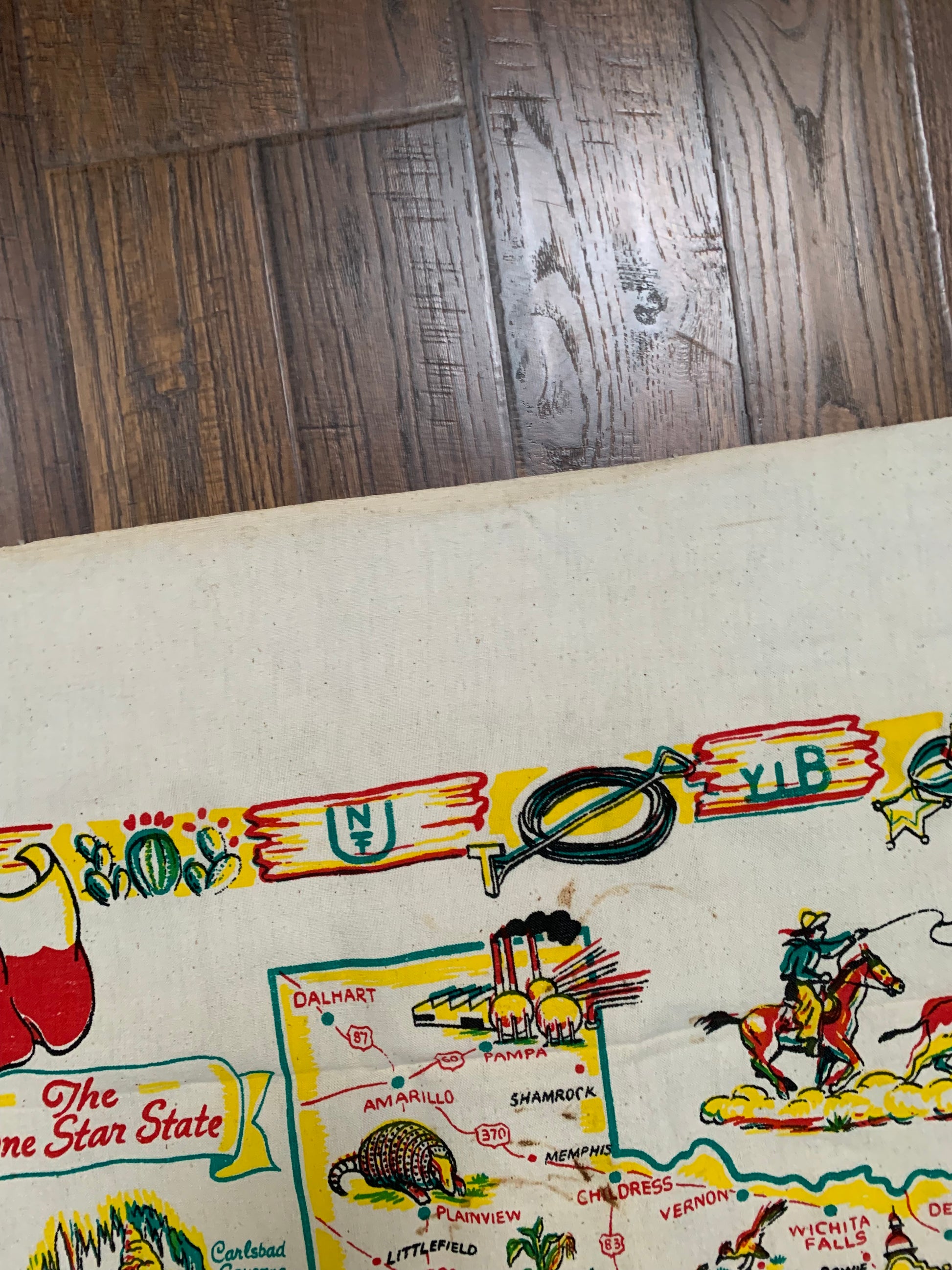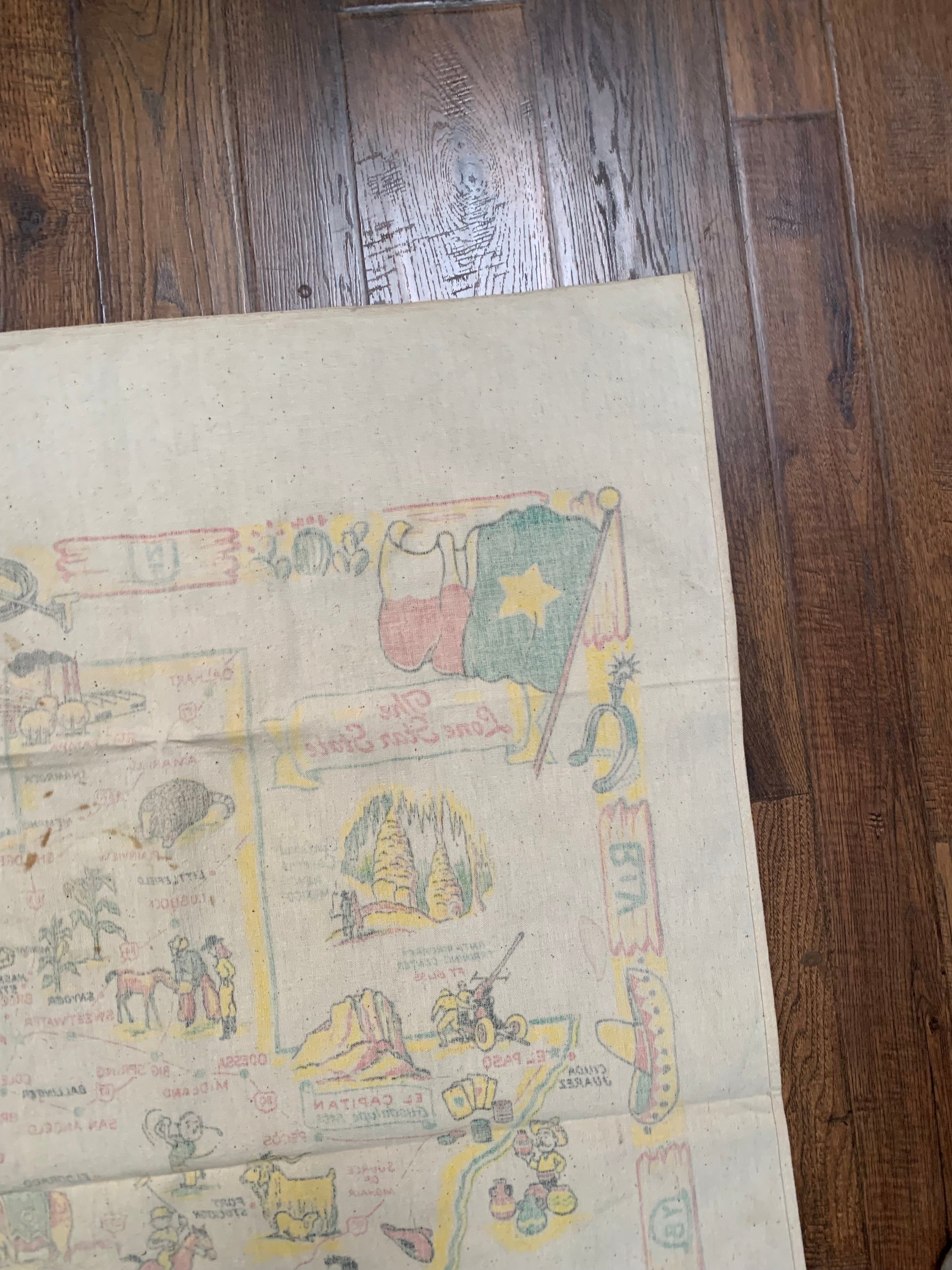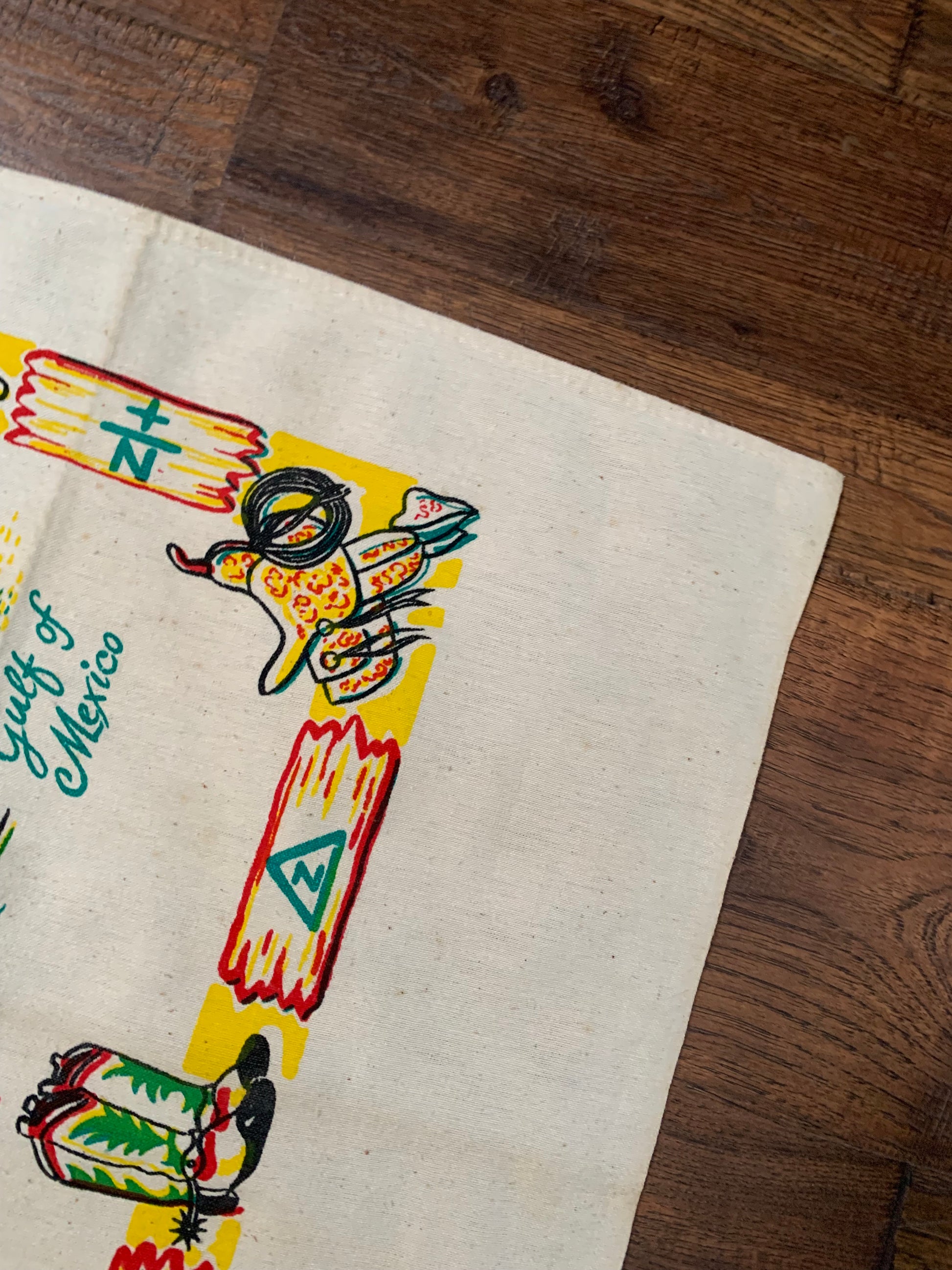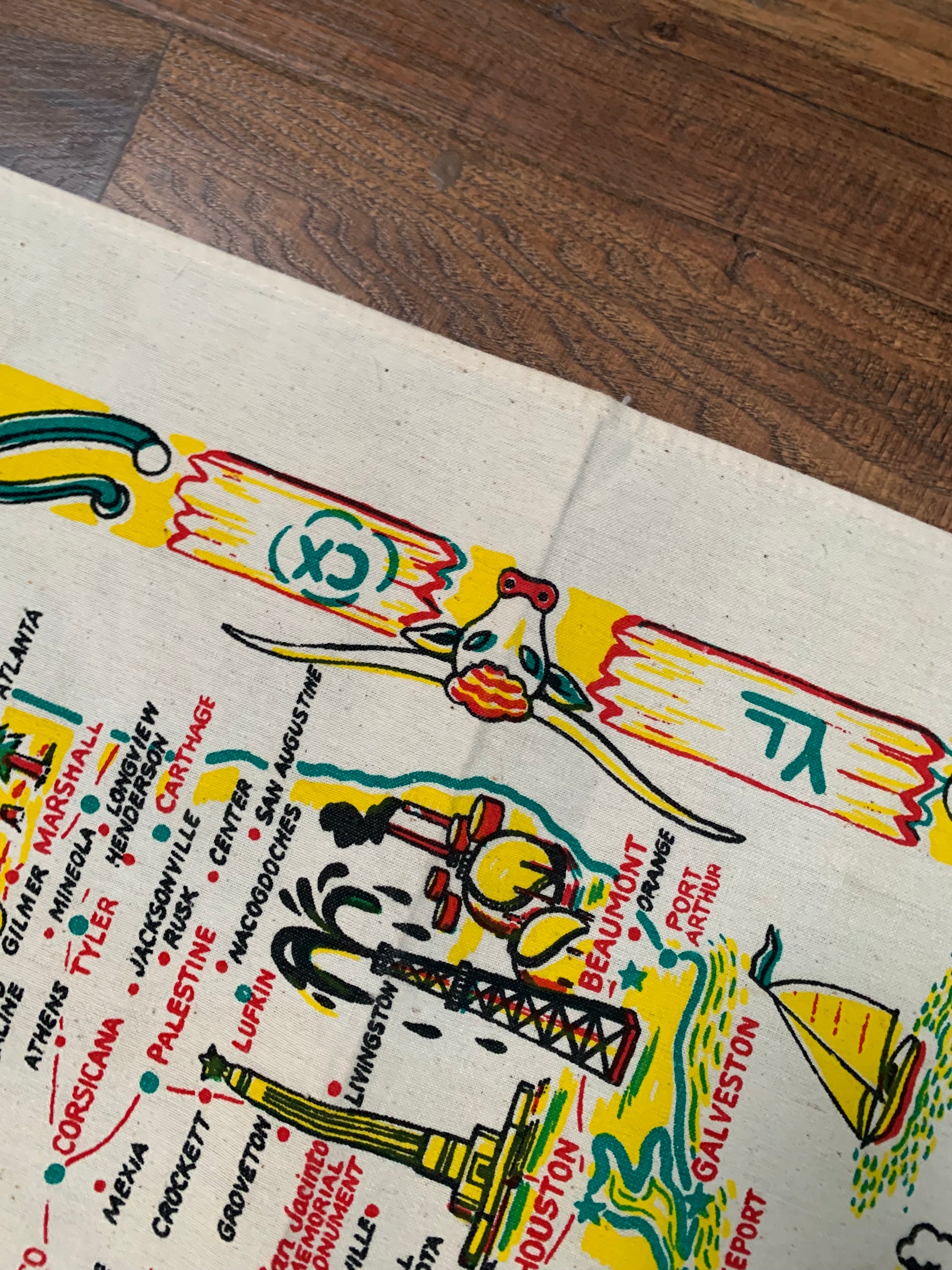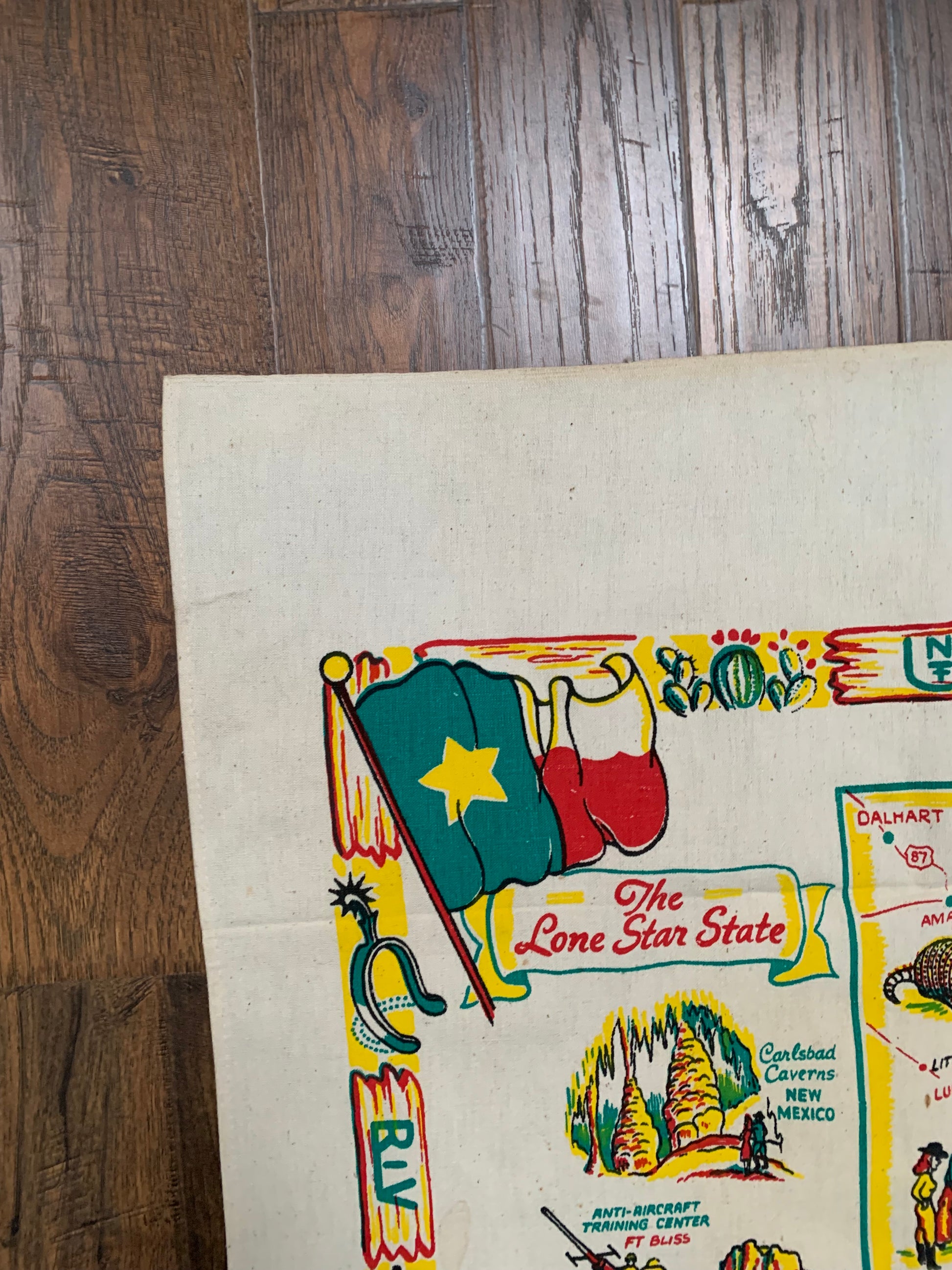 Vintage Souvenir - Wall Hanging Linen Tablecloth - Texas State Map - 1950s