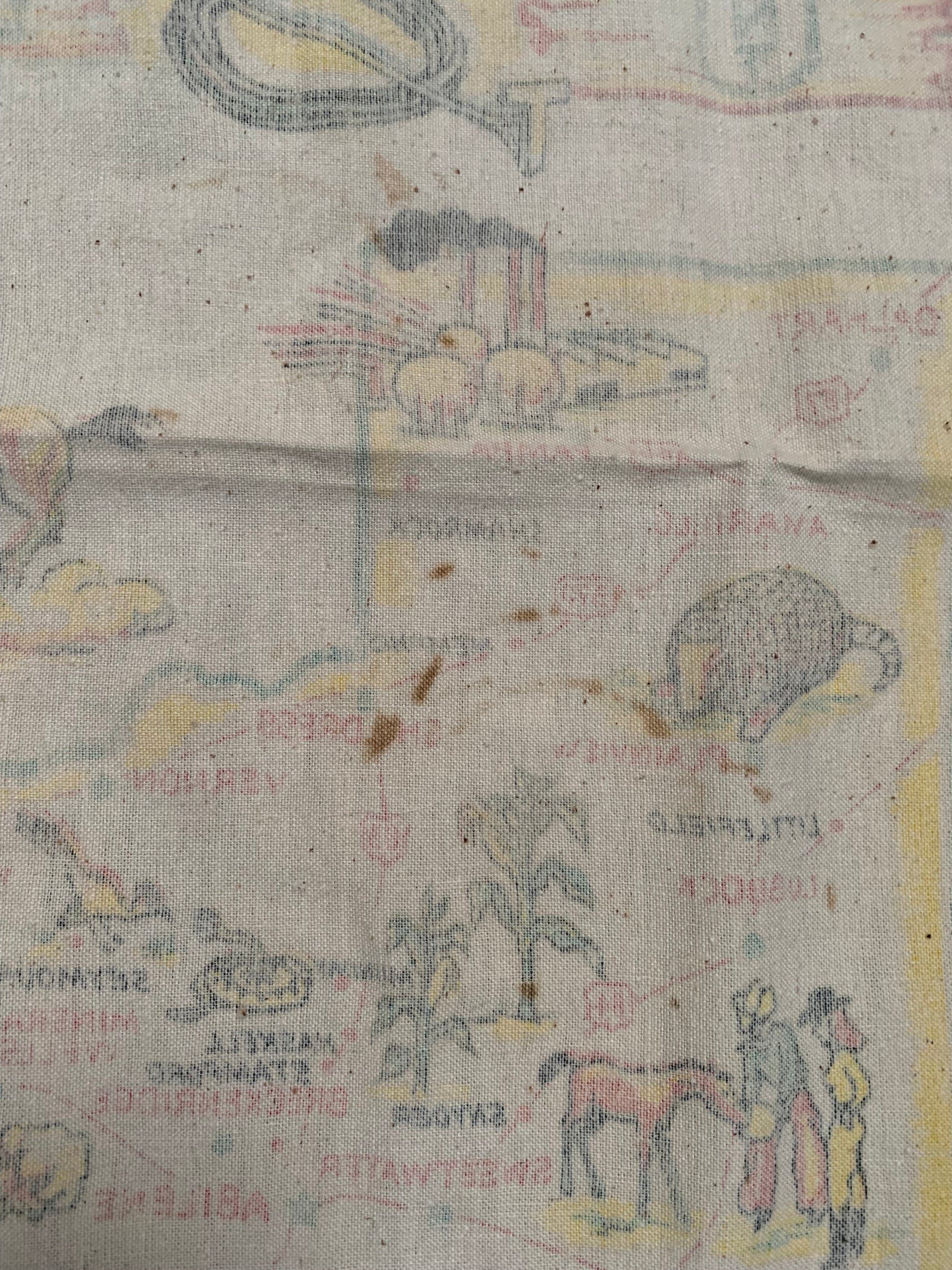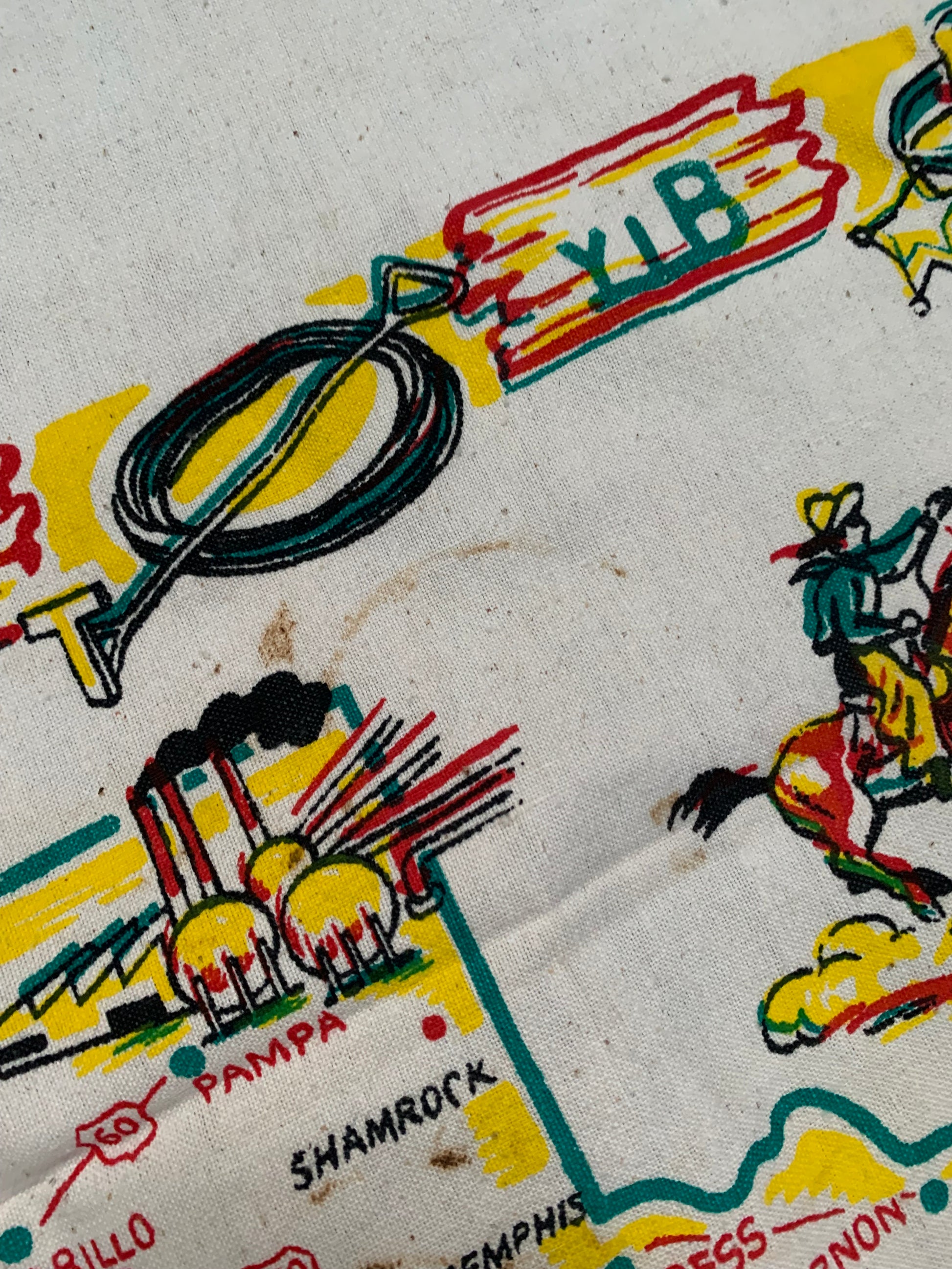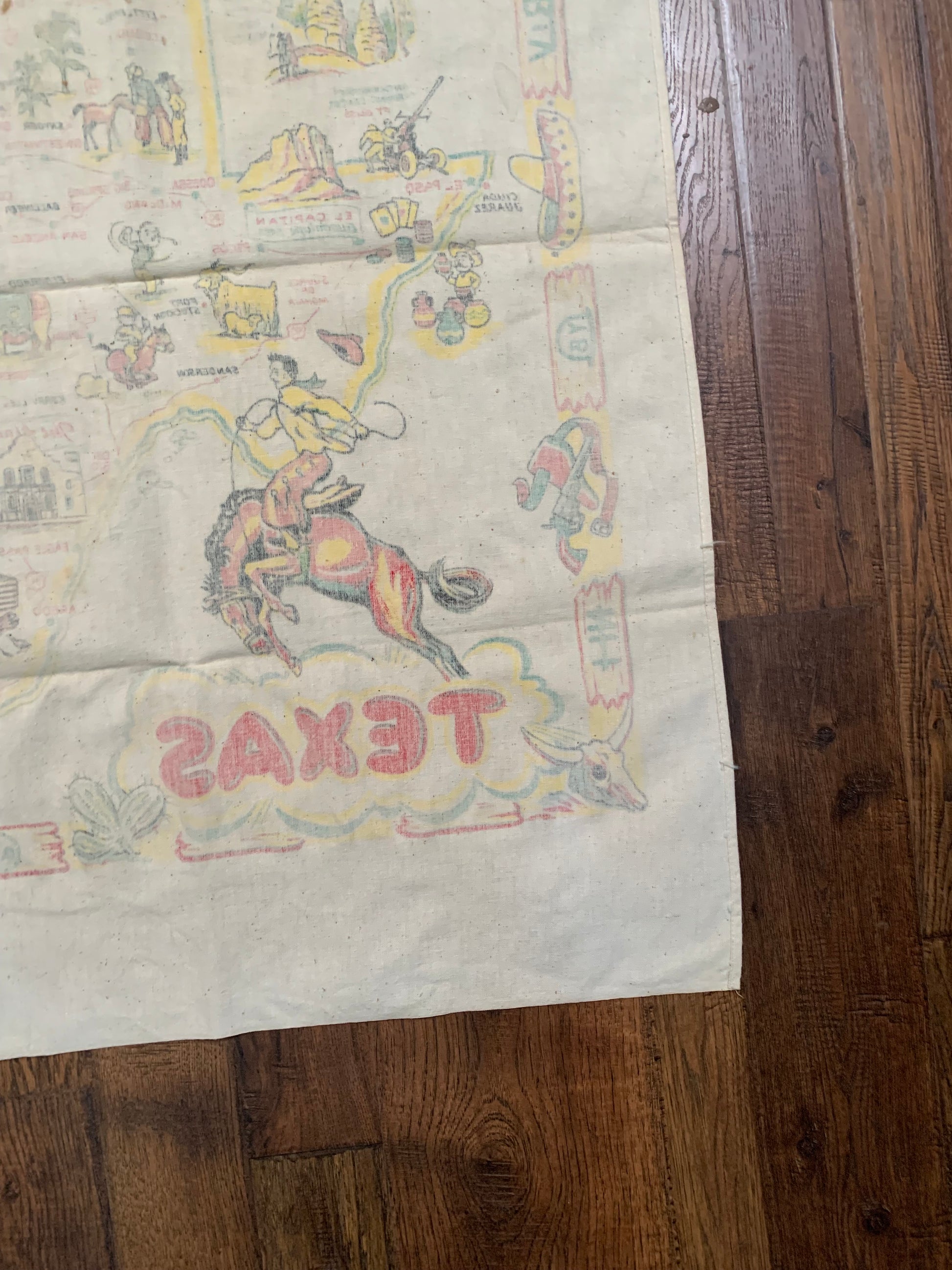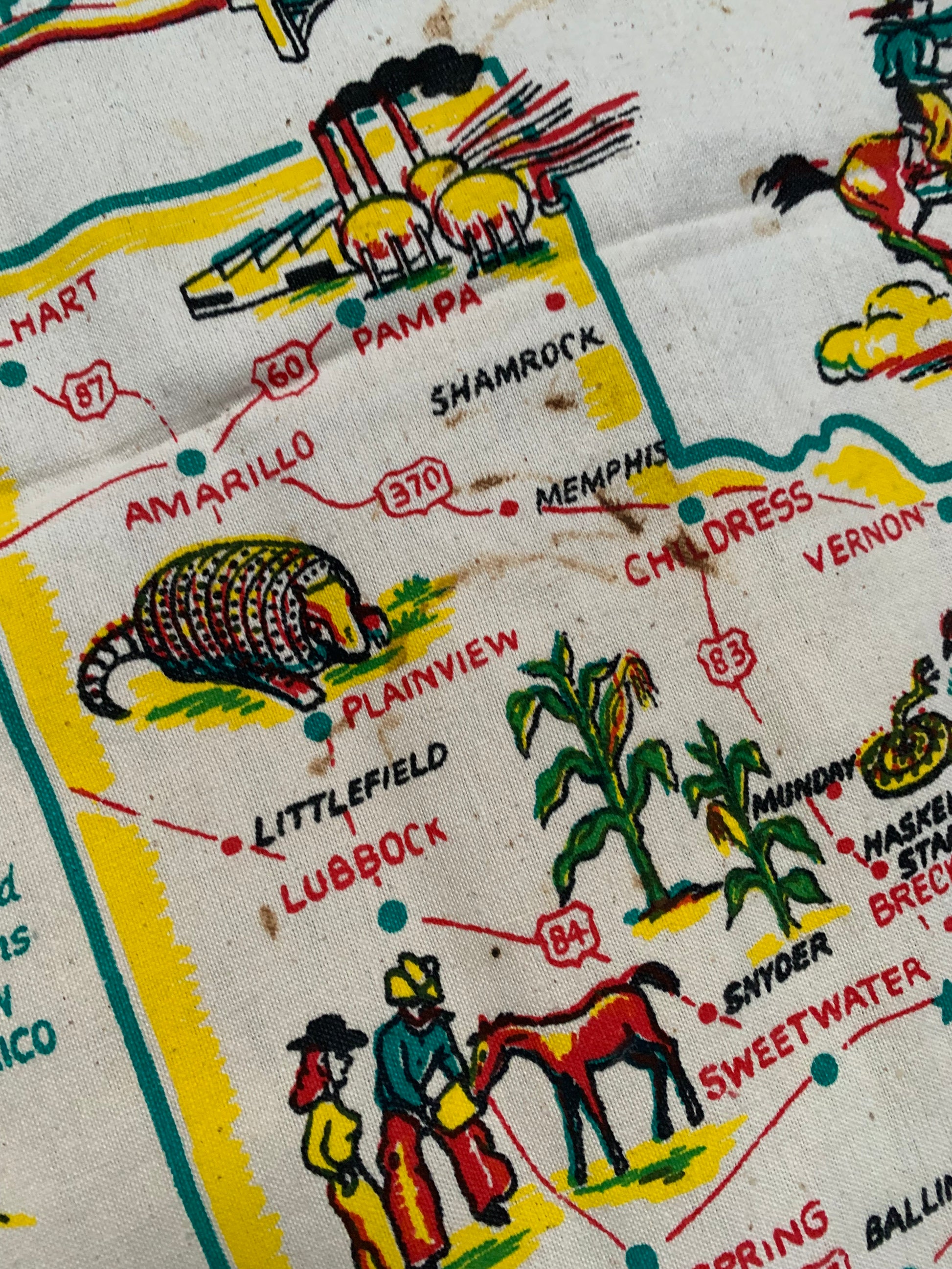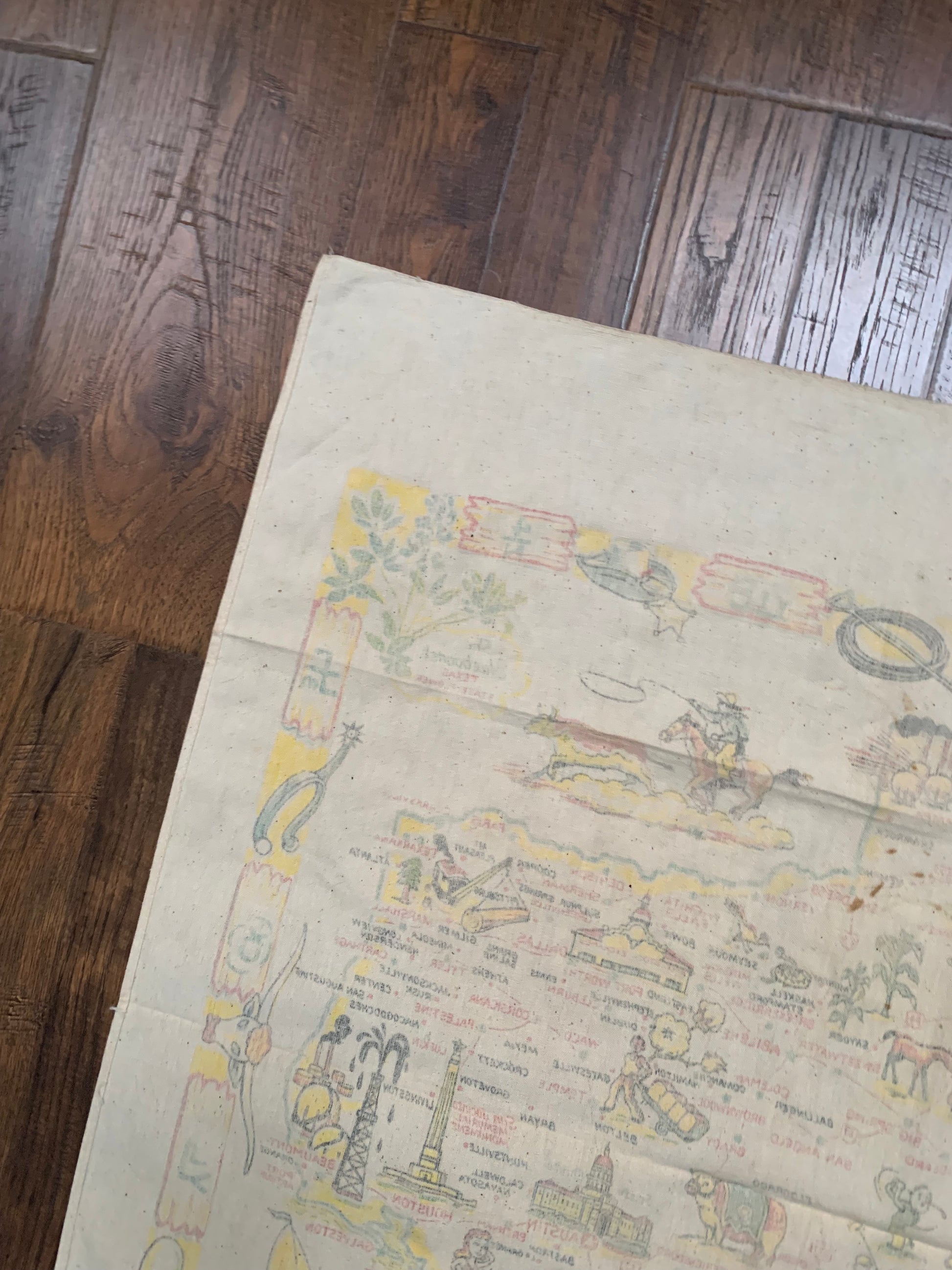 Vintage Souvenir - Wall Hanging Linen Tablecloth - Texas State Map - 1950s