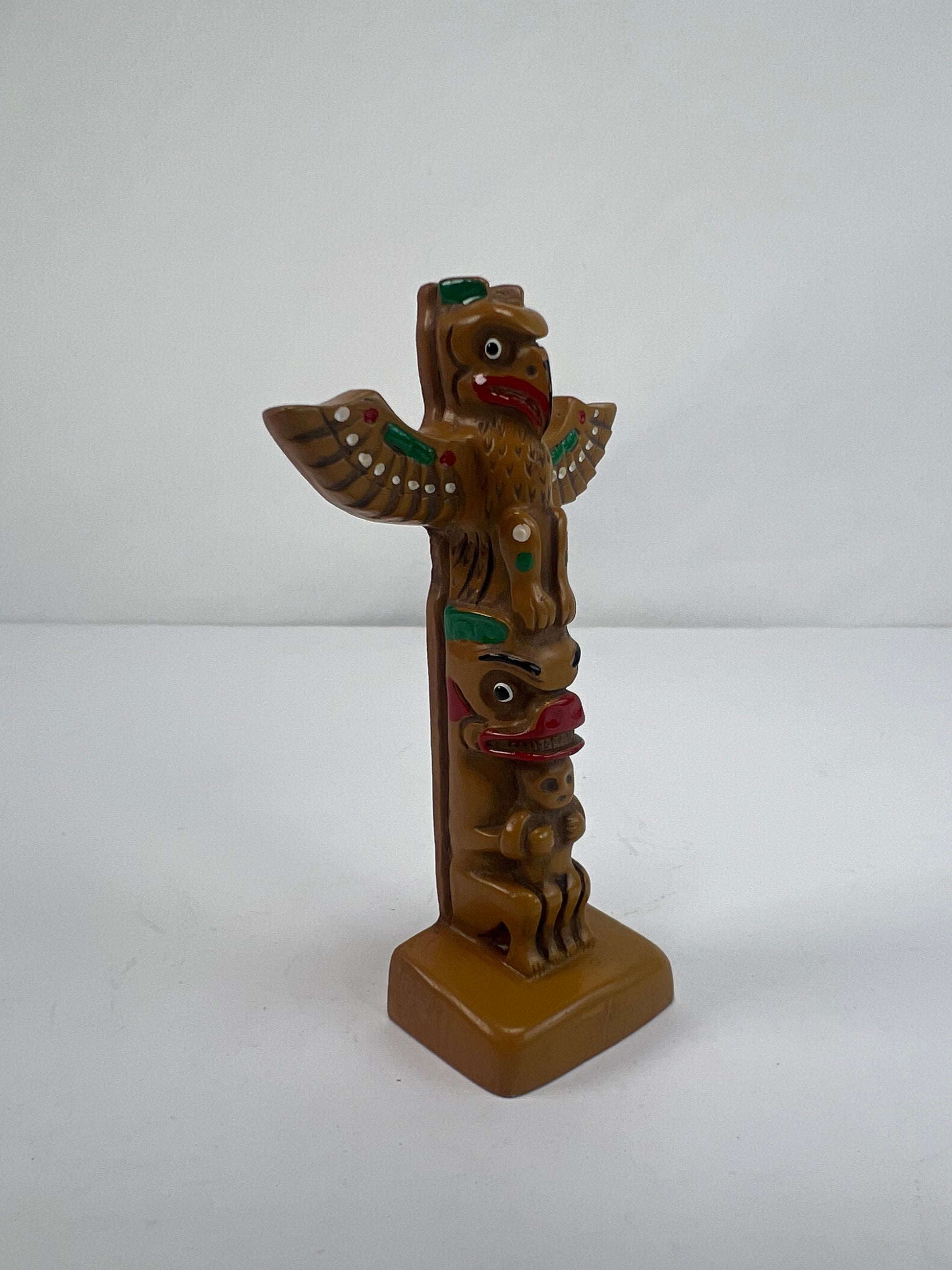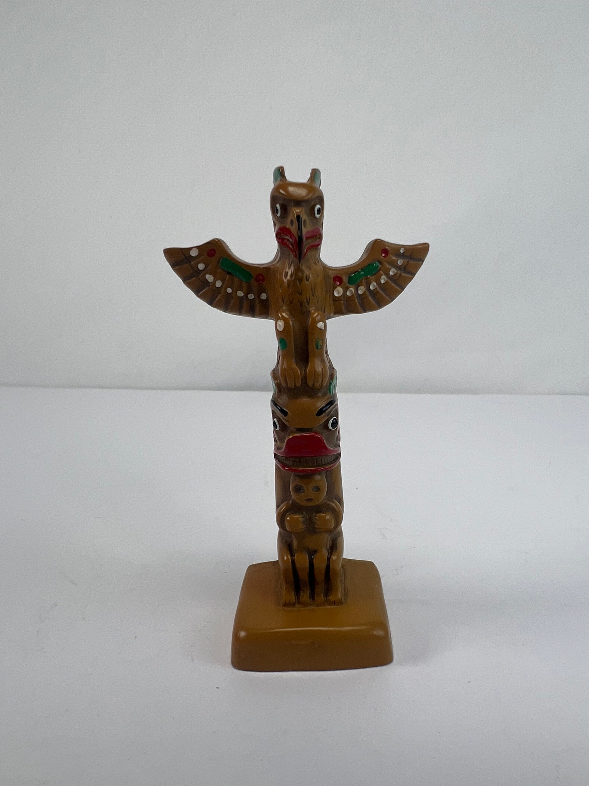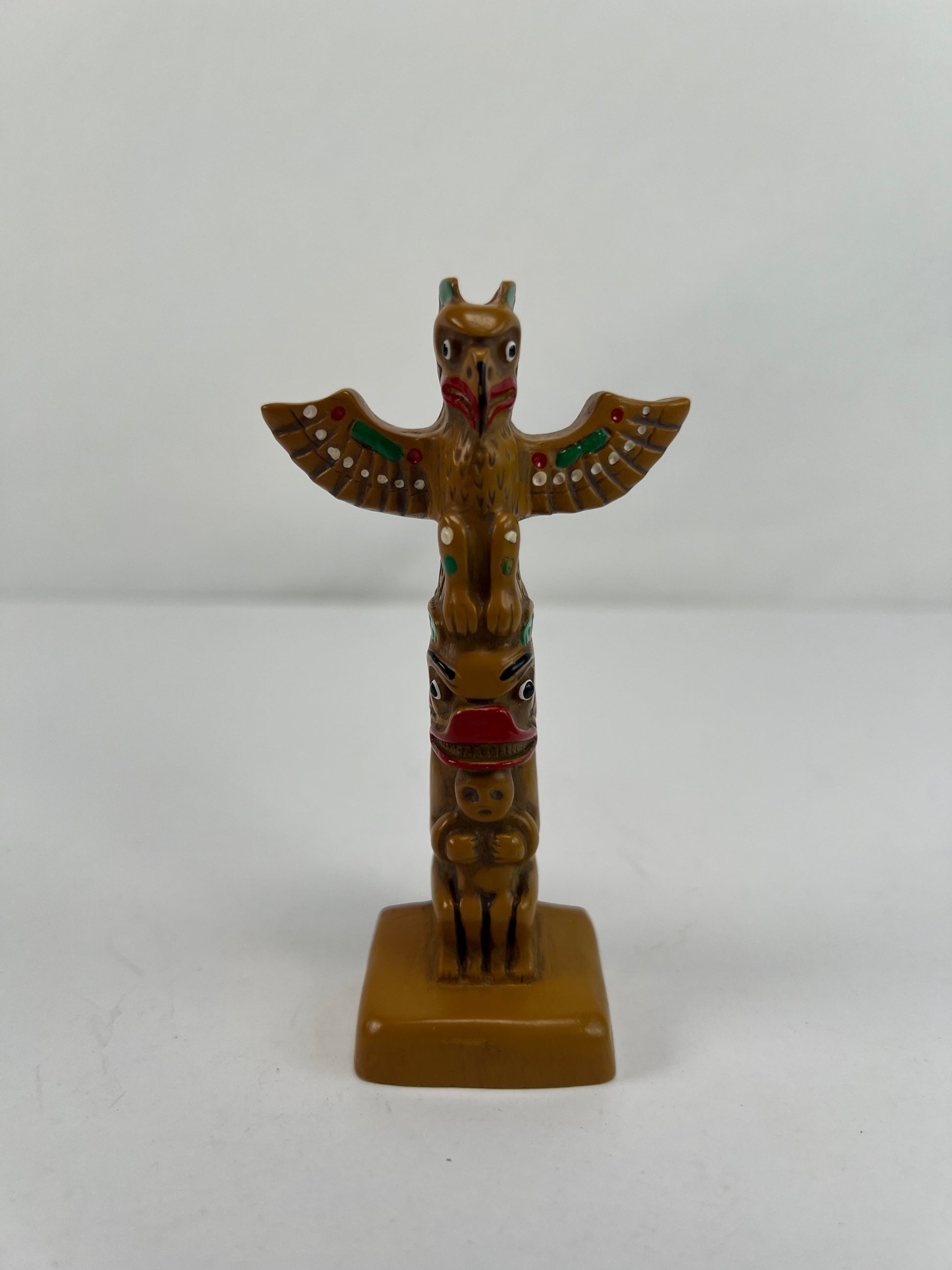 Vintage Souvenir - Thunderbird Totem Pole Figurine - Resin and Wood - 3 7/8"