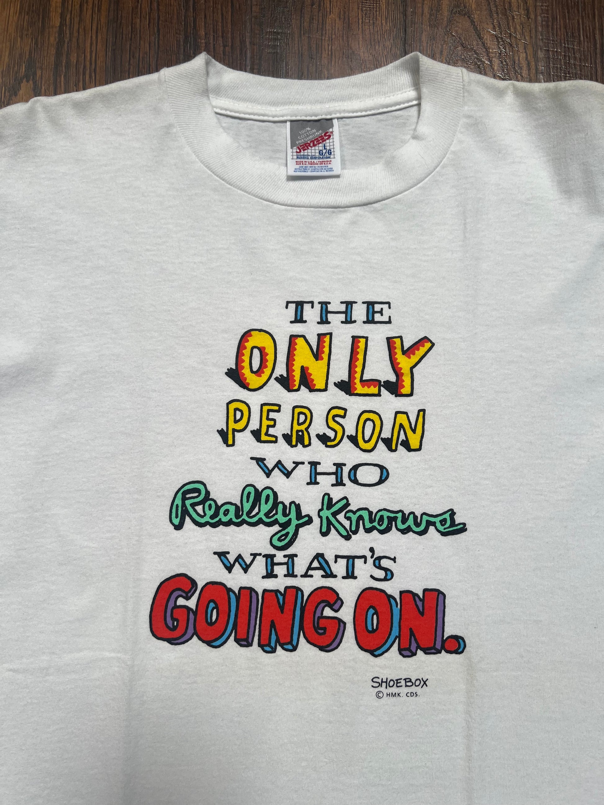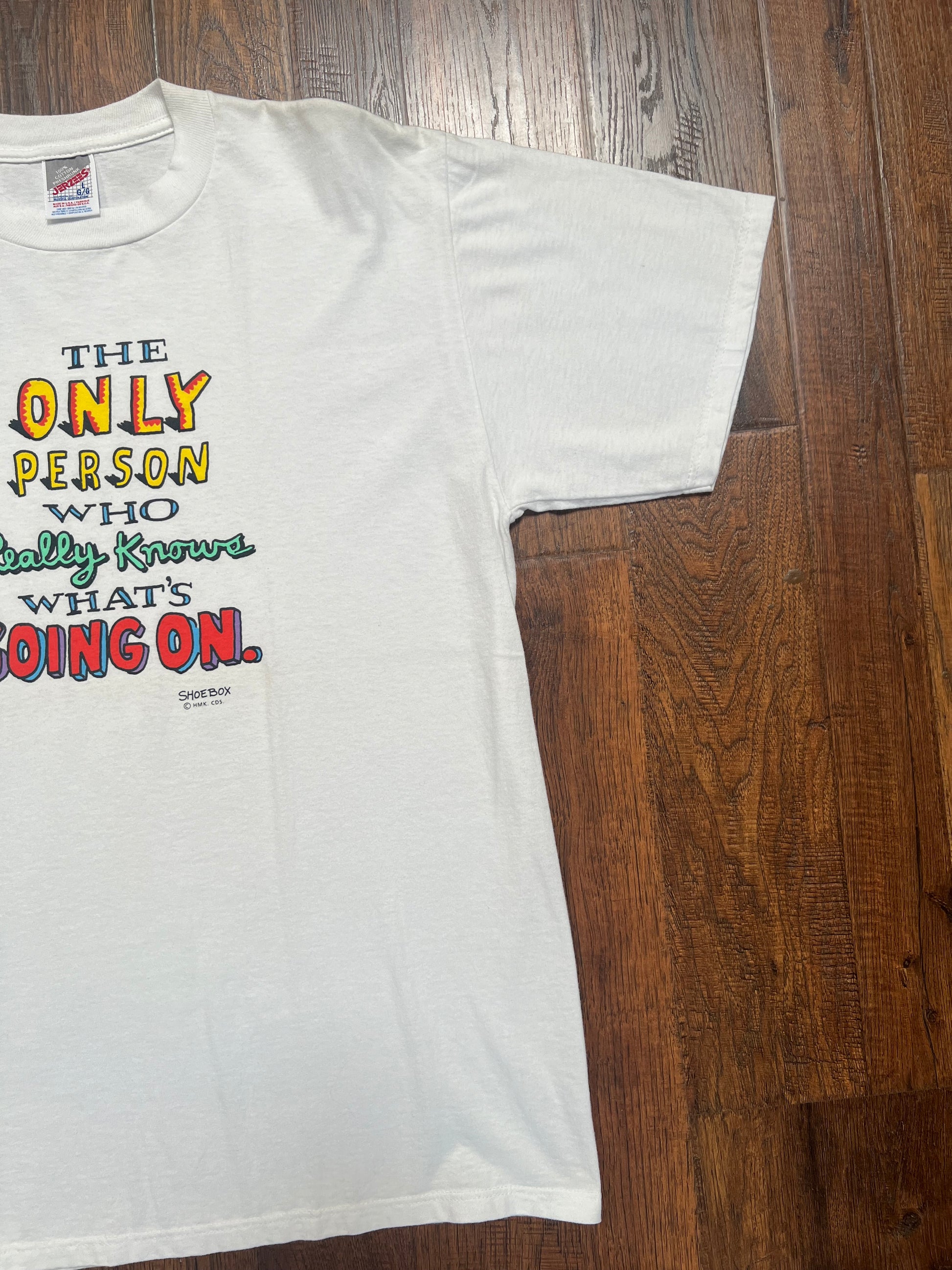 Vintage T-Shirt - Shoebox by Hallmark Co. - The Only Person Who Really Knows - Jerzees - Large