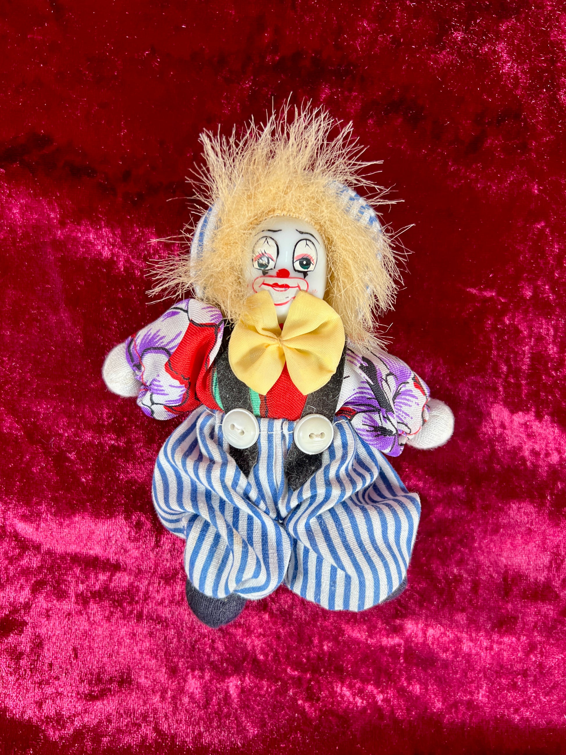 Vintage Toy - Miniature Doll - Clown with a Porcelain Painted Face - 4.75"
