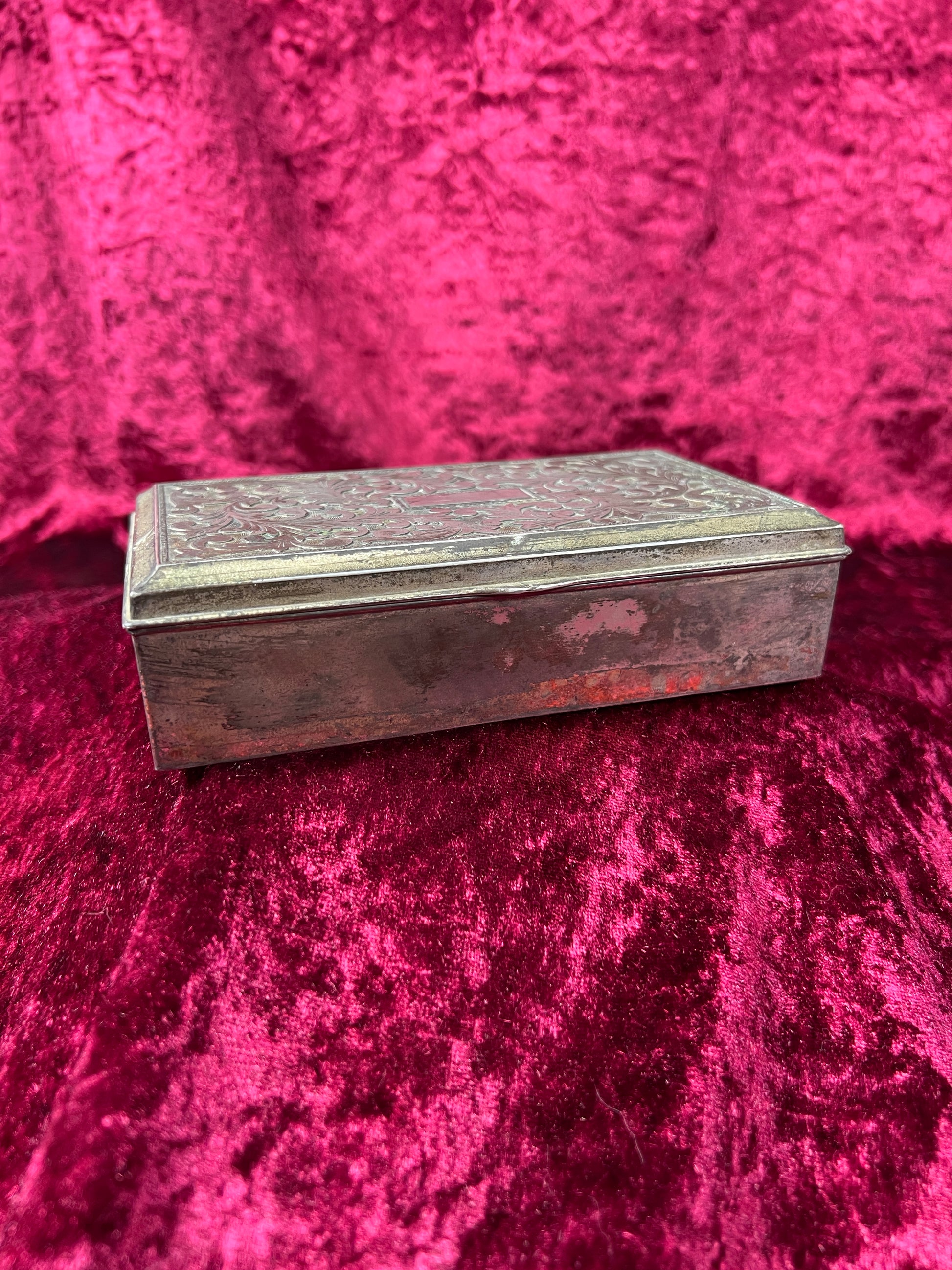 Vintage Trinket Box - Cigarette Box Holder - Pewter - Ornate Scroll Filigree