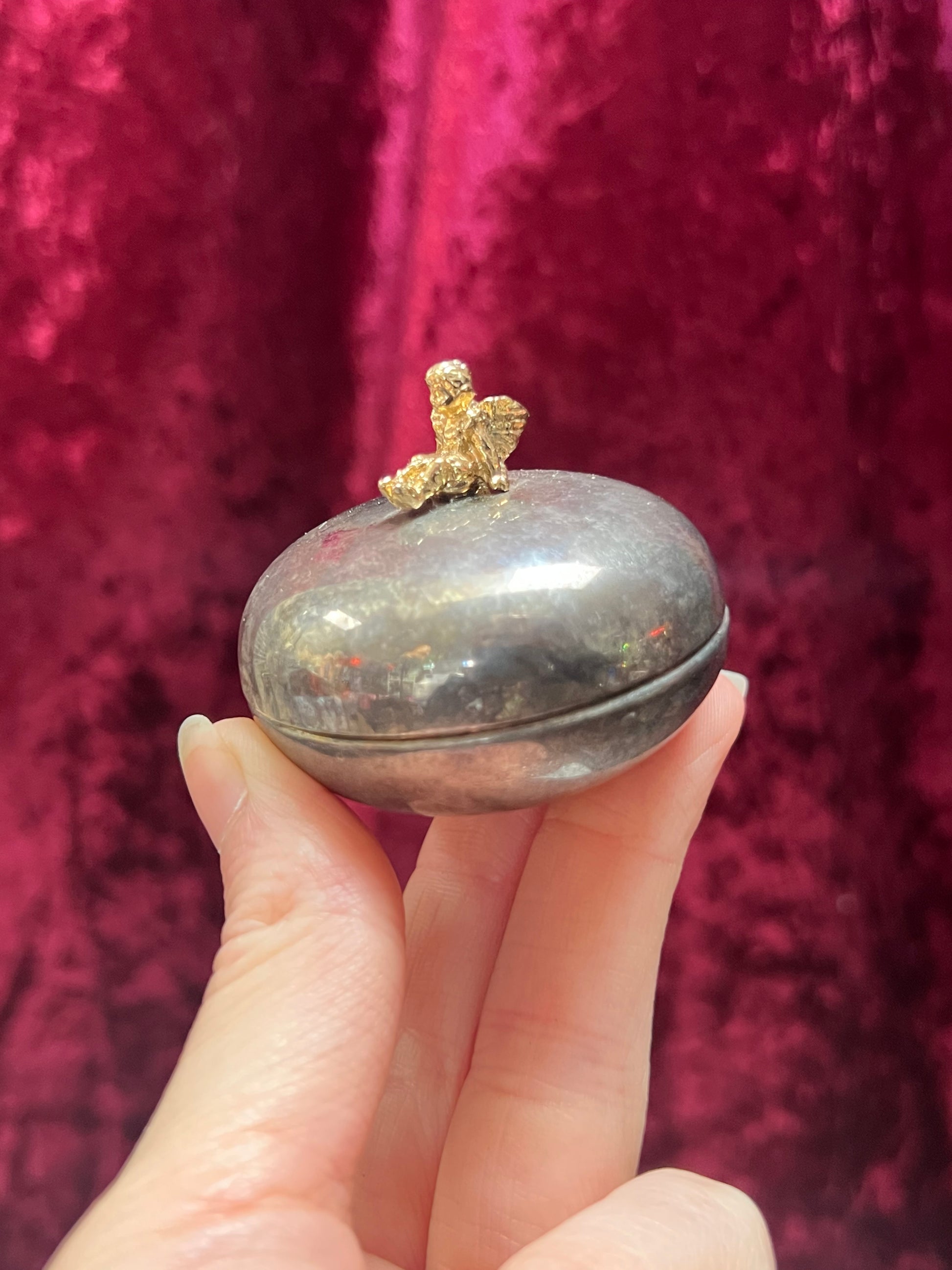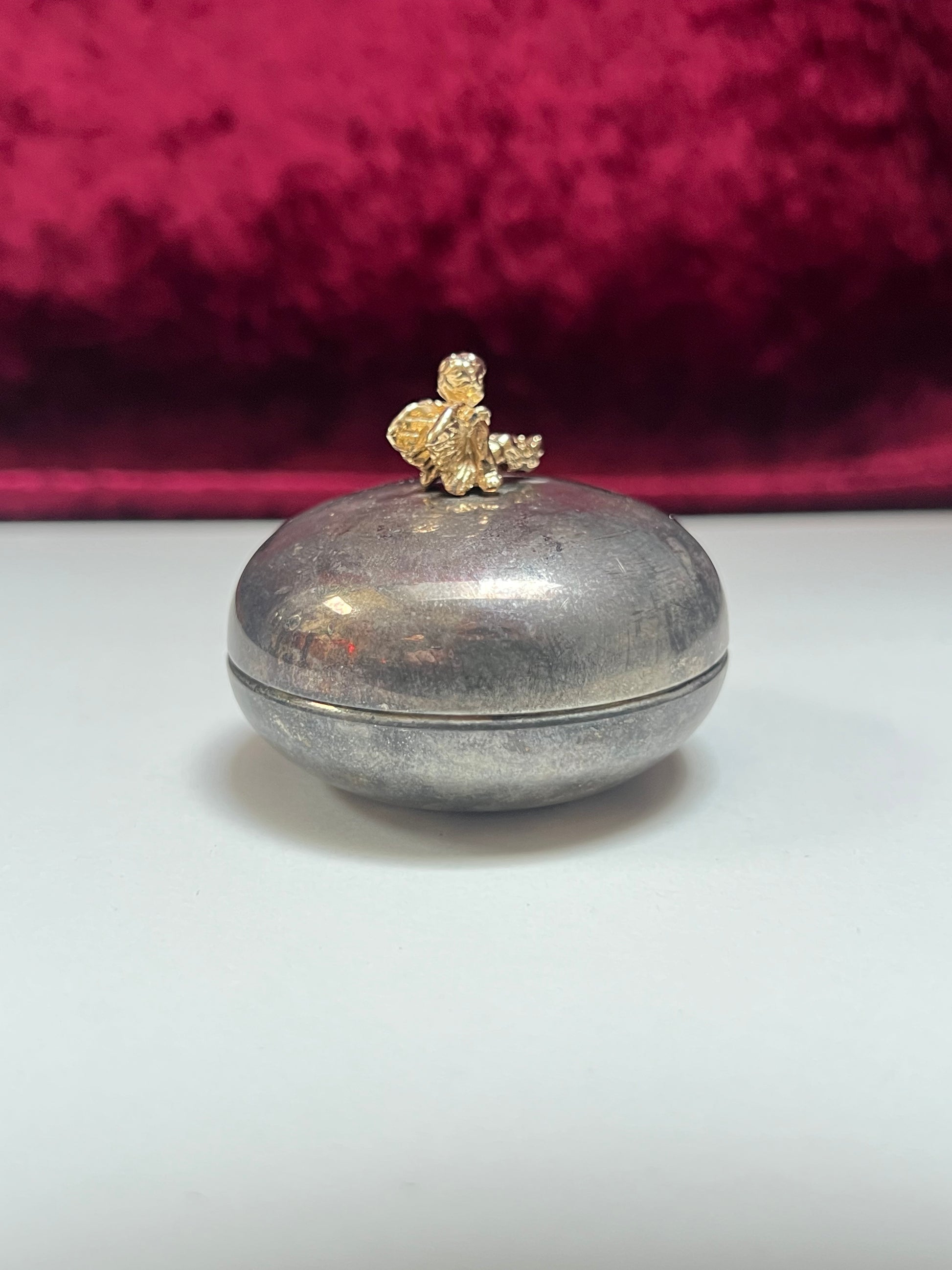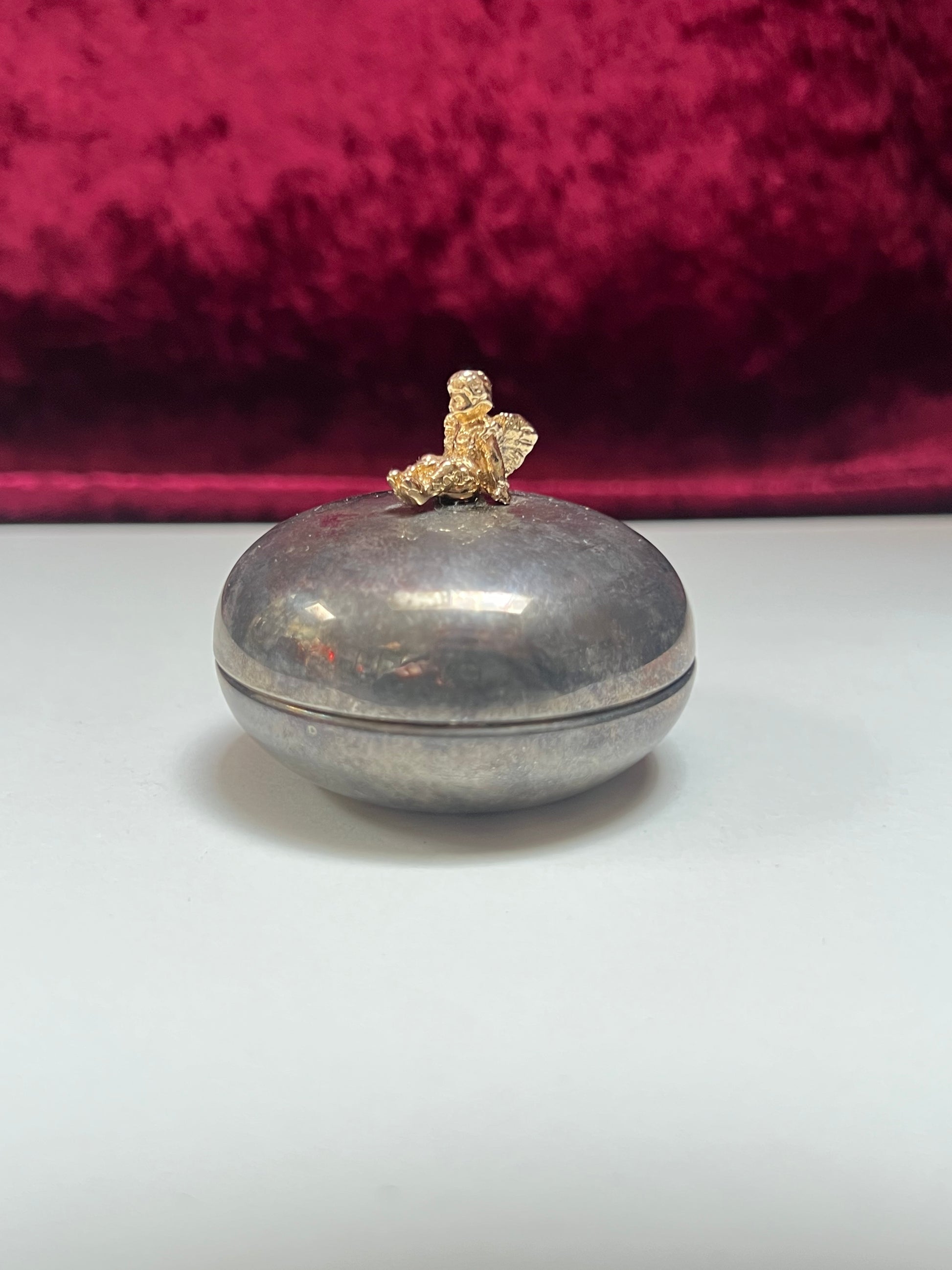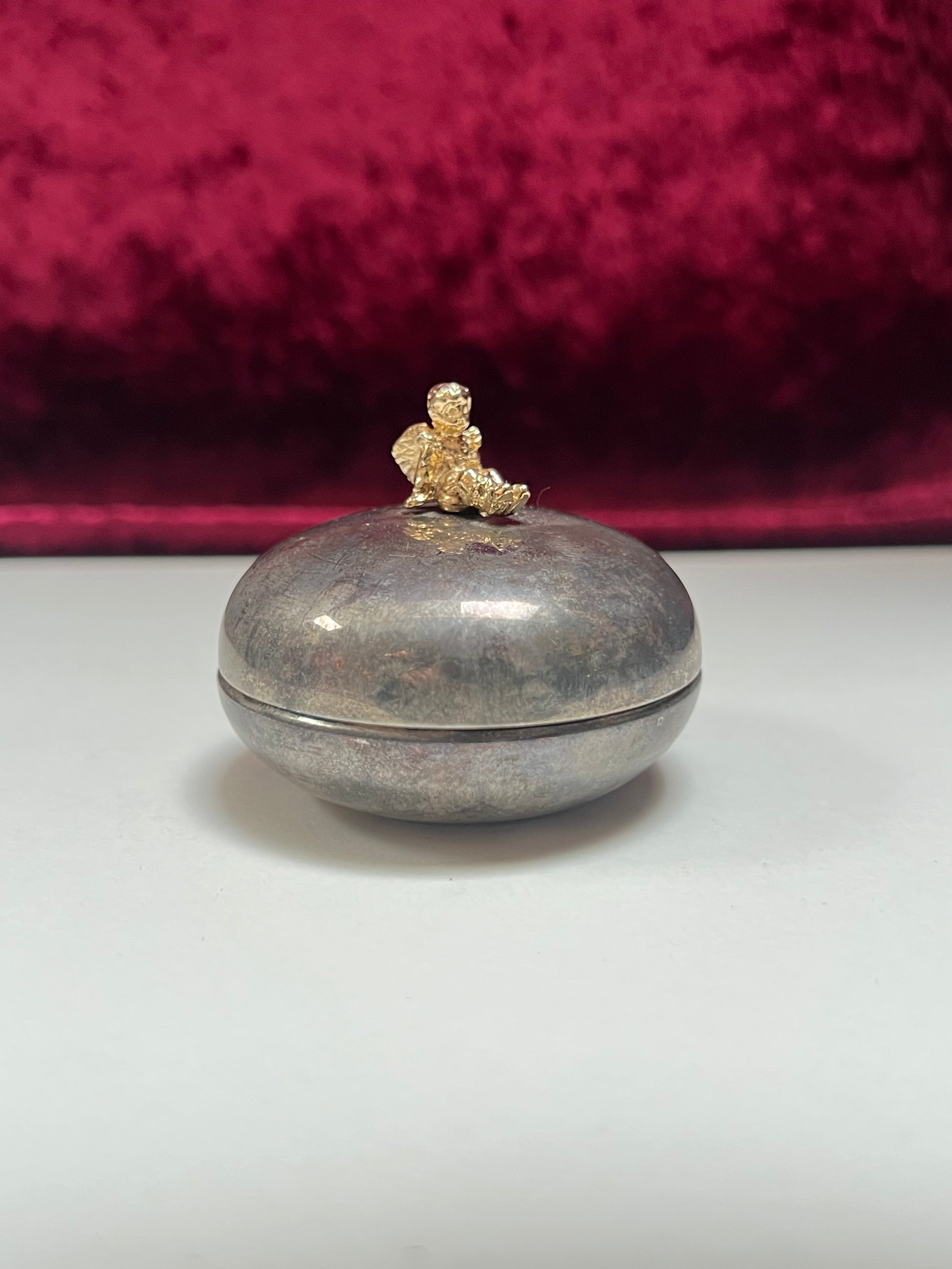 Vintage Trinket Box - Silver Plated Baby Teeth Keepsake - Gold Sitting Cherub