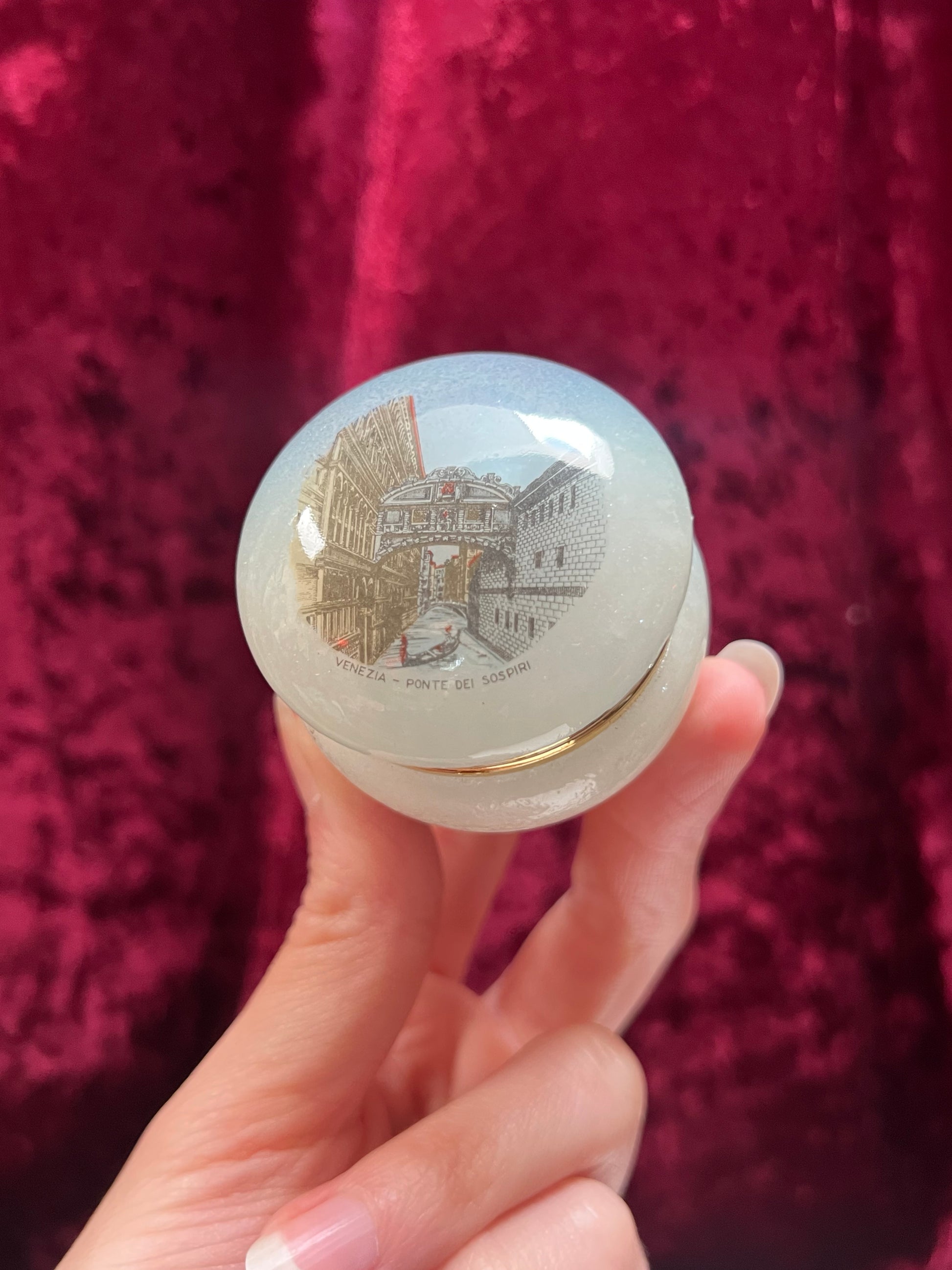 Vintage Trinket Box - Souvenir Pill / Snuff Box - Venezia Ponte Dei Sospiri Scene - Alabaster Stone