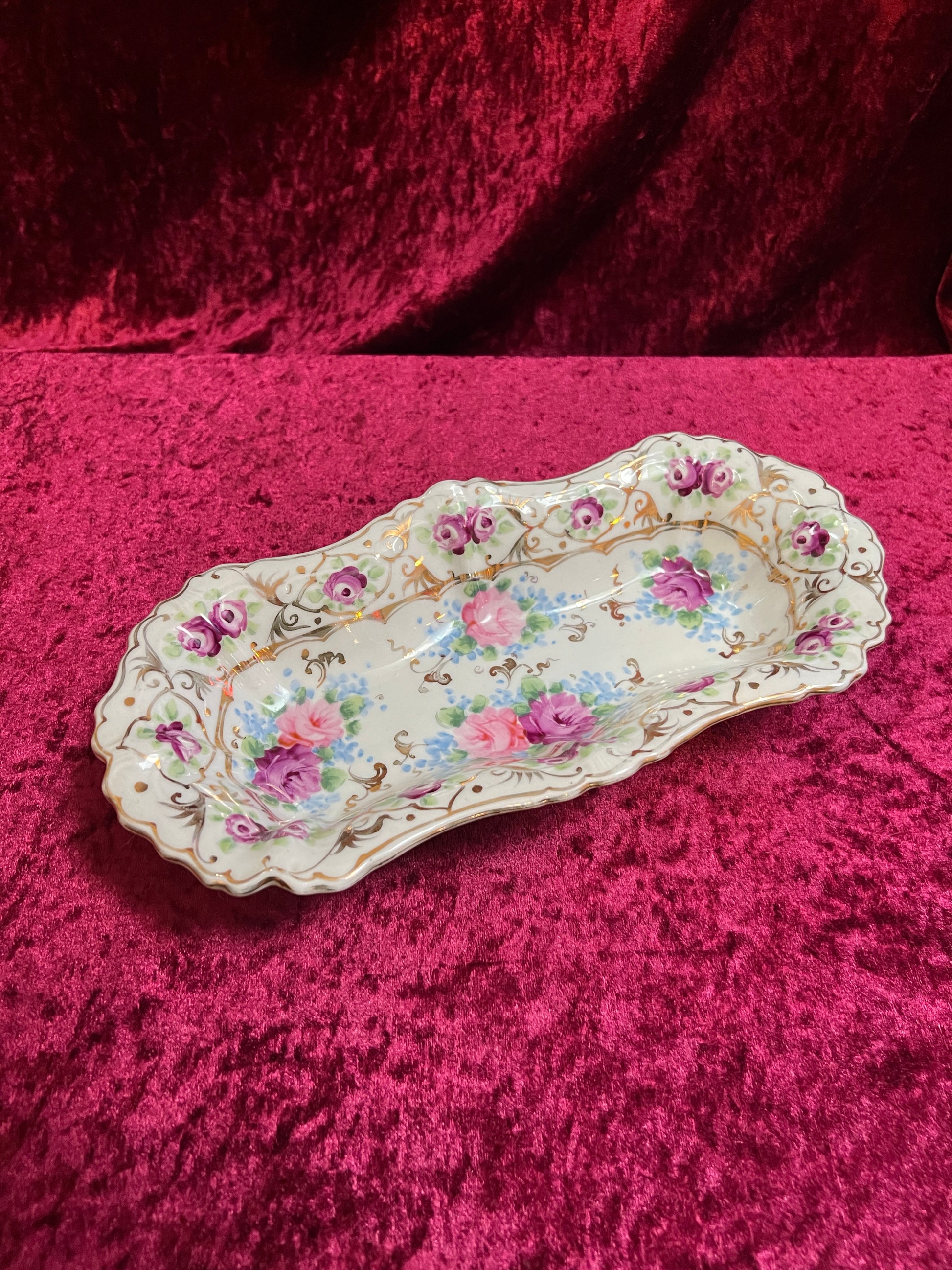 Vintage Trinket Dish - Hand Painted Porcelain - Pink and Purple English Roses - Noritake
