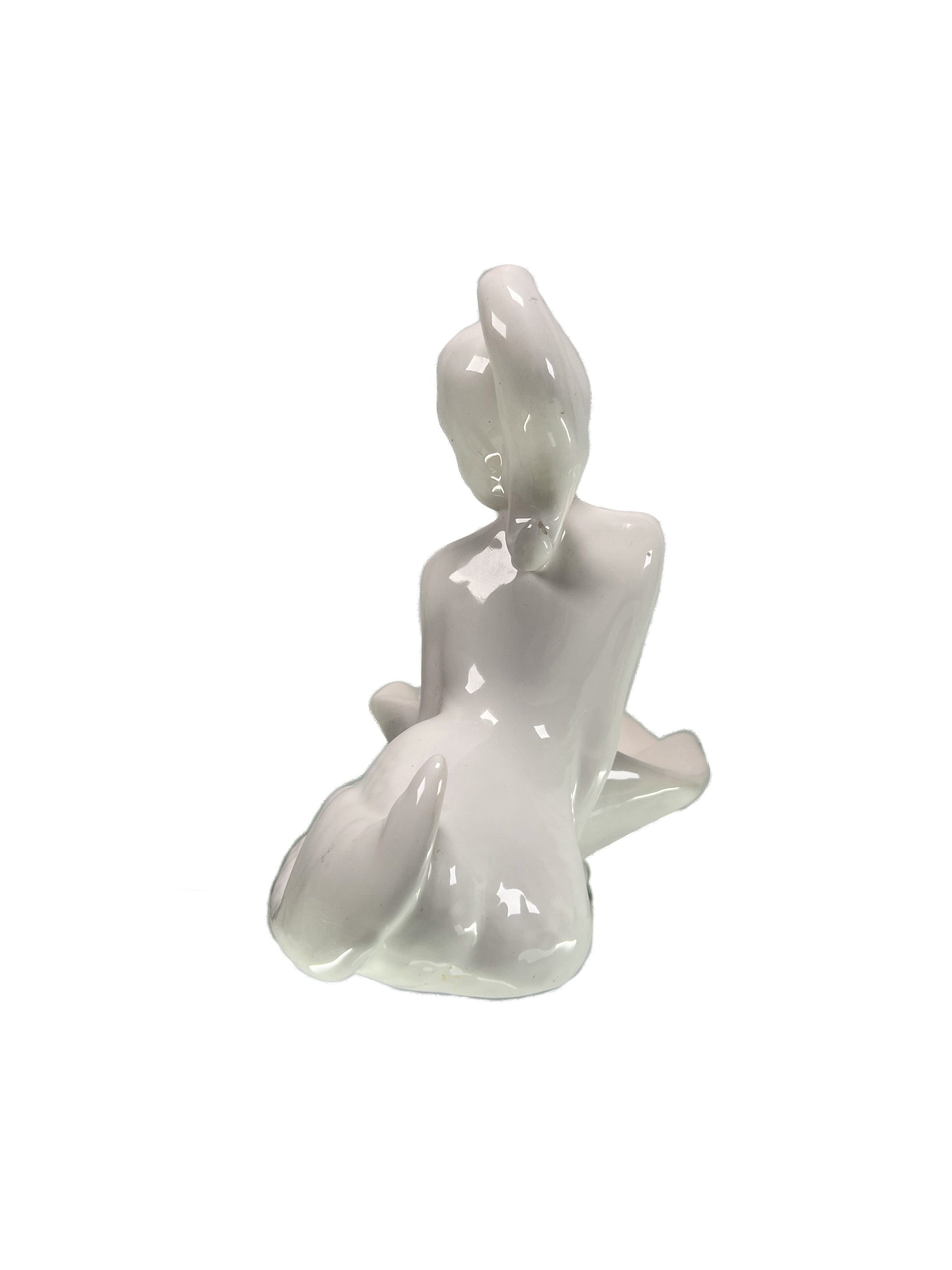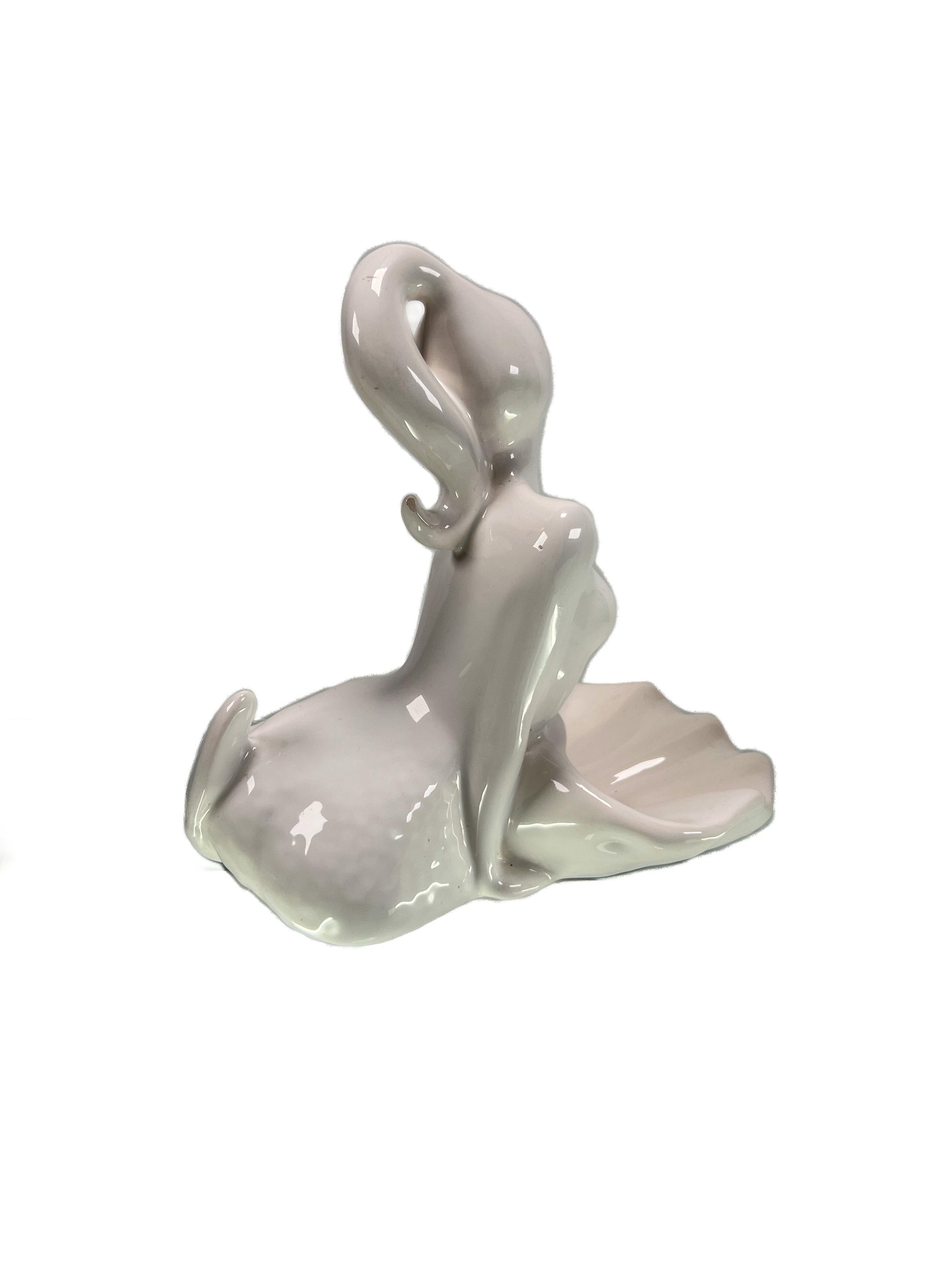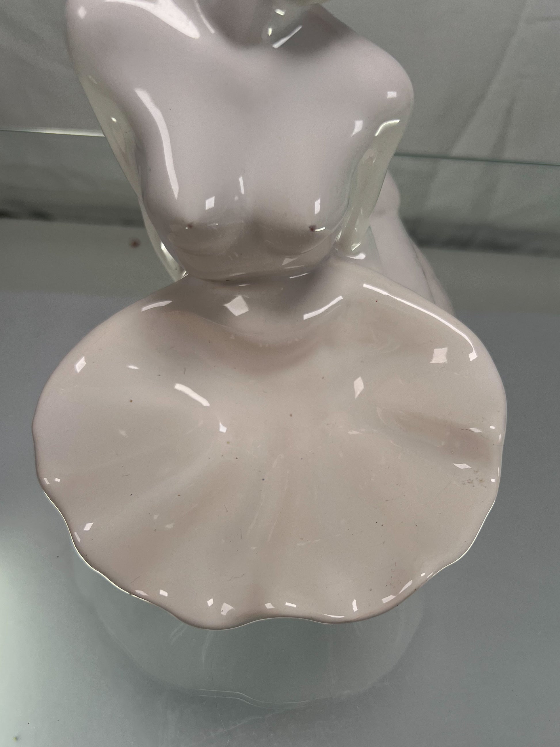 Vintage Trinket Dish - Nude Mermaid Holding a Shell - White - 1977