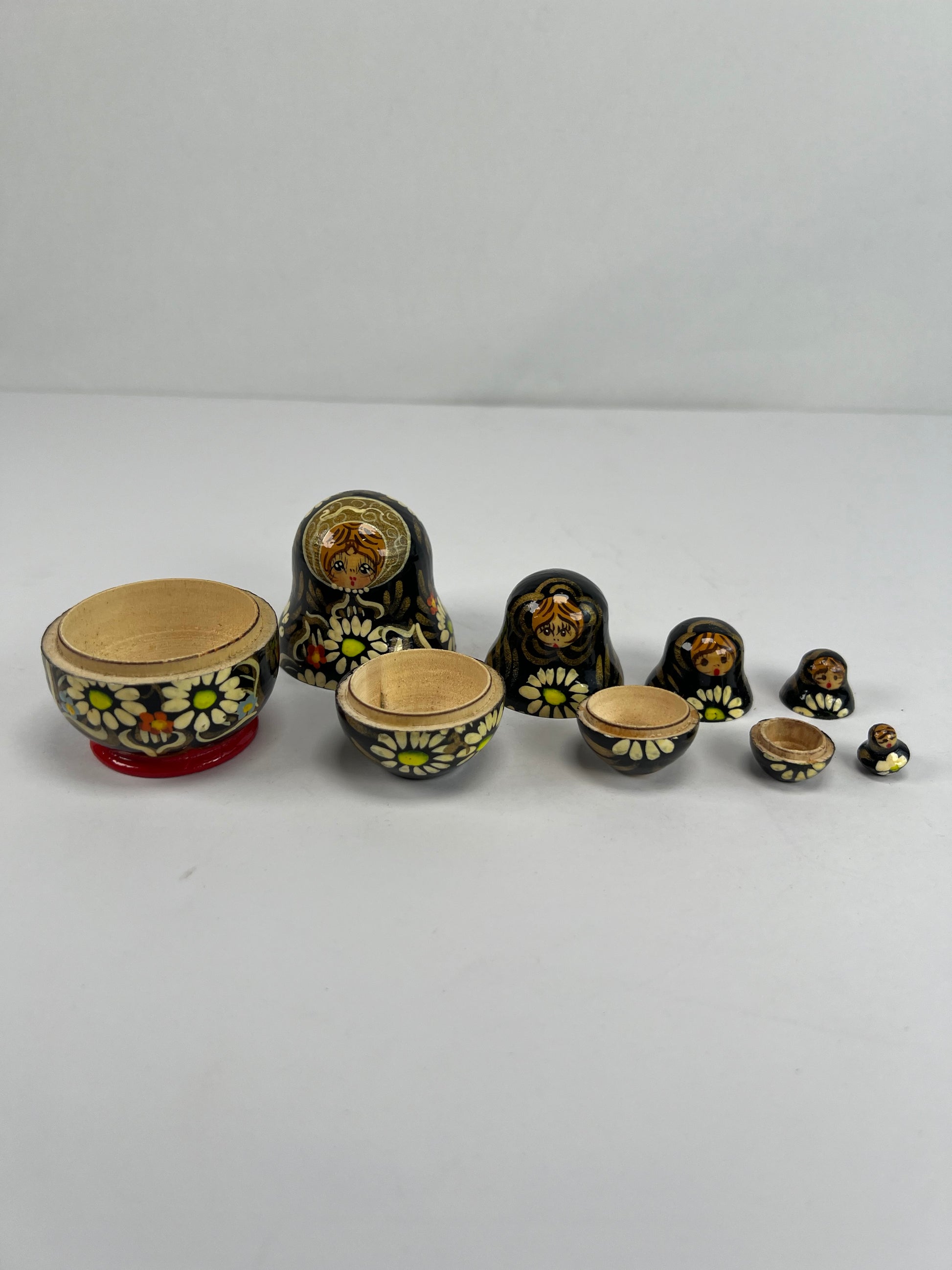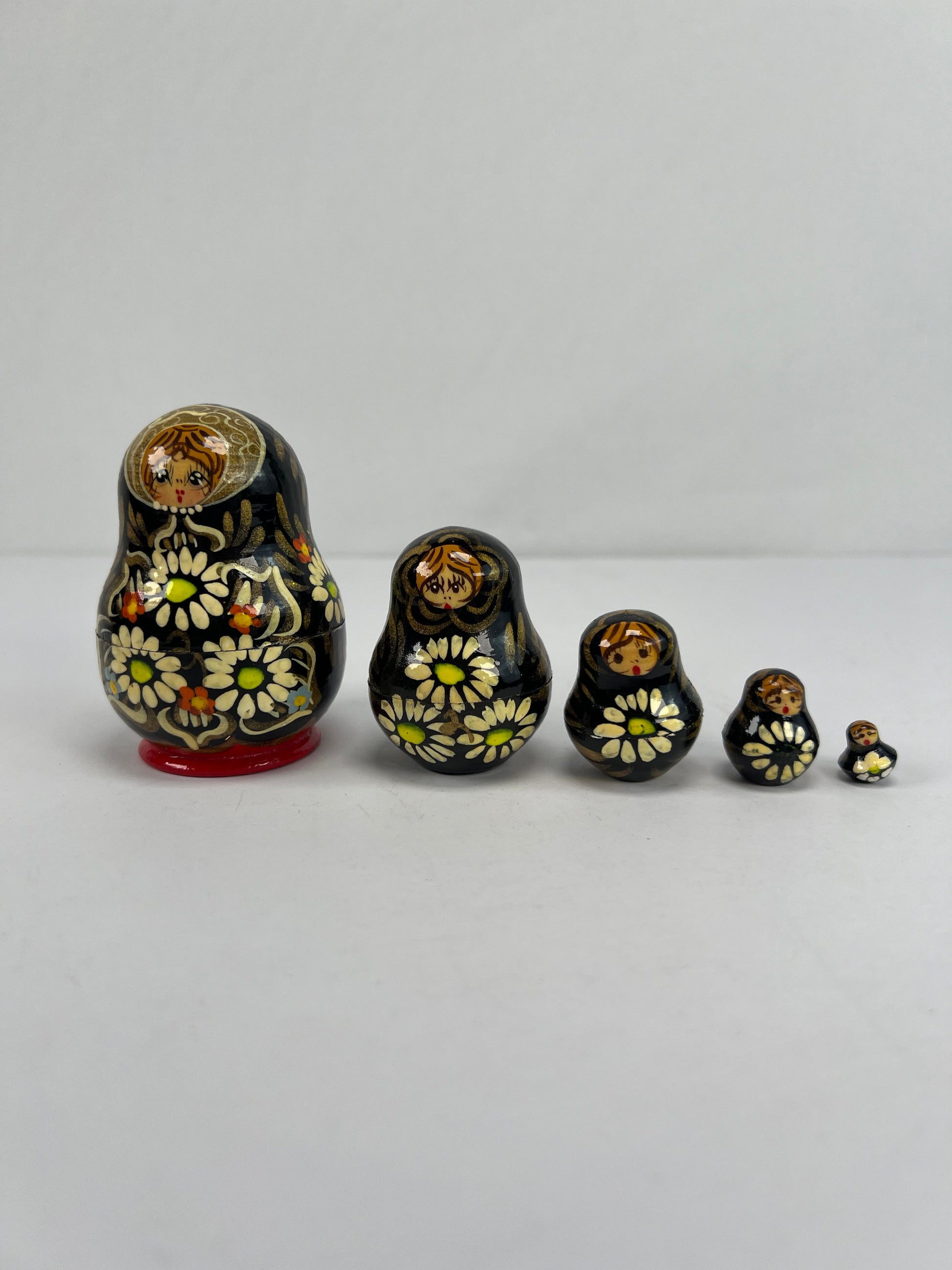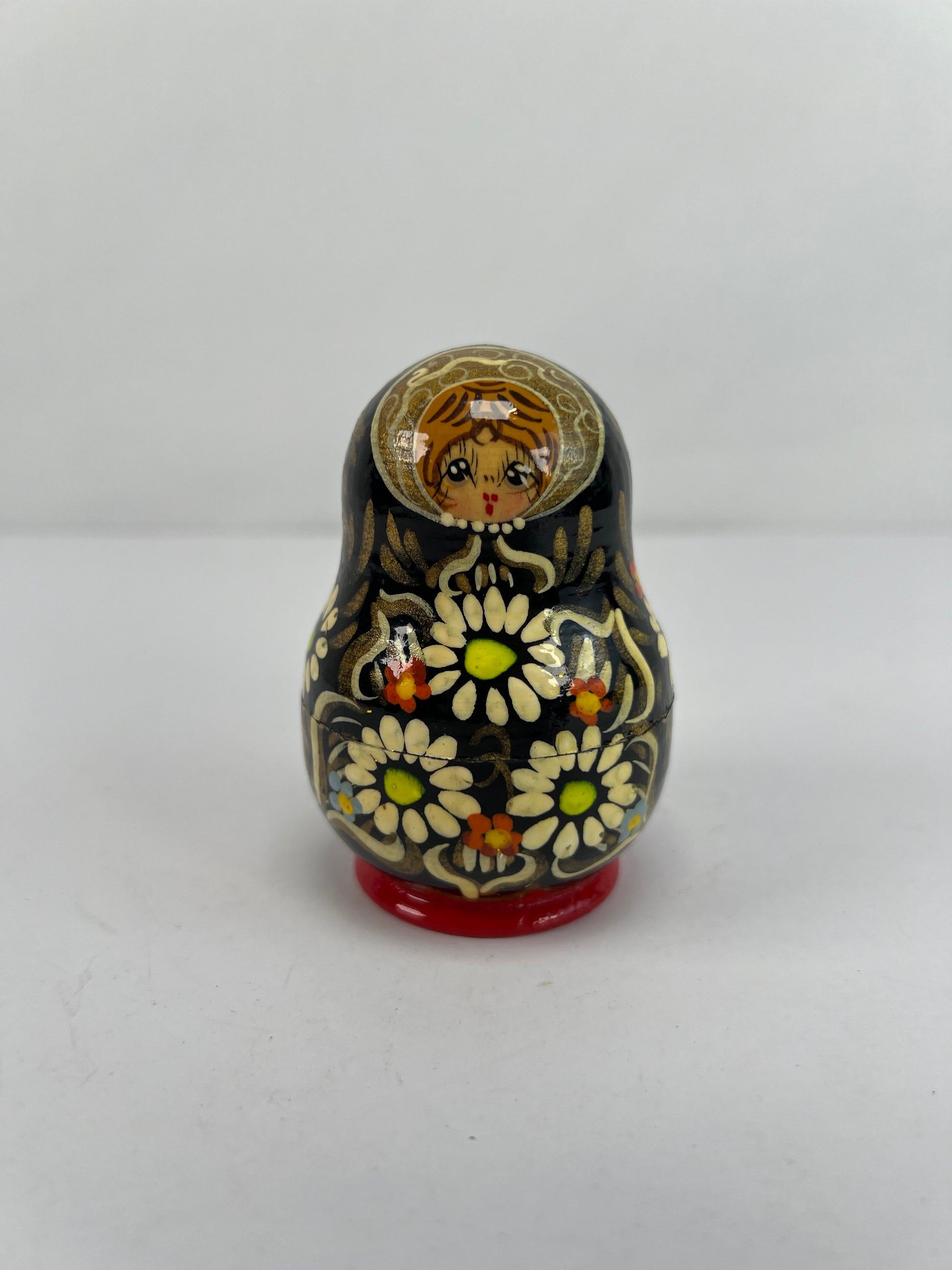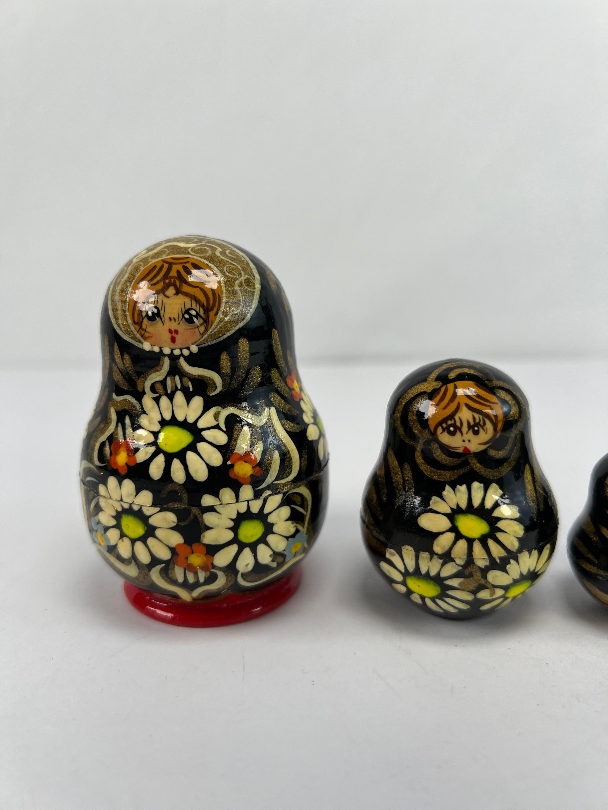 Vintage Trinkets - Russian Matryoshka Nesting Dolls - Black & Gold - Unsigned