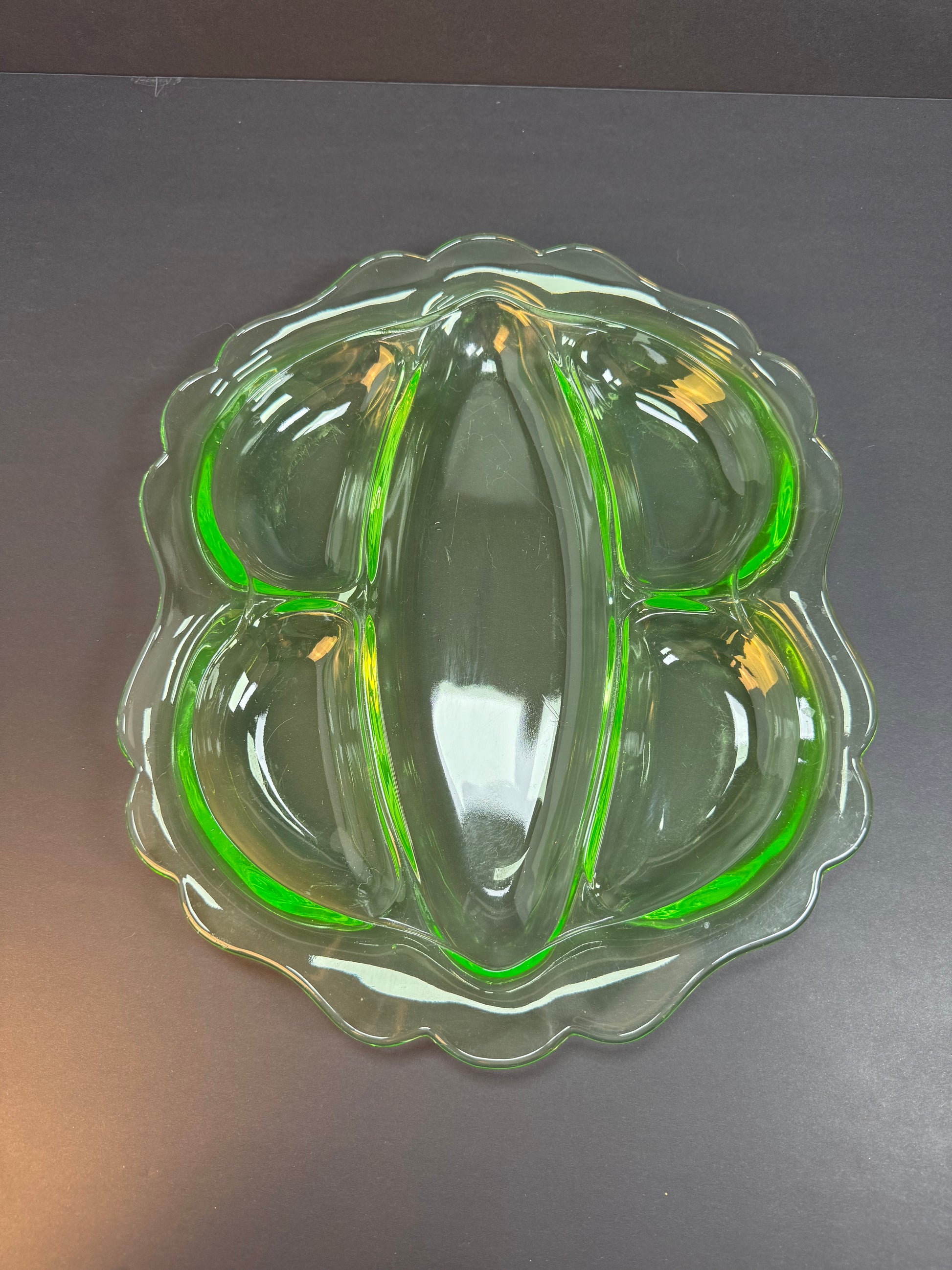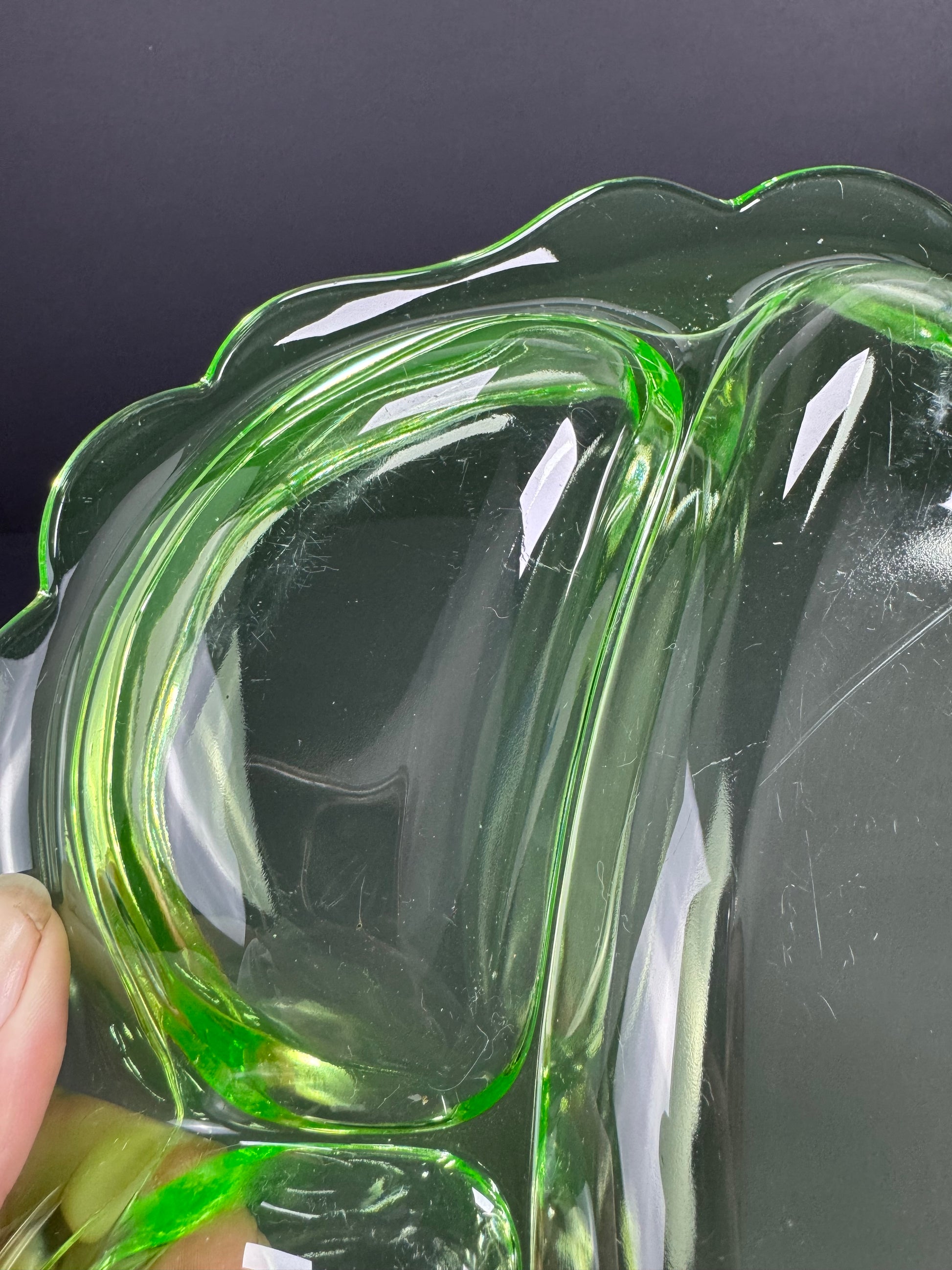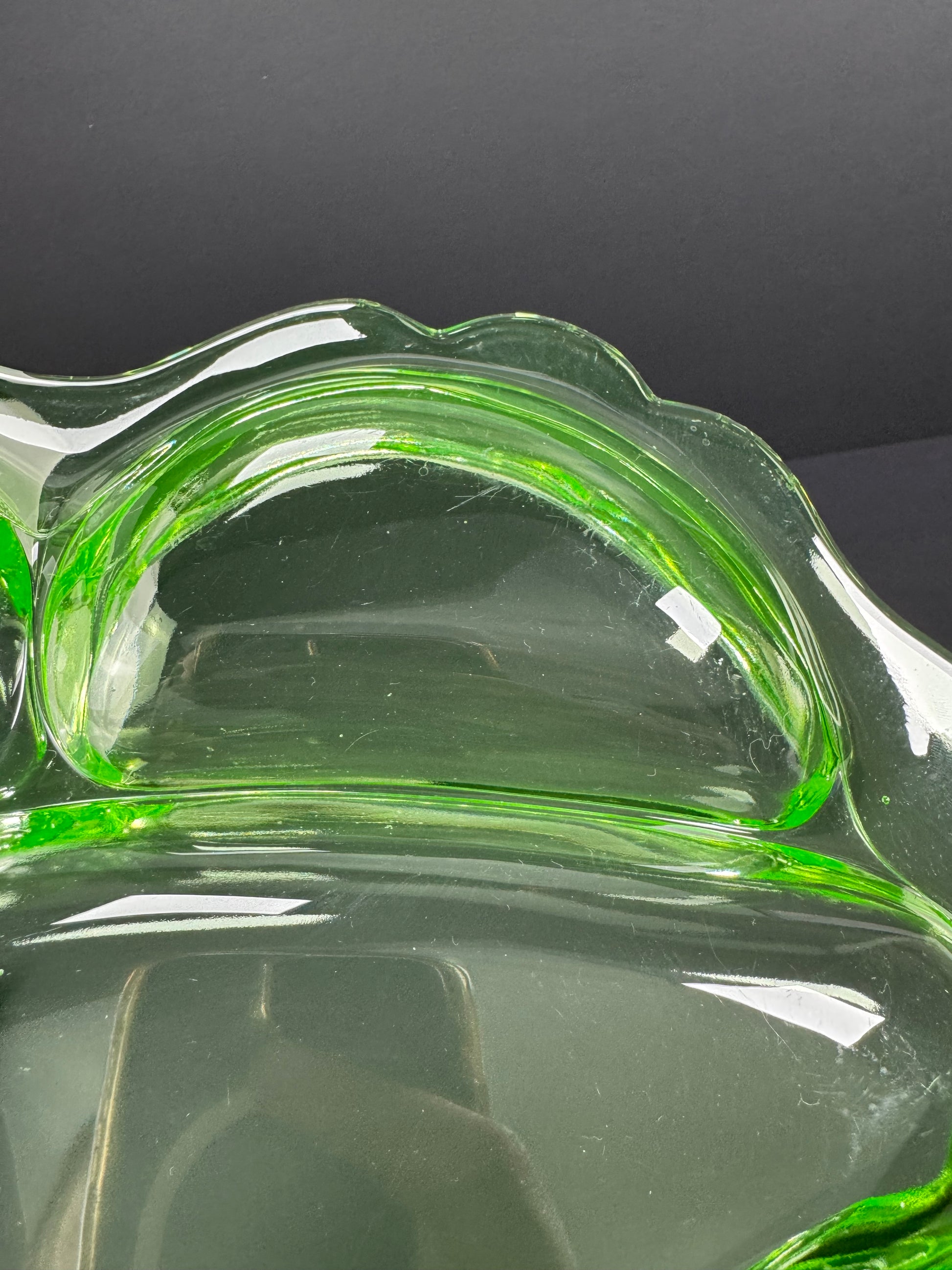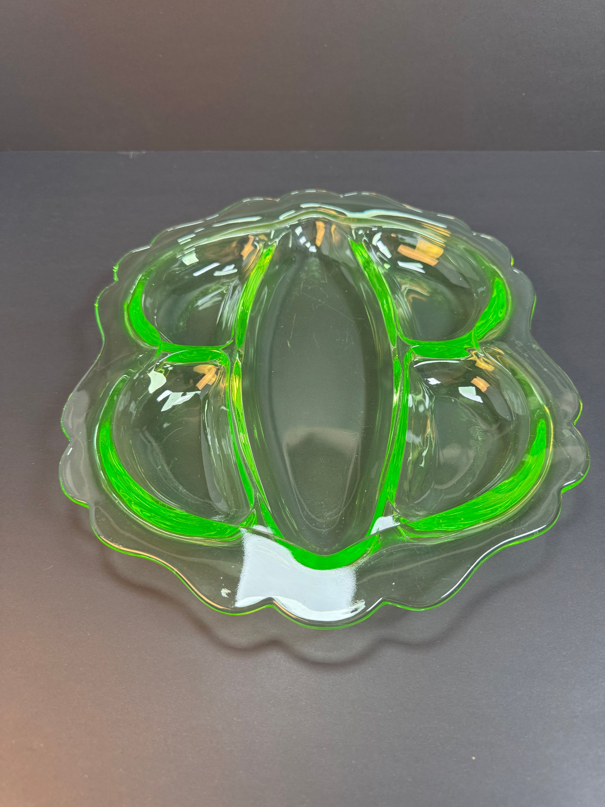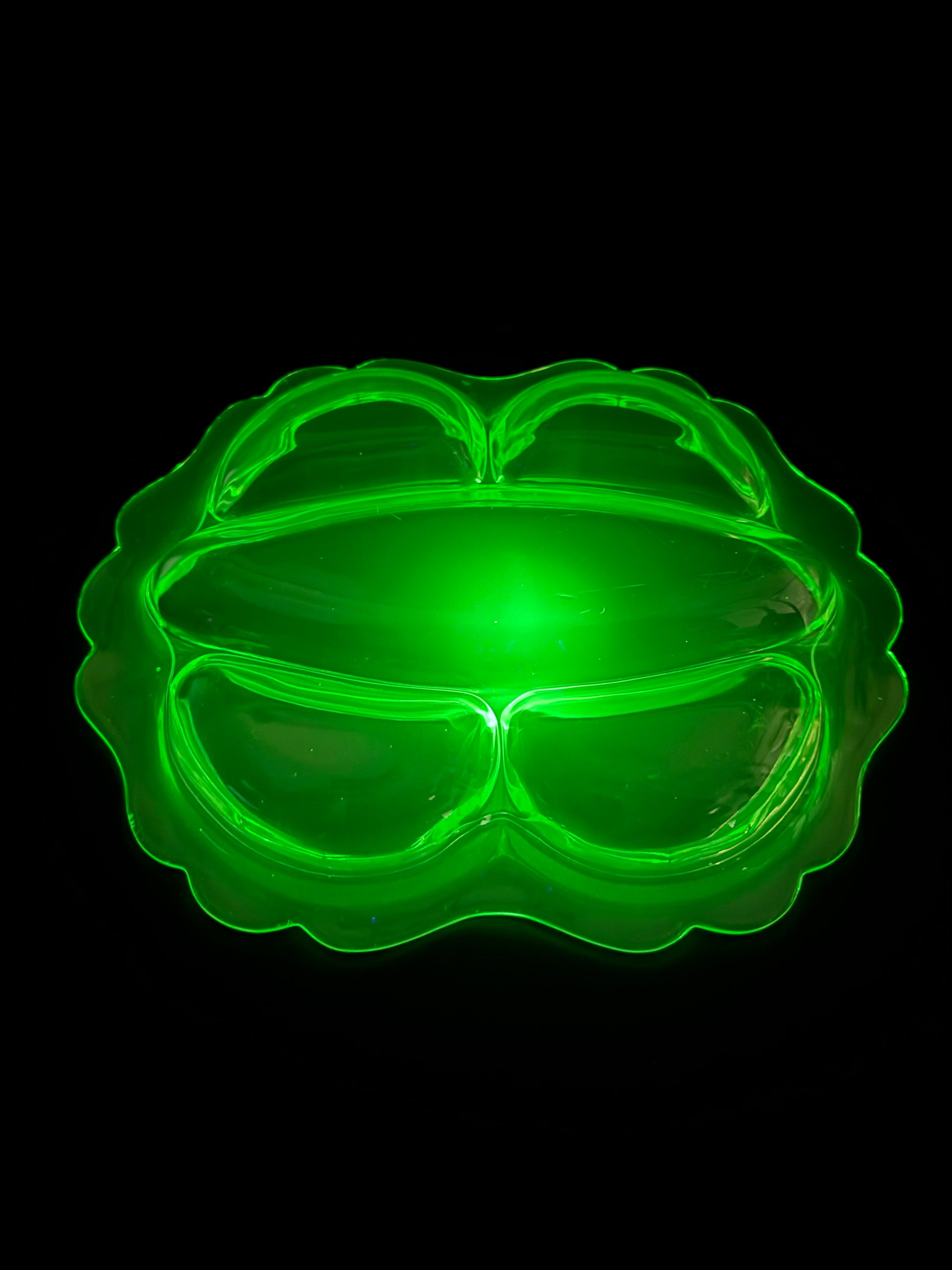Vintage Uranium Glass - Heavy Divided Condiment Dish
