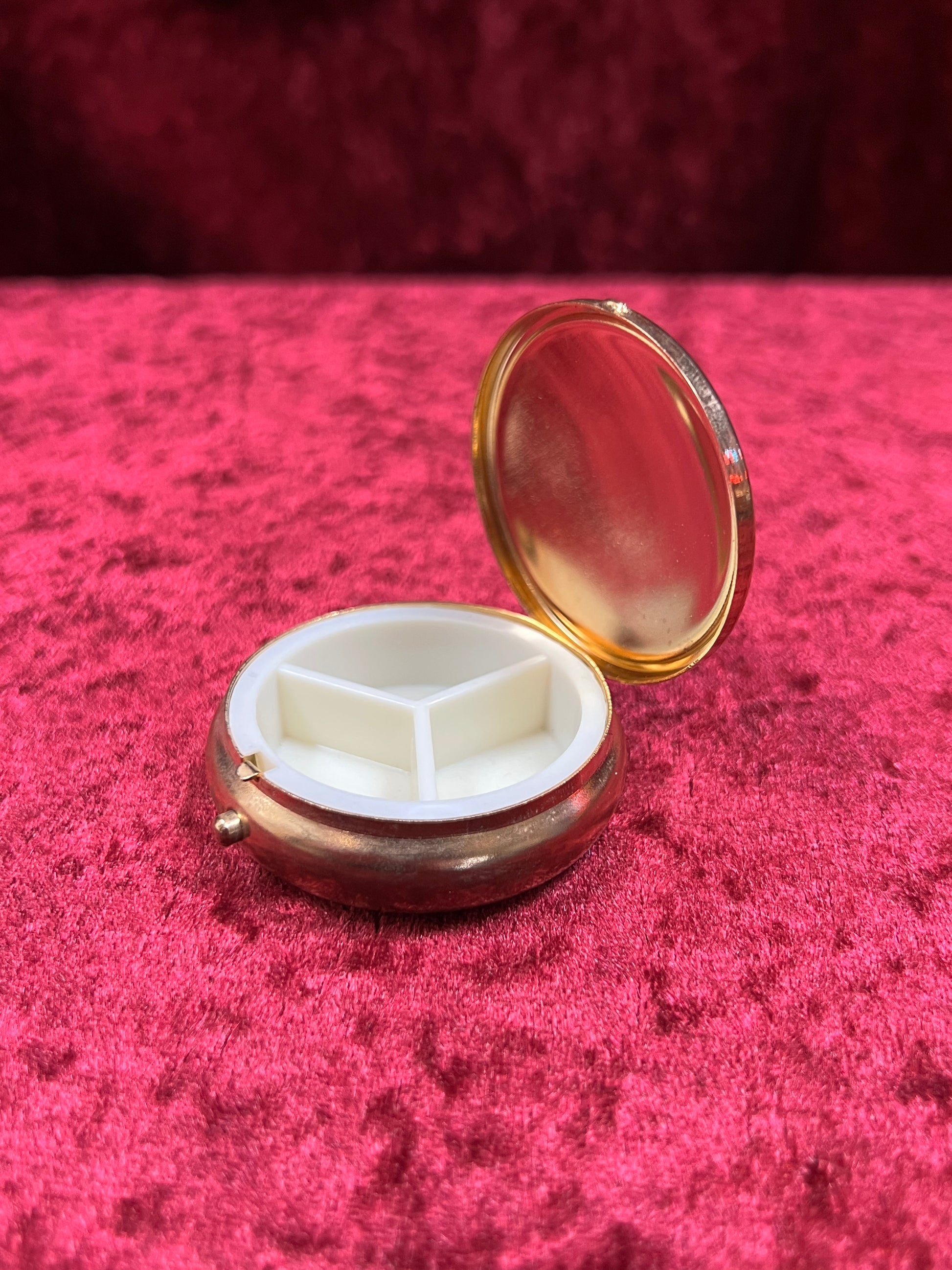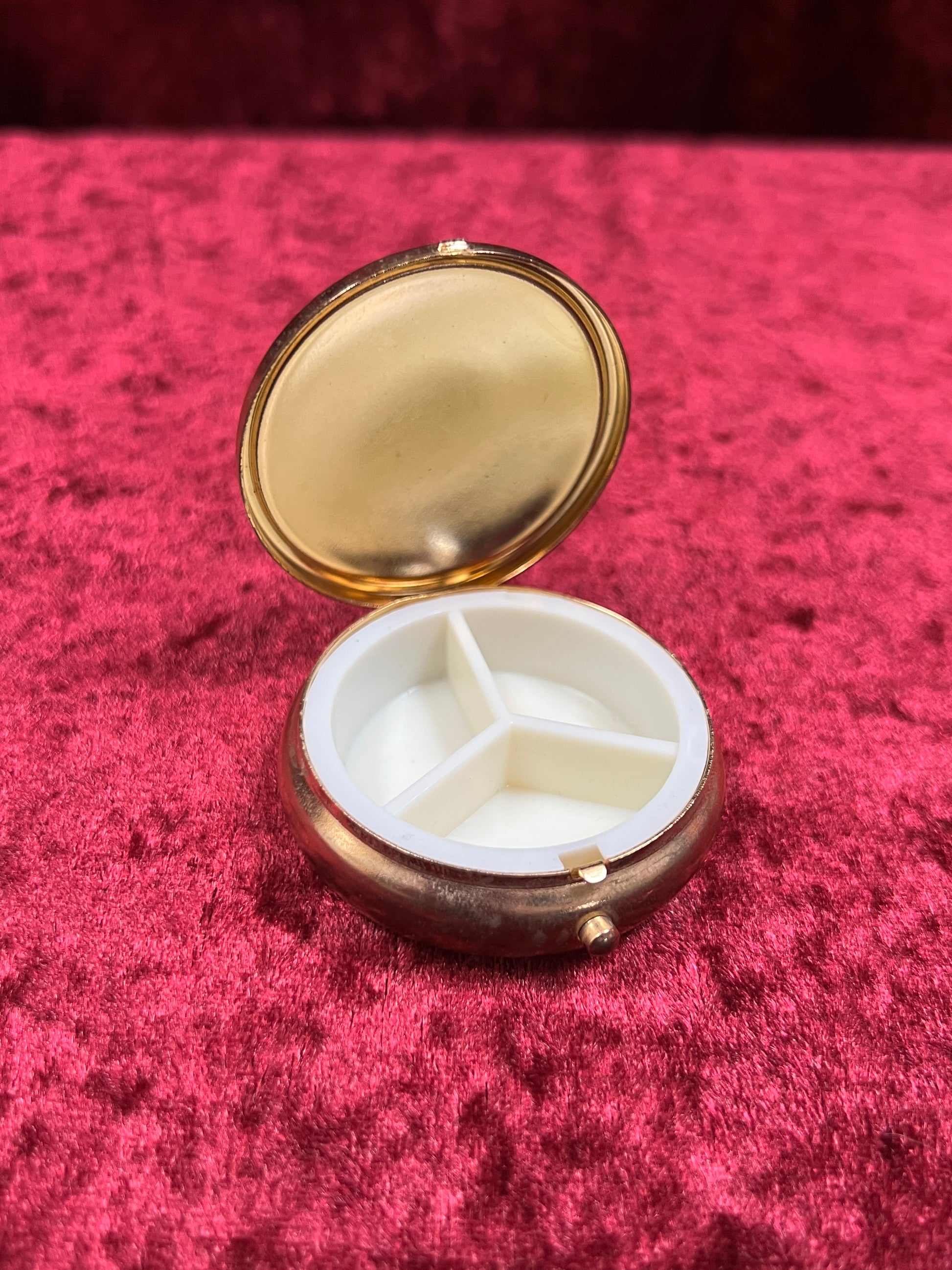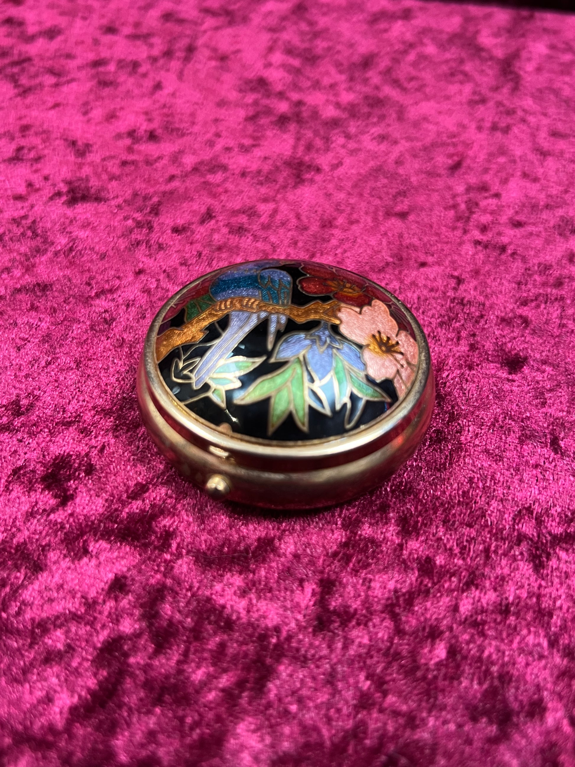 Vintage Vanity - 3-Compartment Pill Box - Cloisonné Lid - Blue Bird In a Flowering Tree