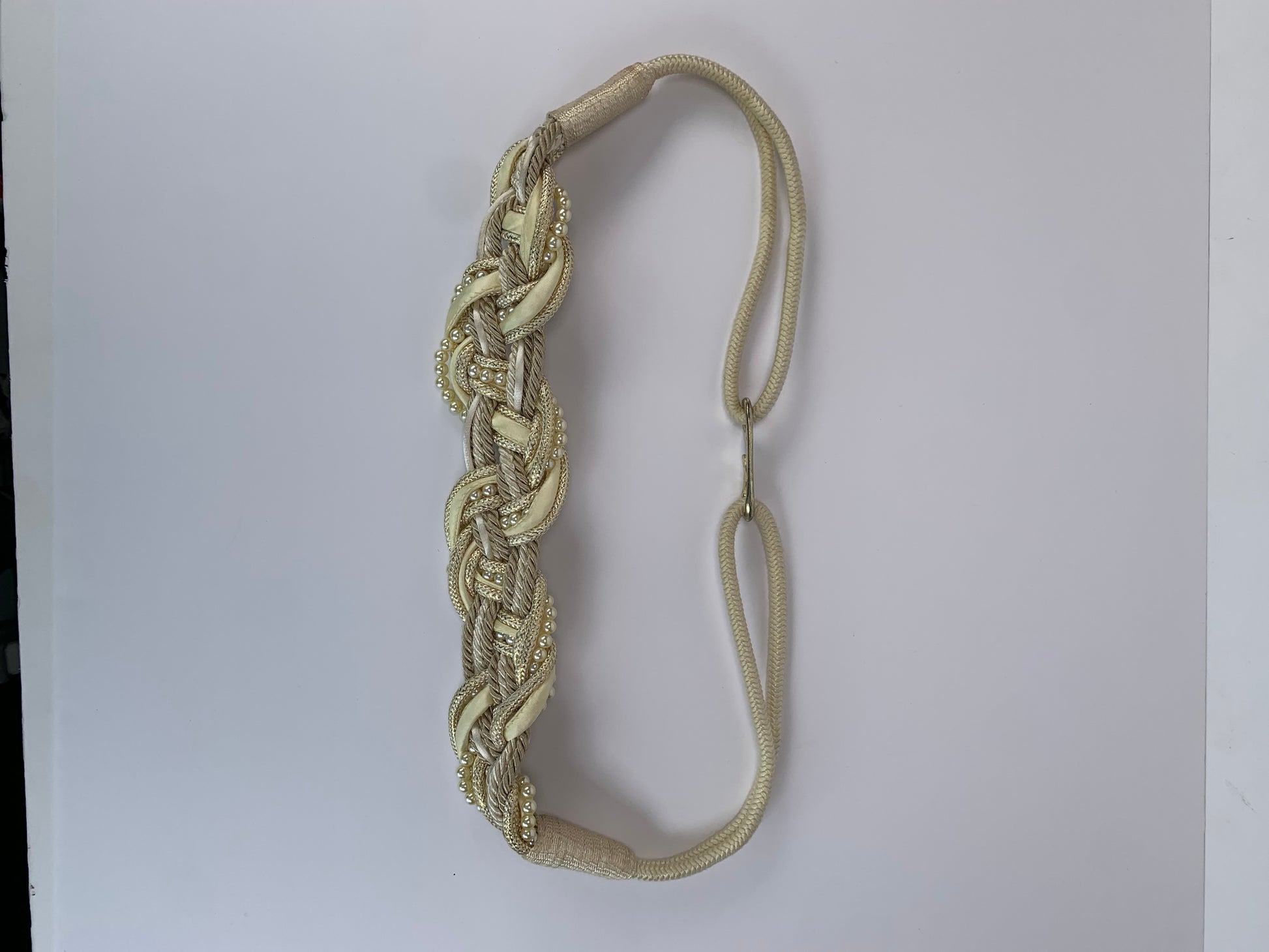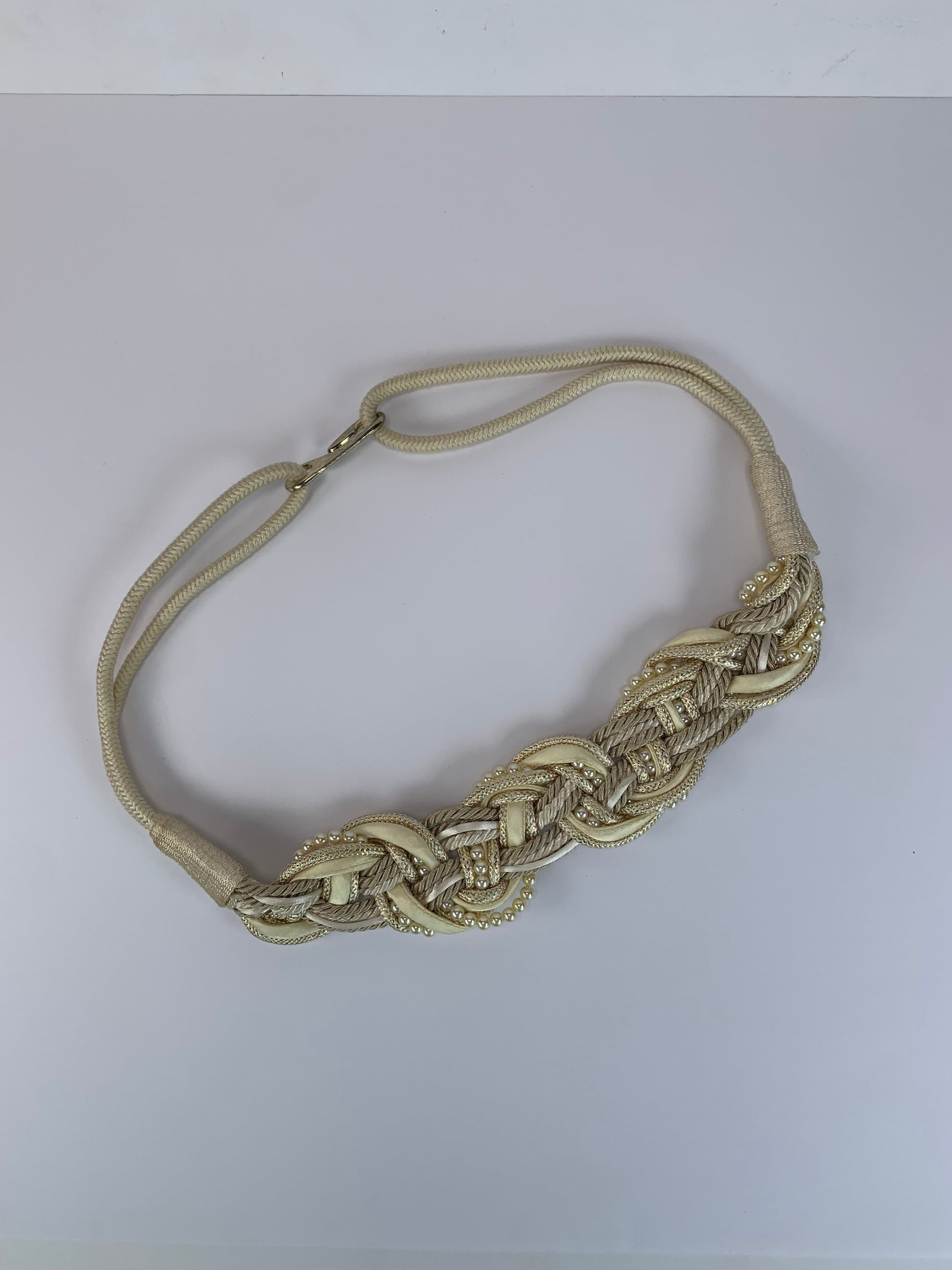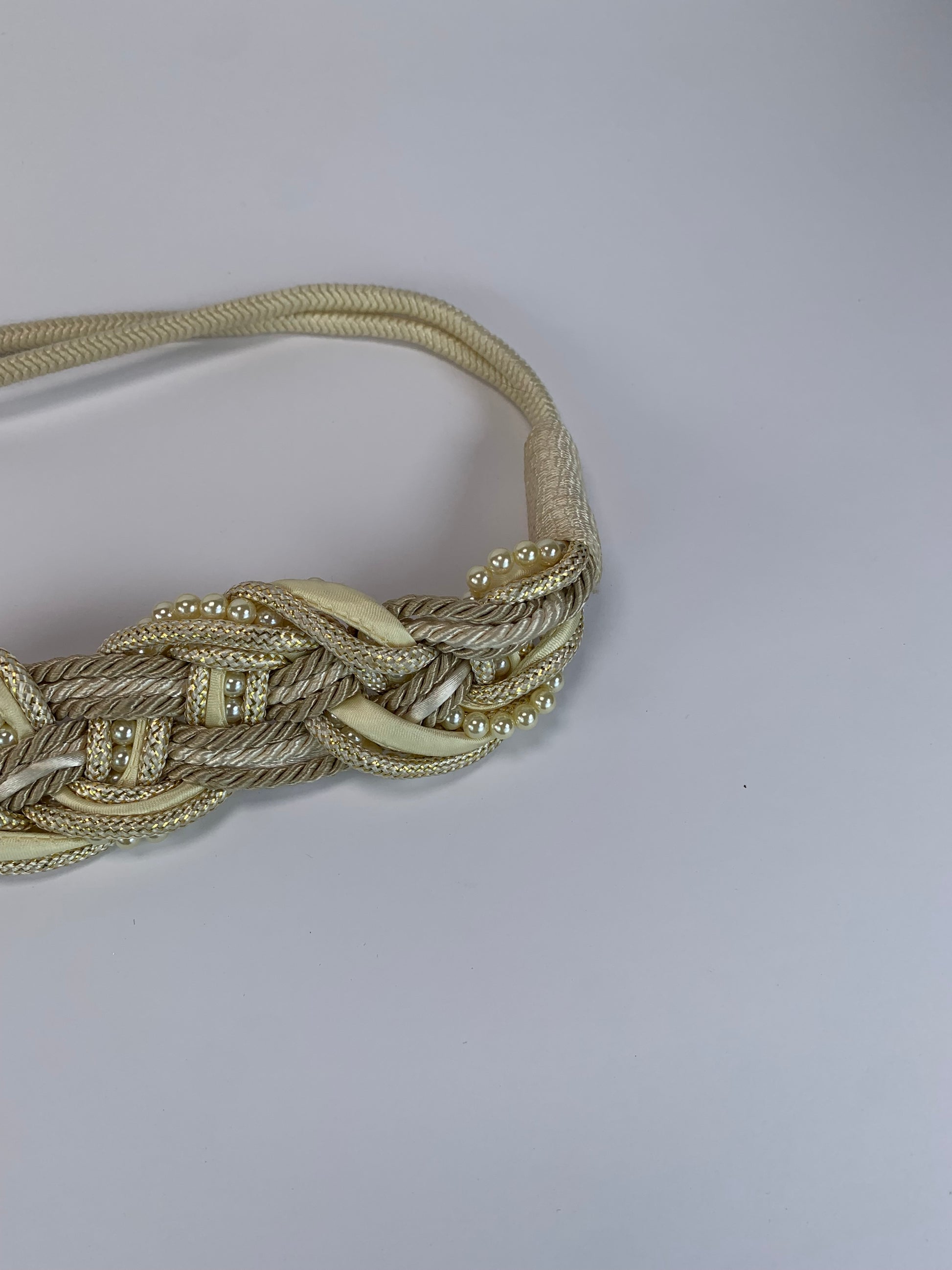 Vintage Waist Belt - Braided Cream Rope & Pearls