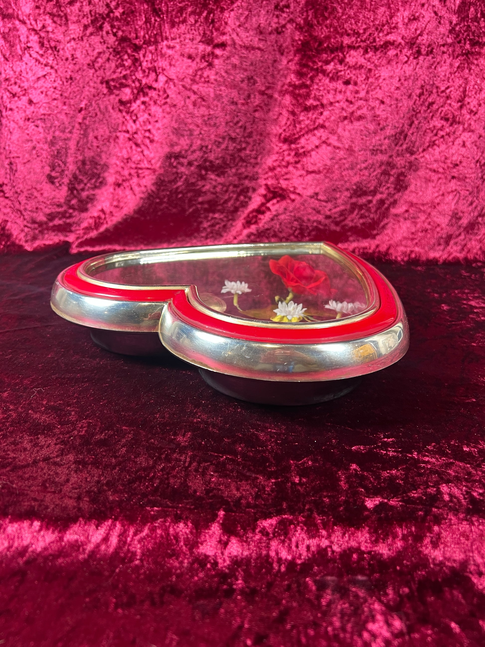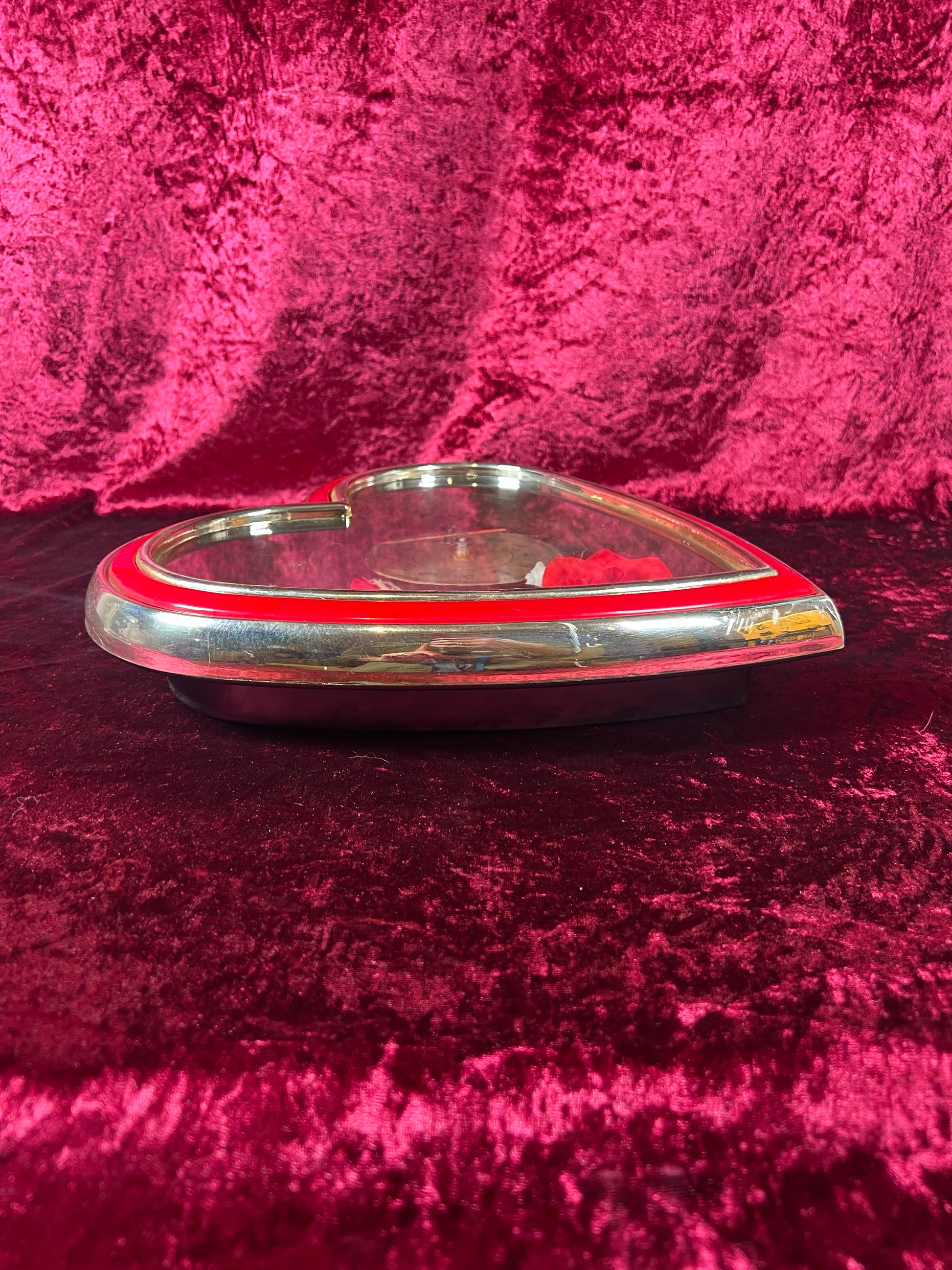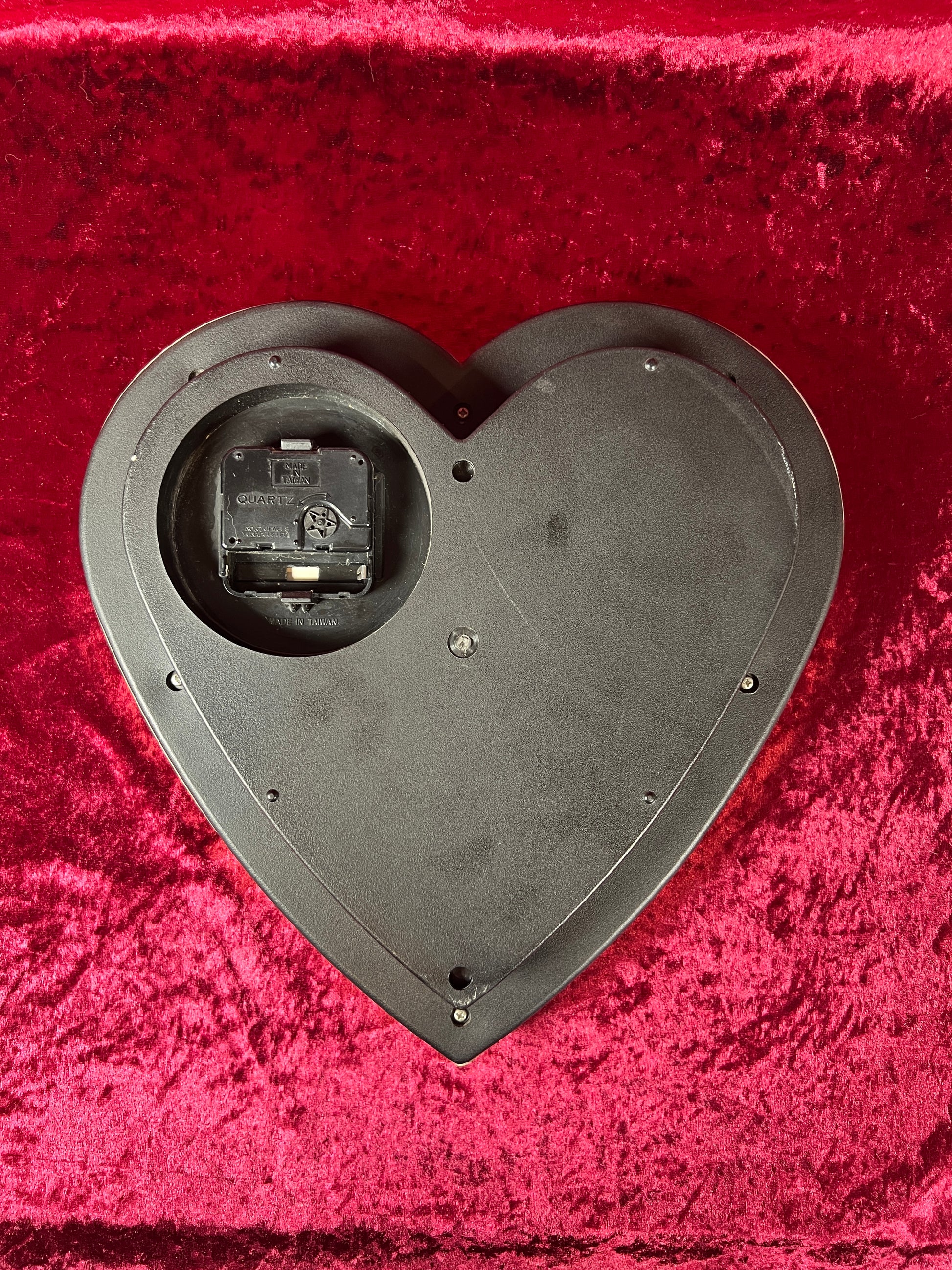 Vintage Wall Clock - Red Heart Shaped Shadow Box - Crucifix and Roses