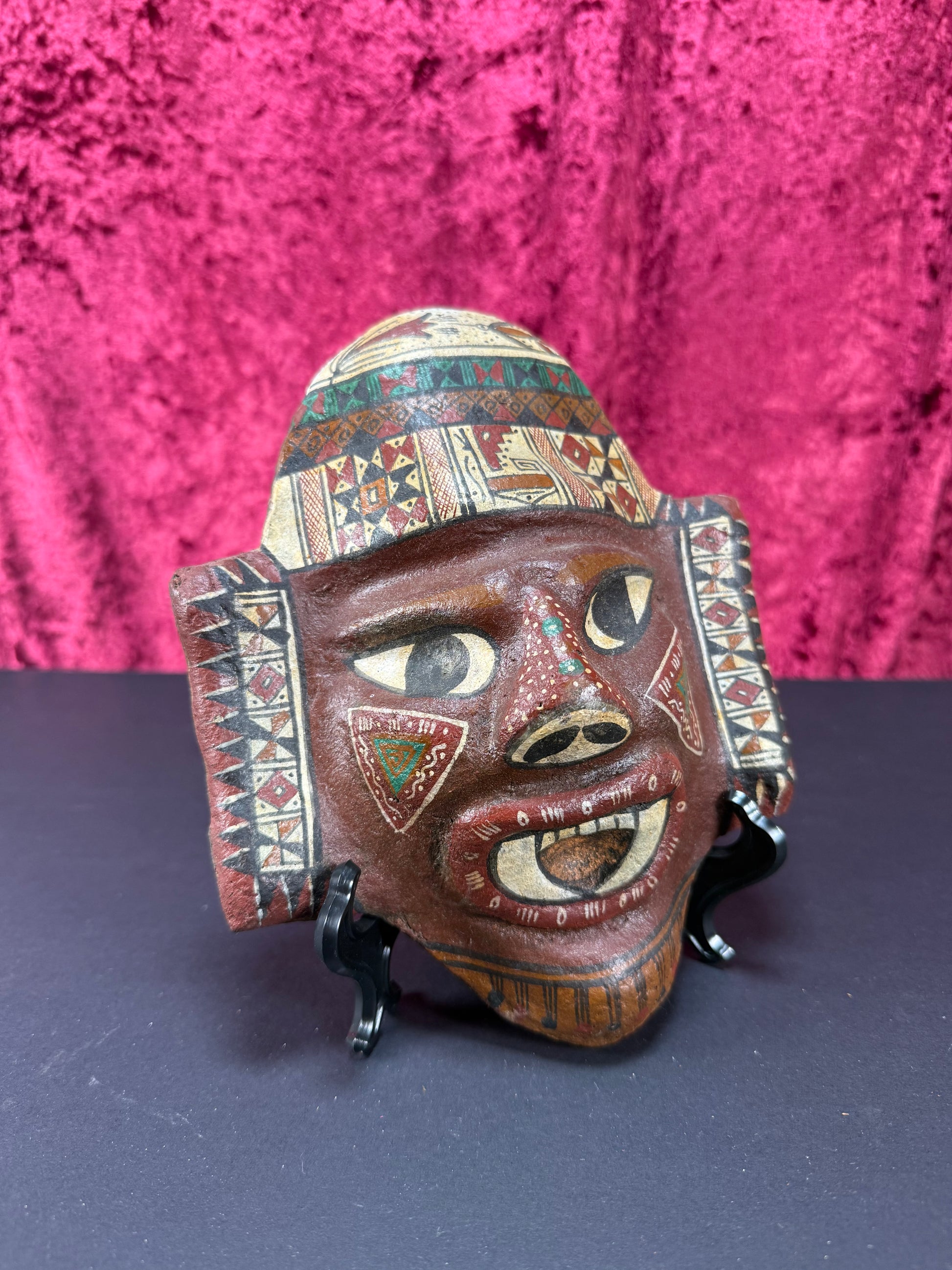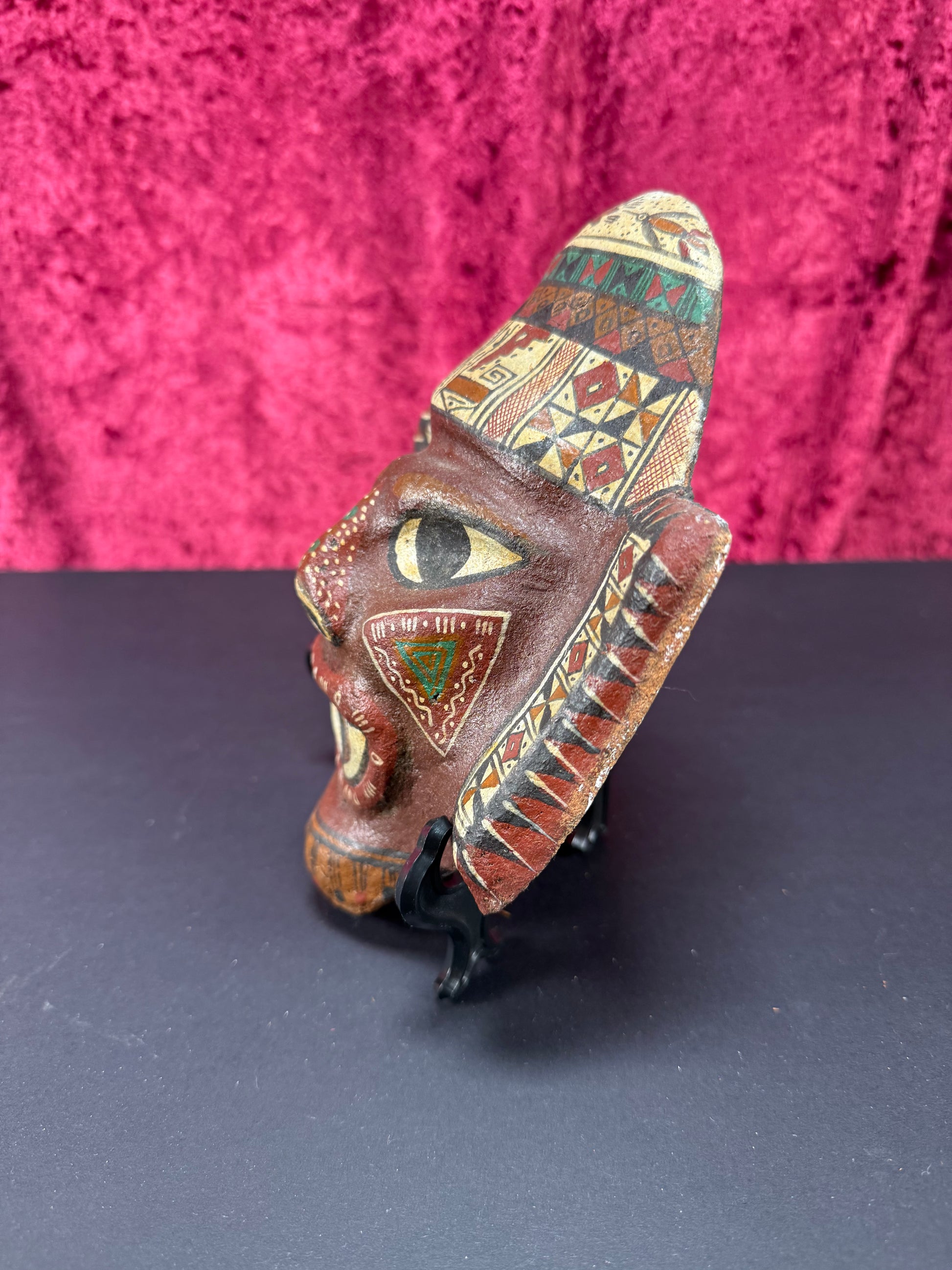 Vintage Wall Decor - Hand Painted Wood Ceremonial Mask - Central American