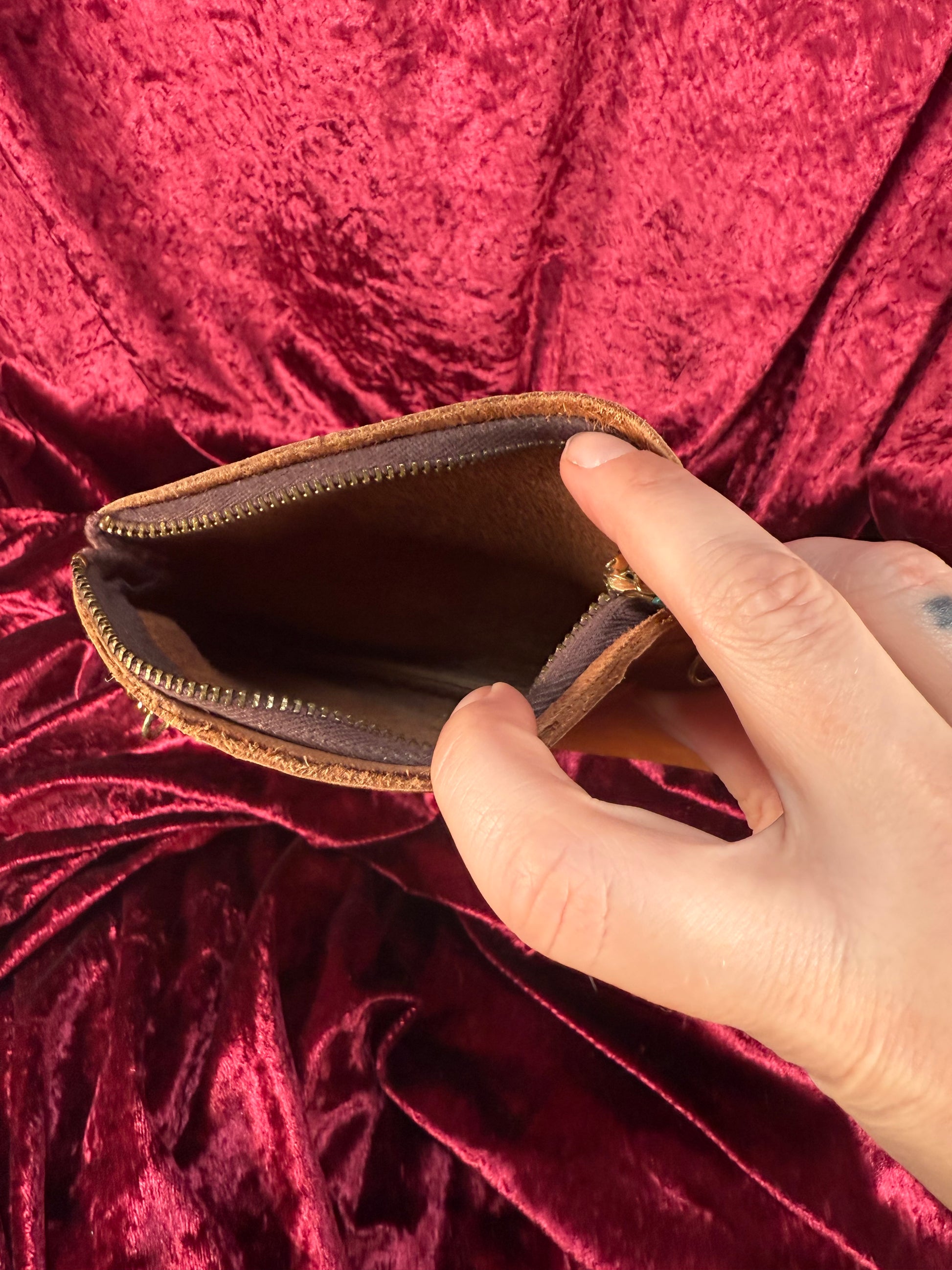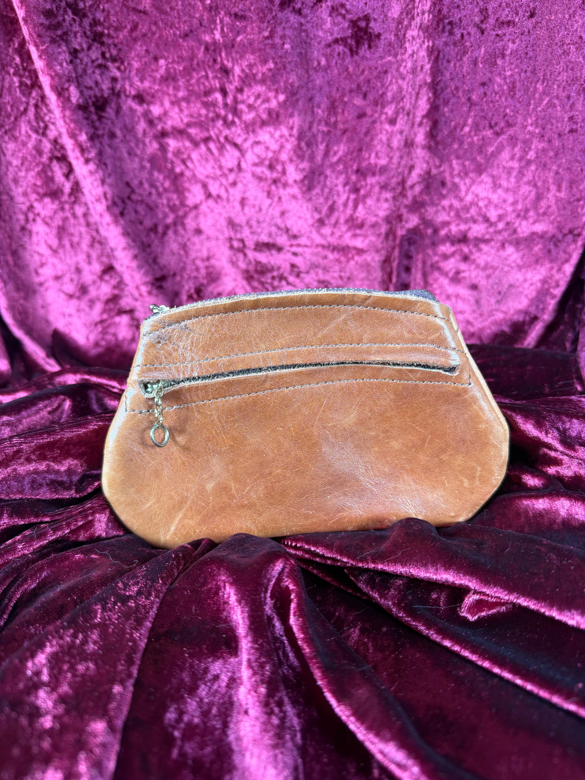 Vintage Wallet - Genuine Leather Zippered Pouch - Tan