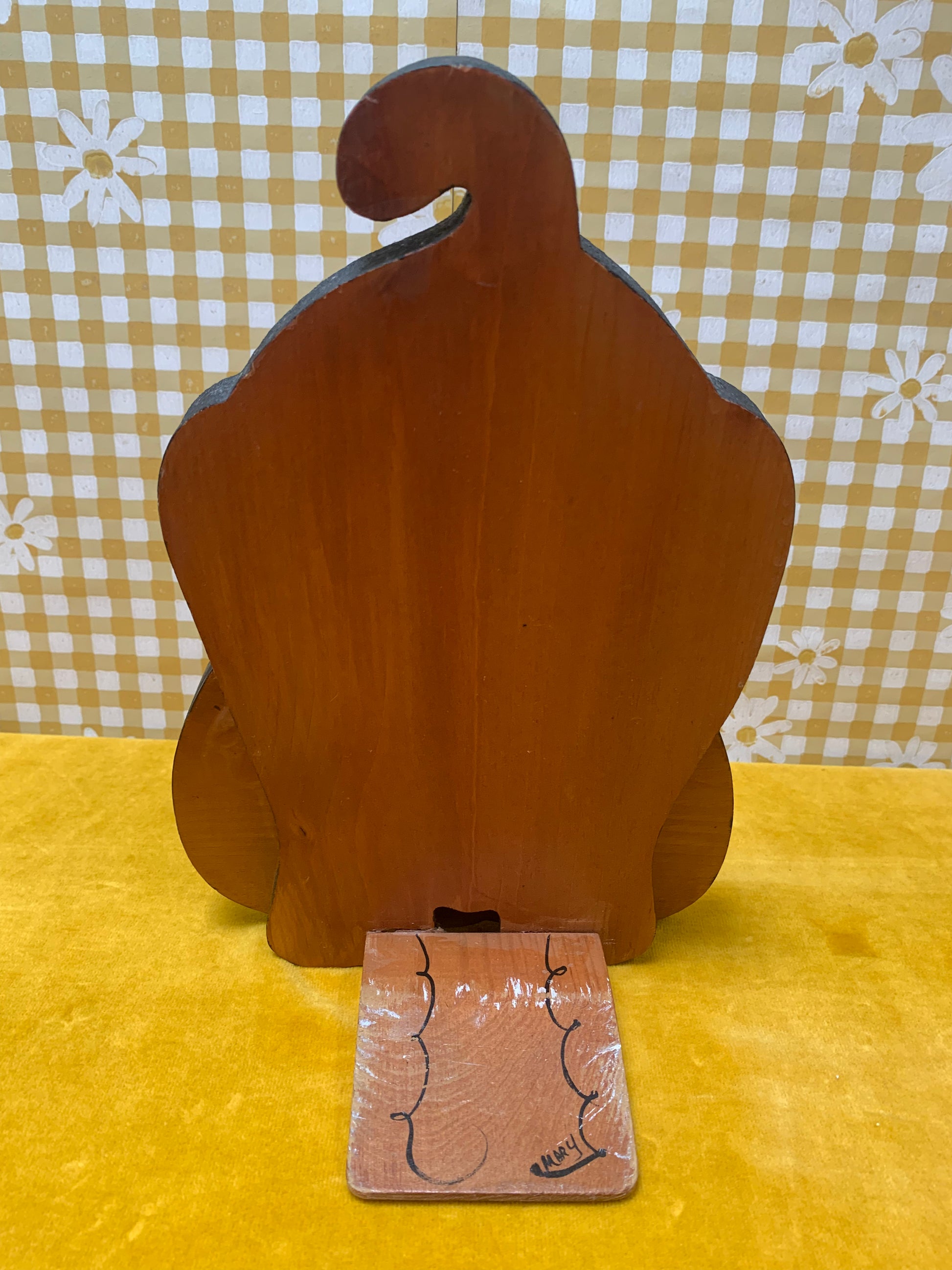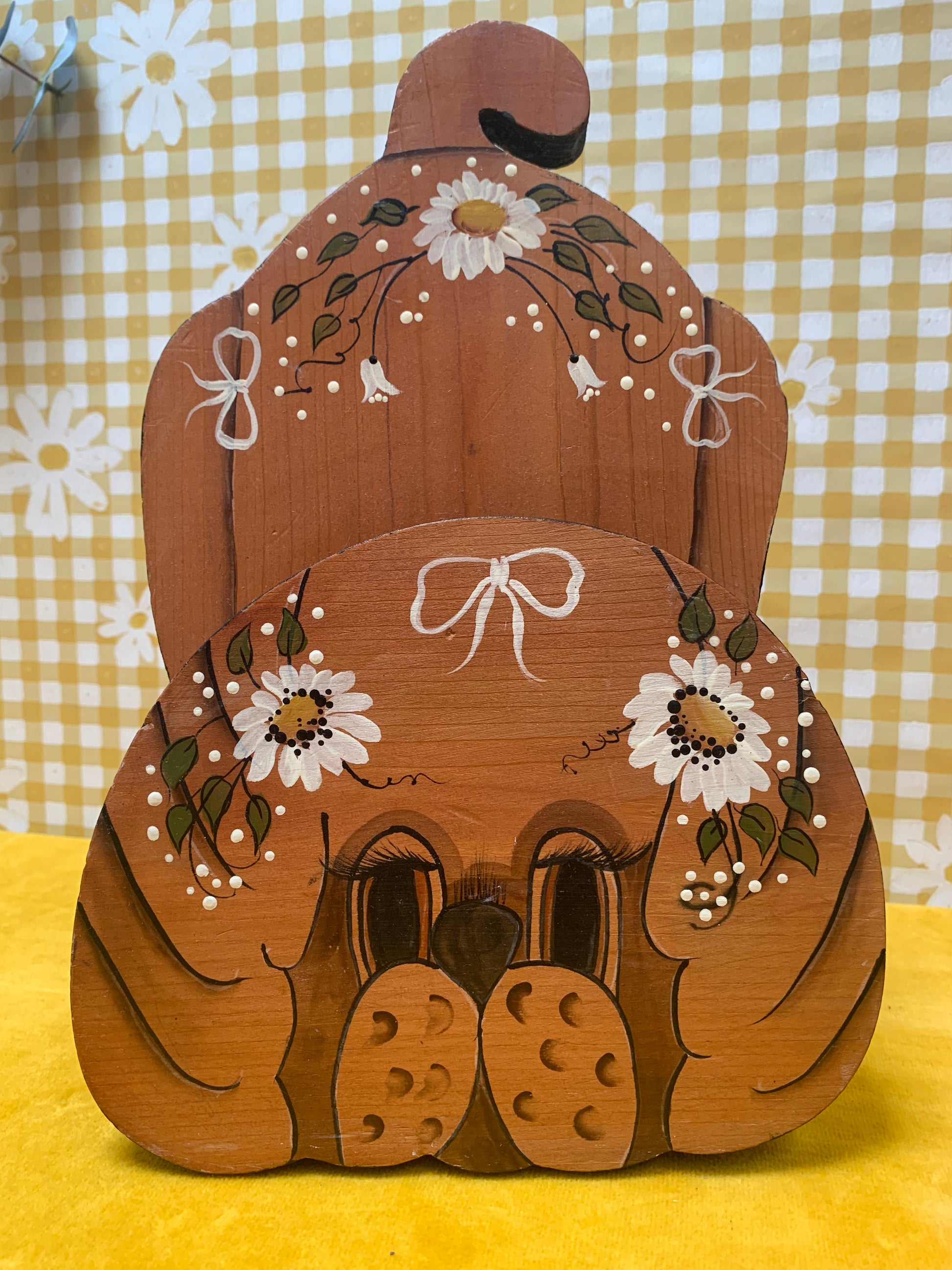 Brighten up your home decor with the cutest doorstop ever made! Hand painted and signed, this wooden tole takes the form of a puppy decorated with cute bows and flowers.